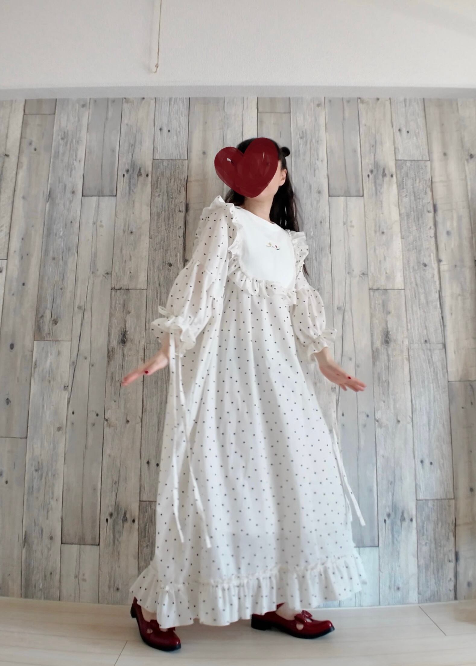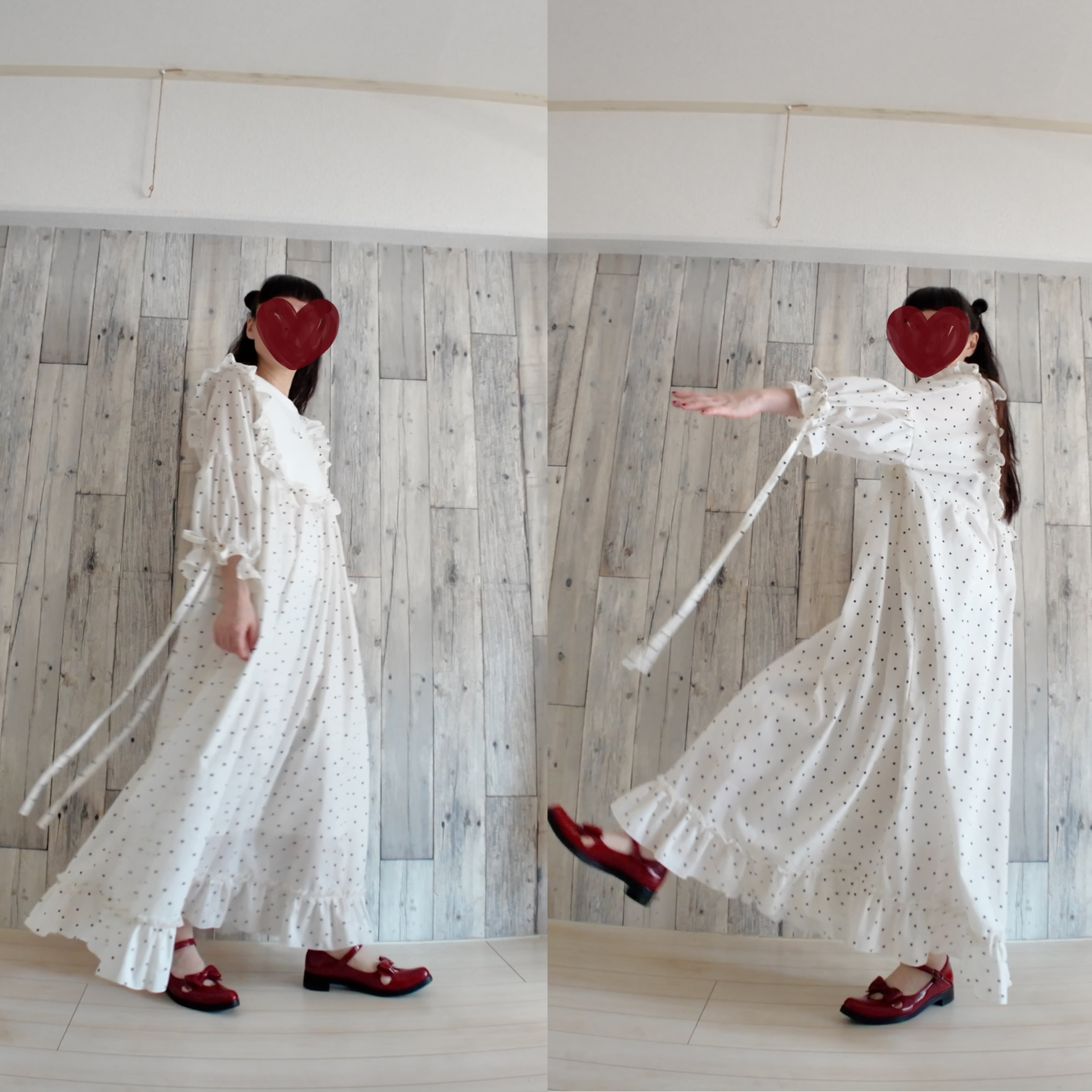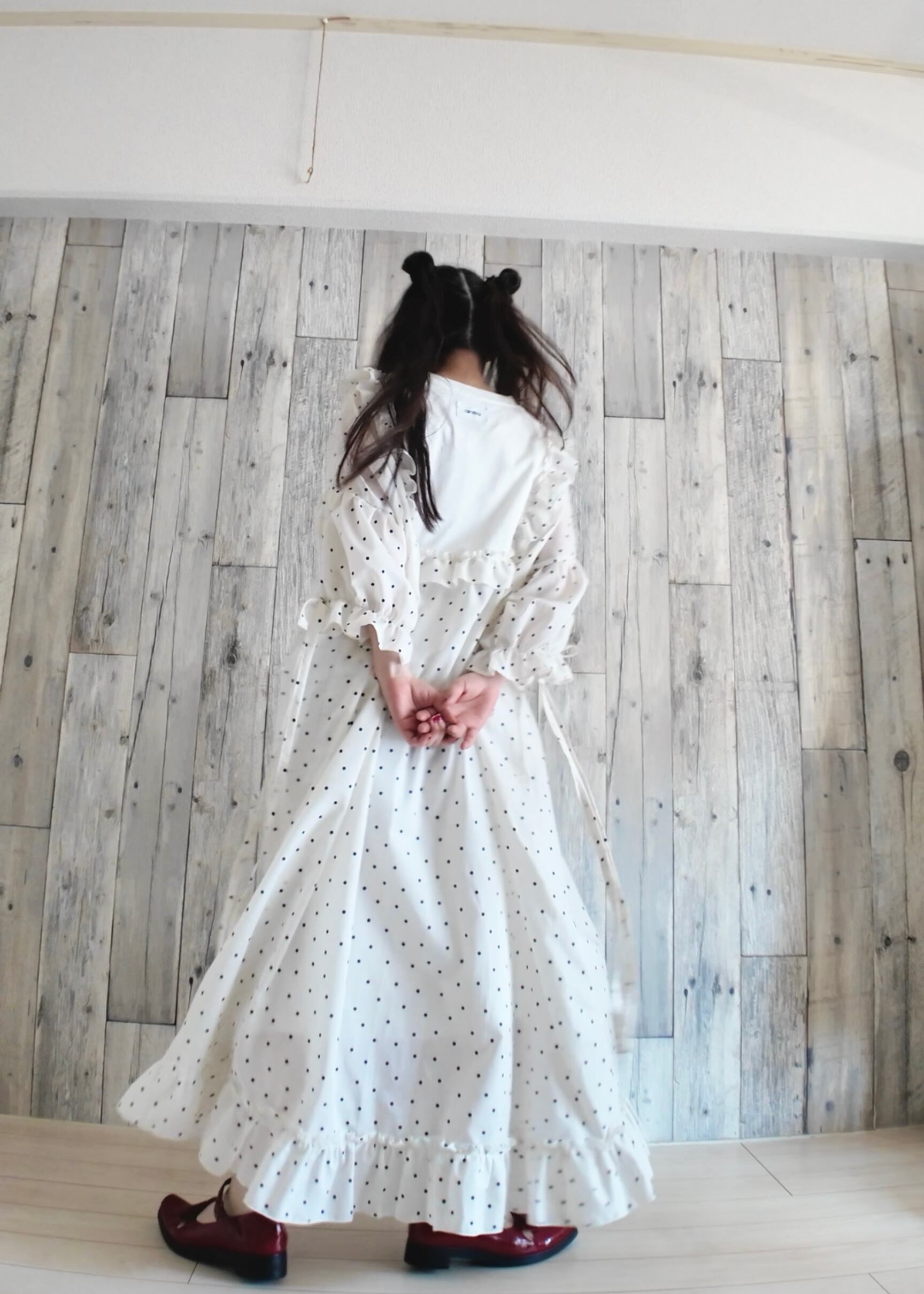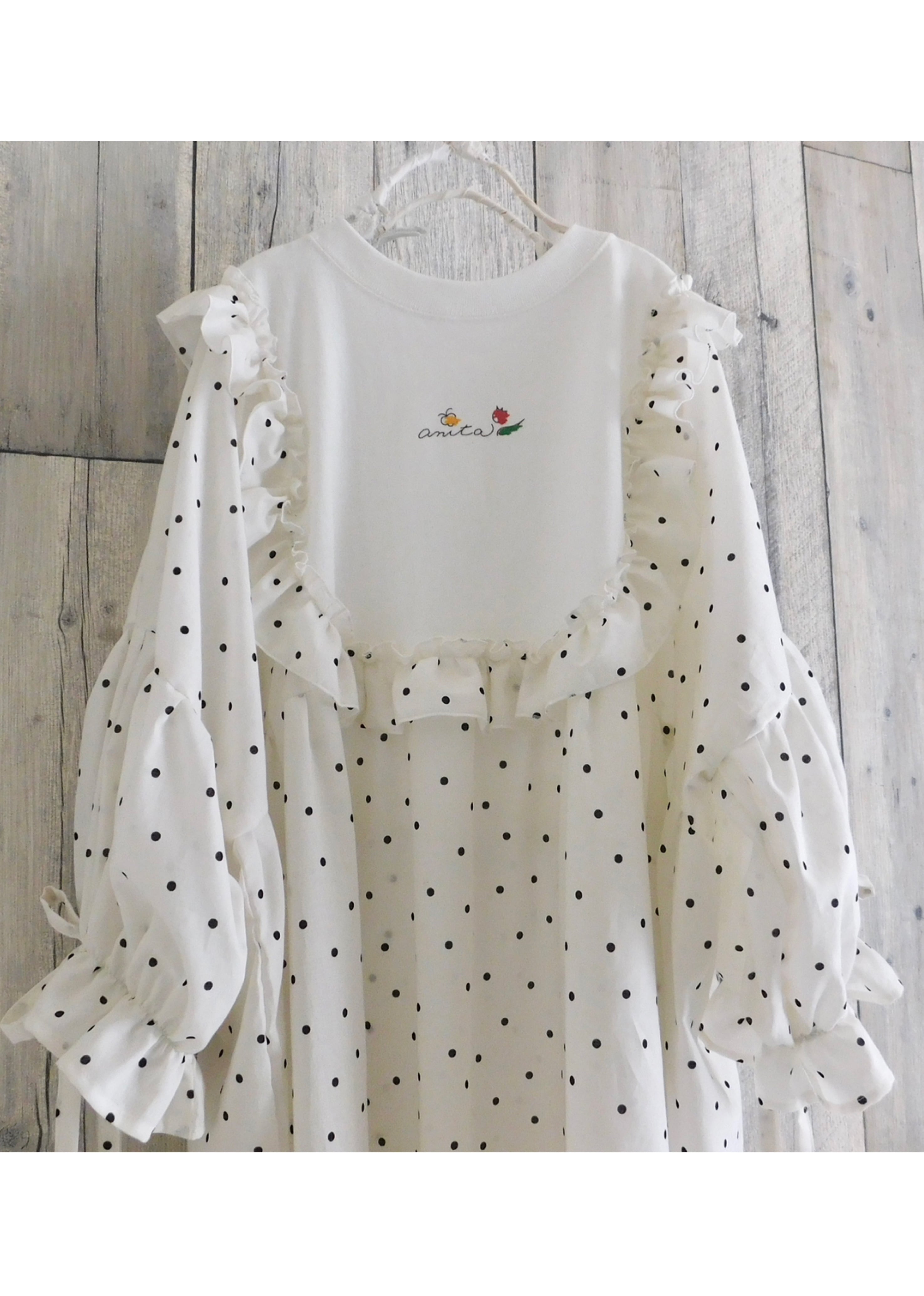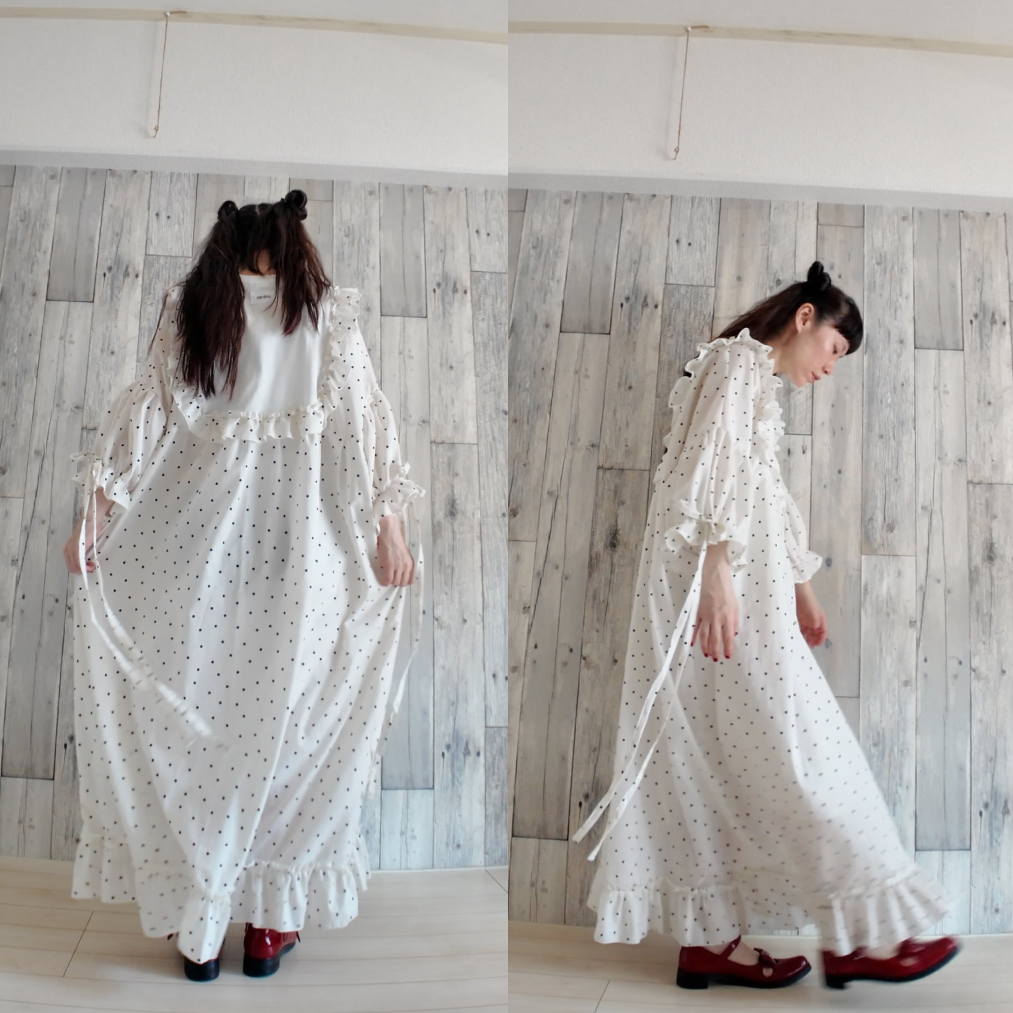水玉生地を使用し、夏〜秋に着られる七分袖で製作。