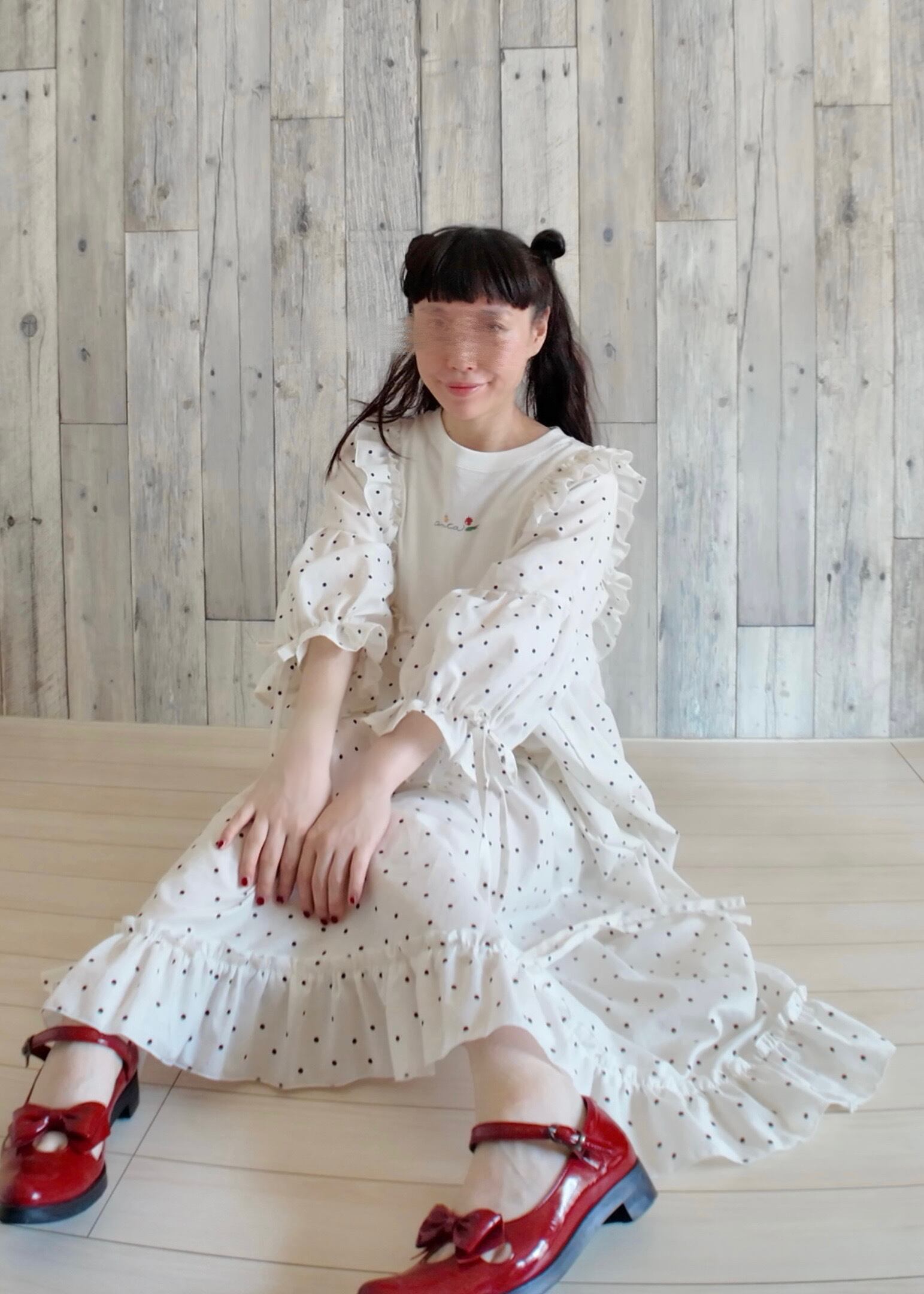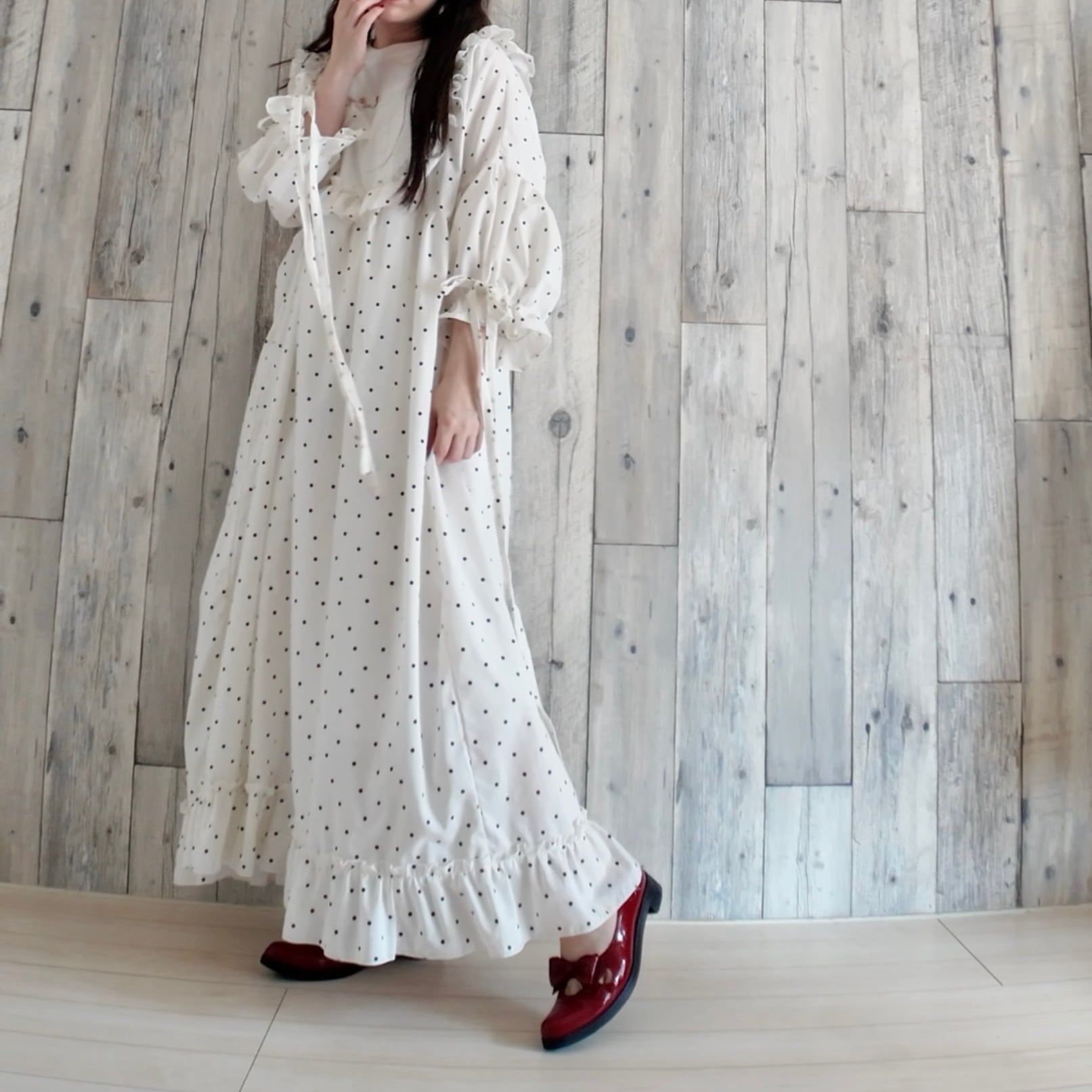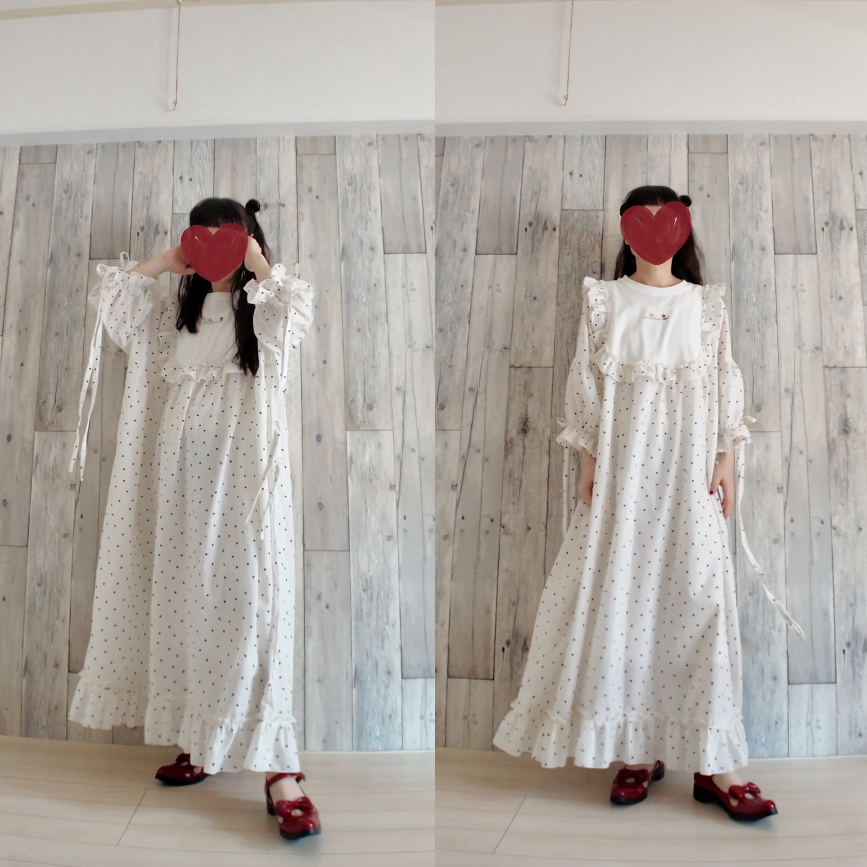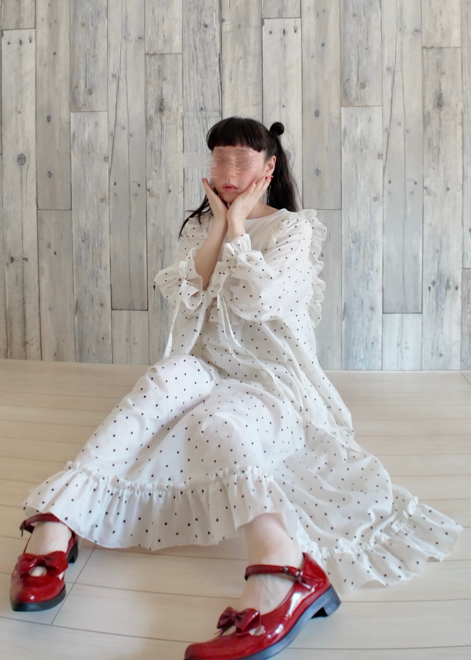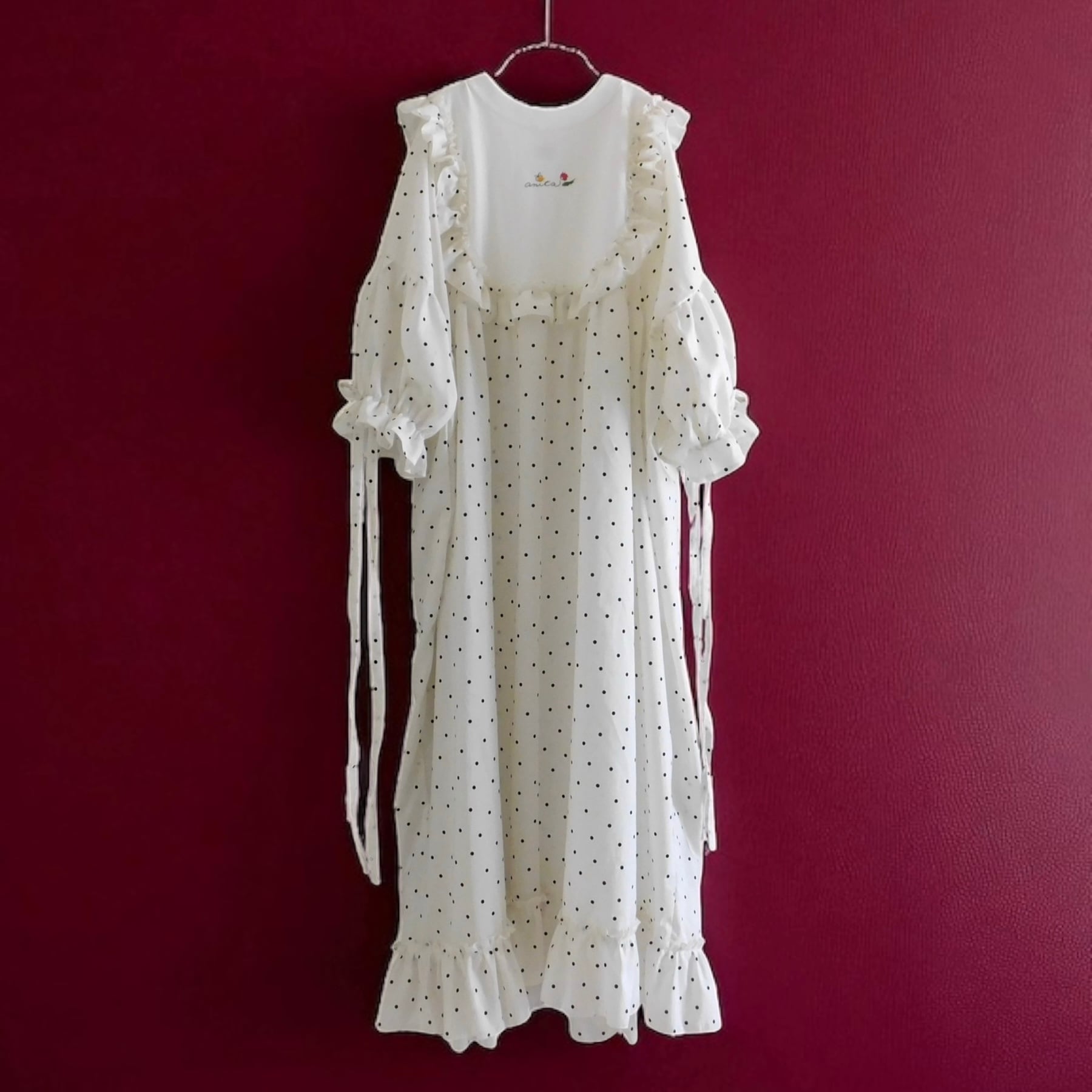 水玉生地を使用し、夏〜秋に着られる七分袖で製作。
