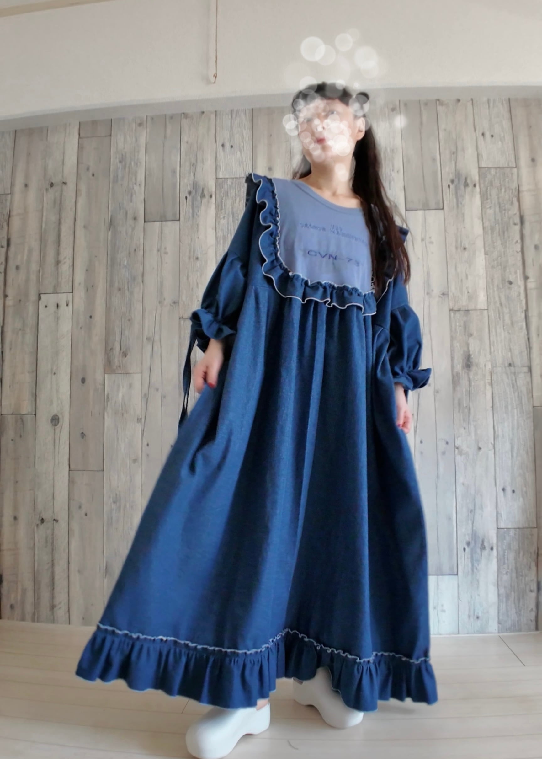 anita定番のプリンセスシリーズのシルエットで制作したリメイクワンピース。