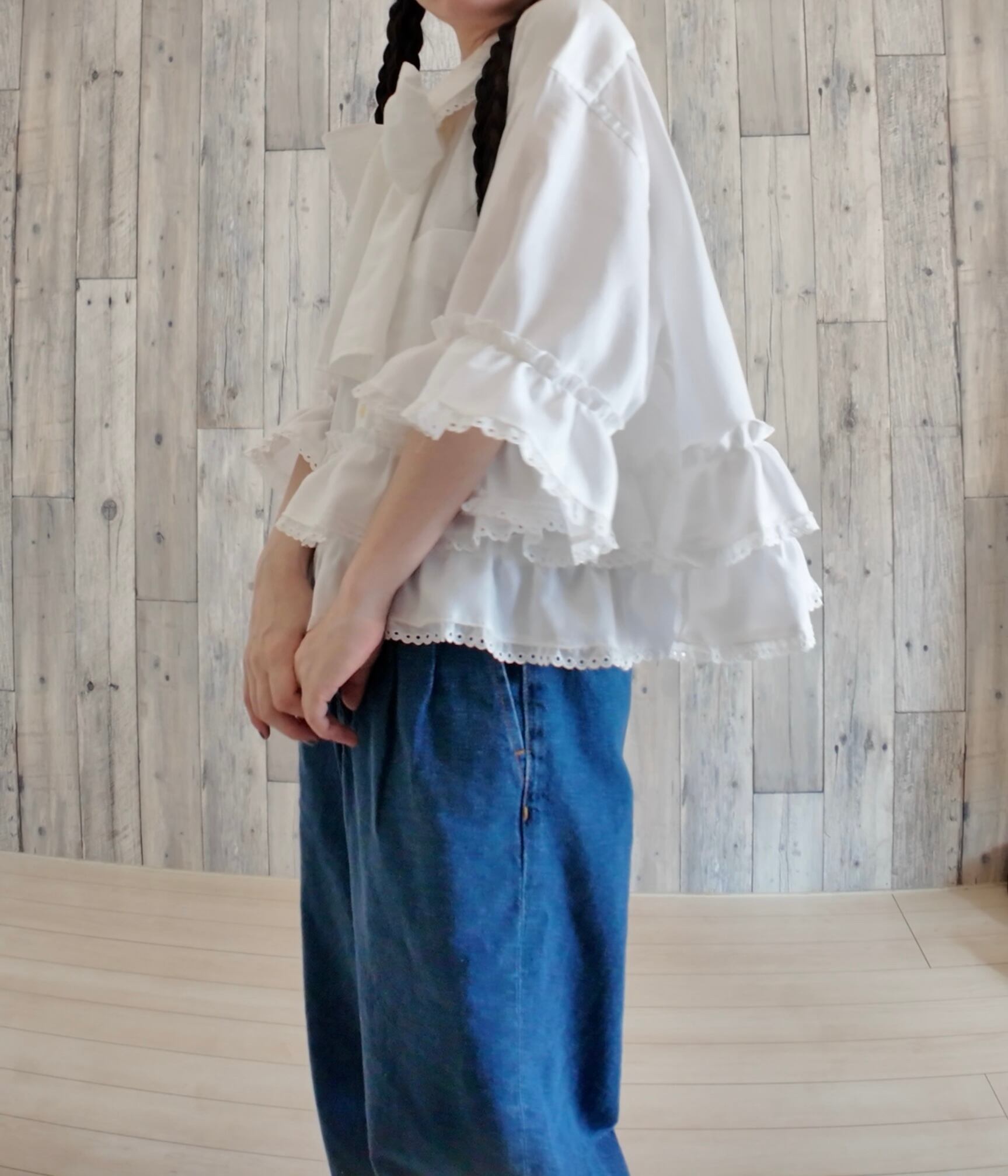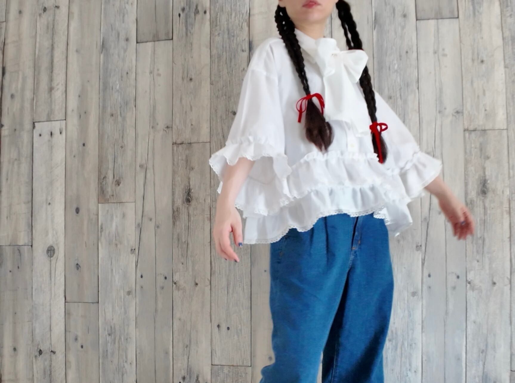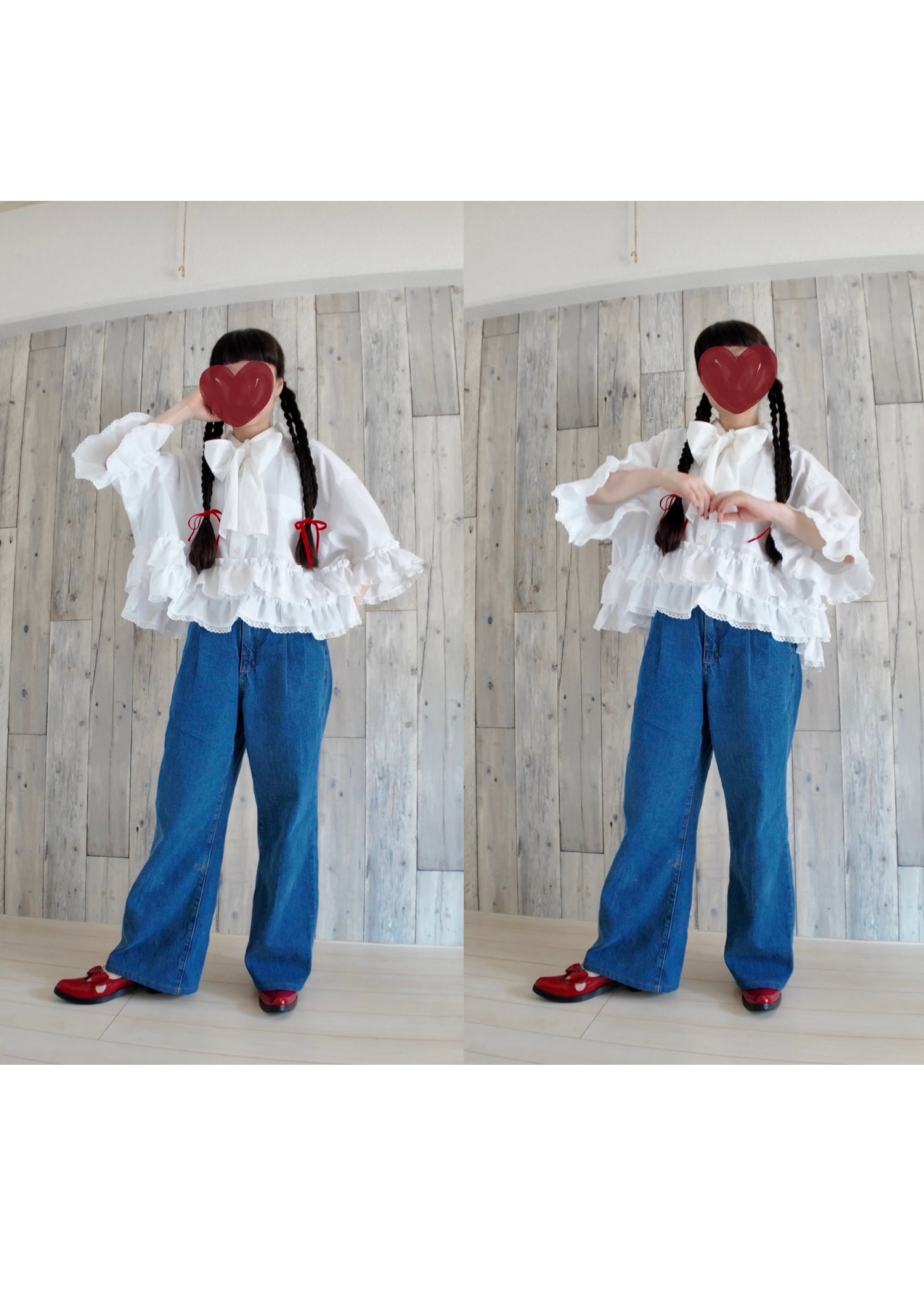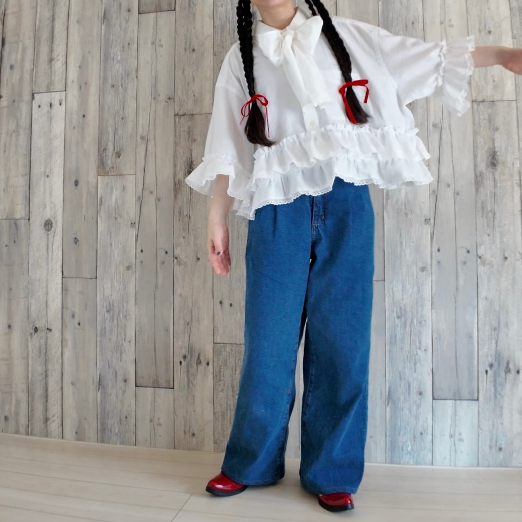 ガーリーなスカートはもちろん、デニムを合わせても可愛いです。