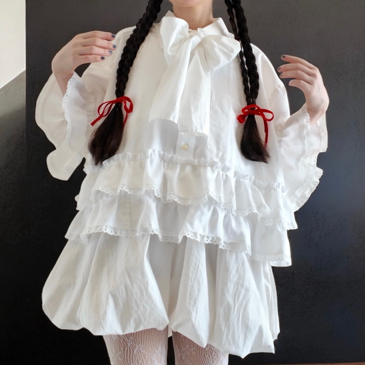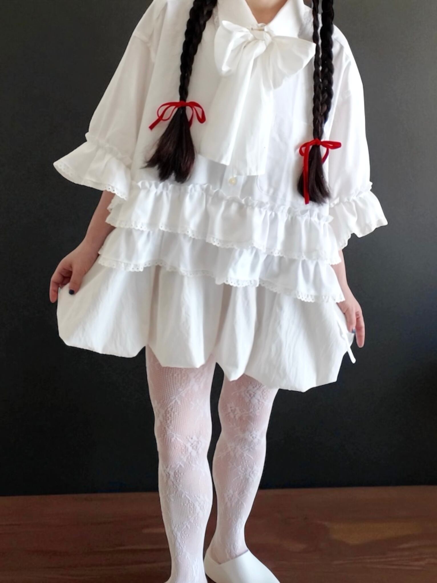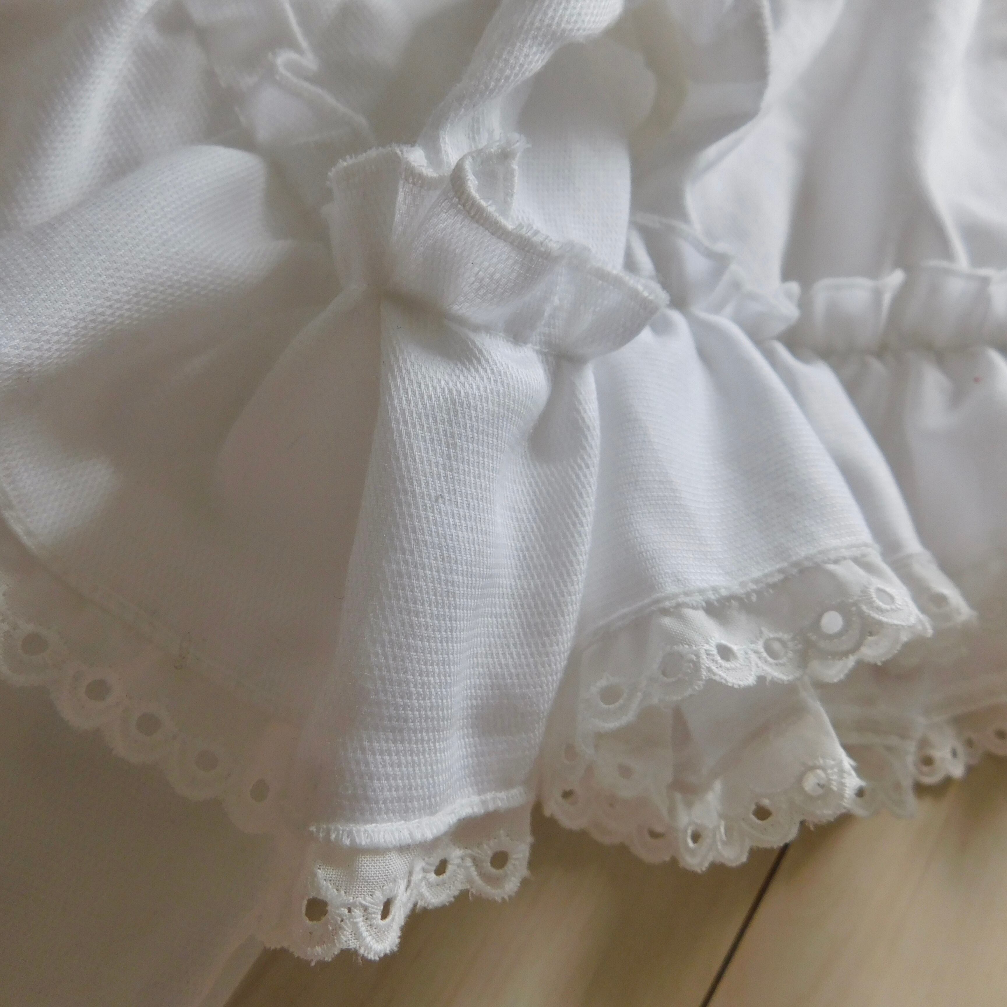 コットンレースをふんだんに使用したスウィートなデザイン。