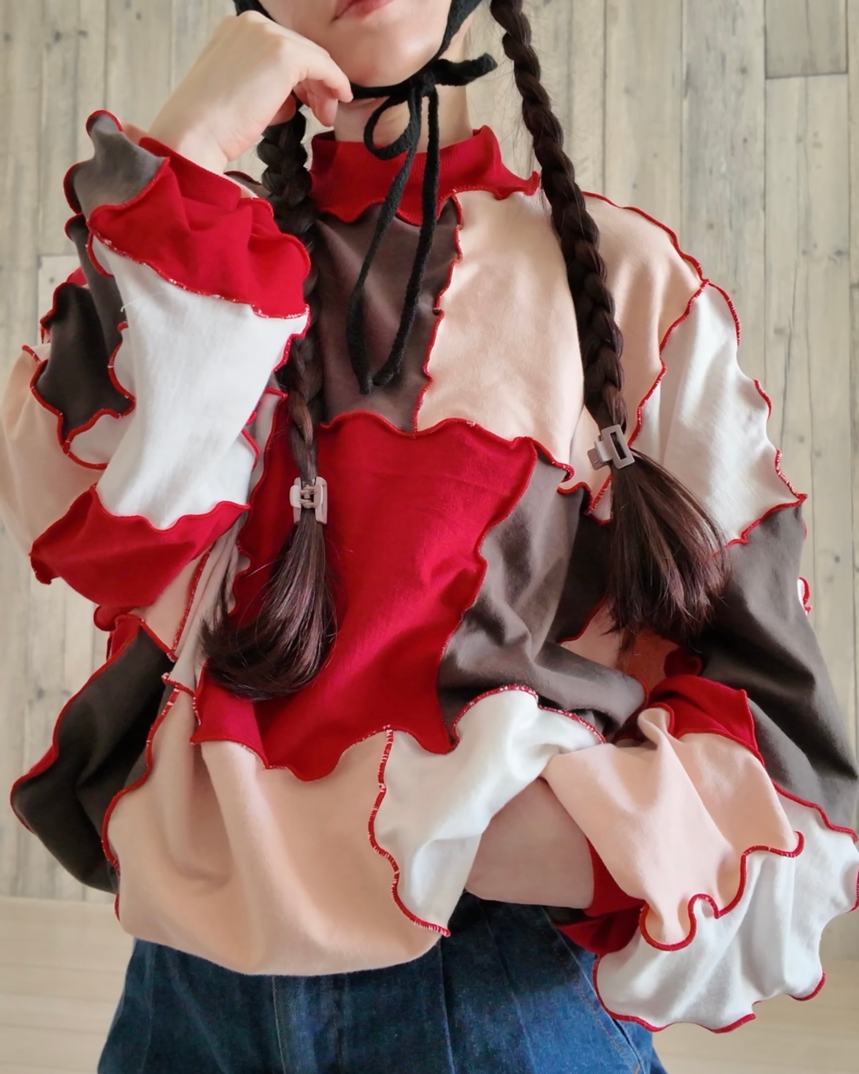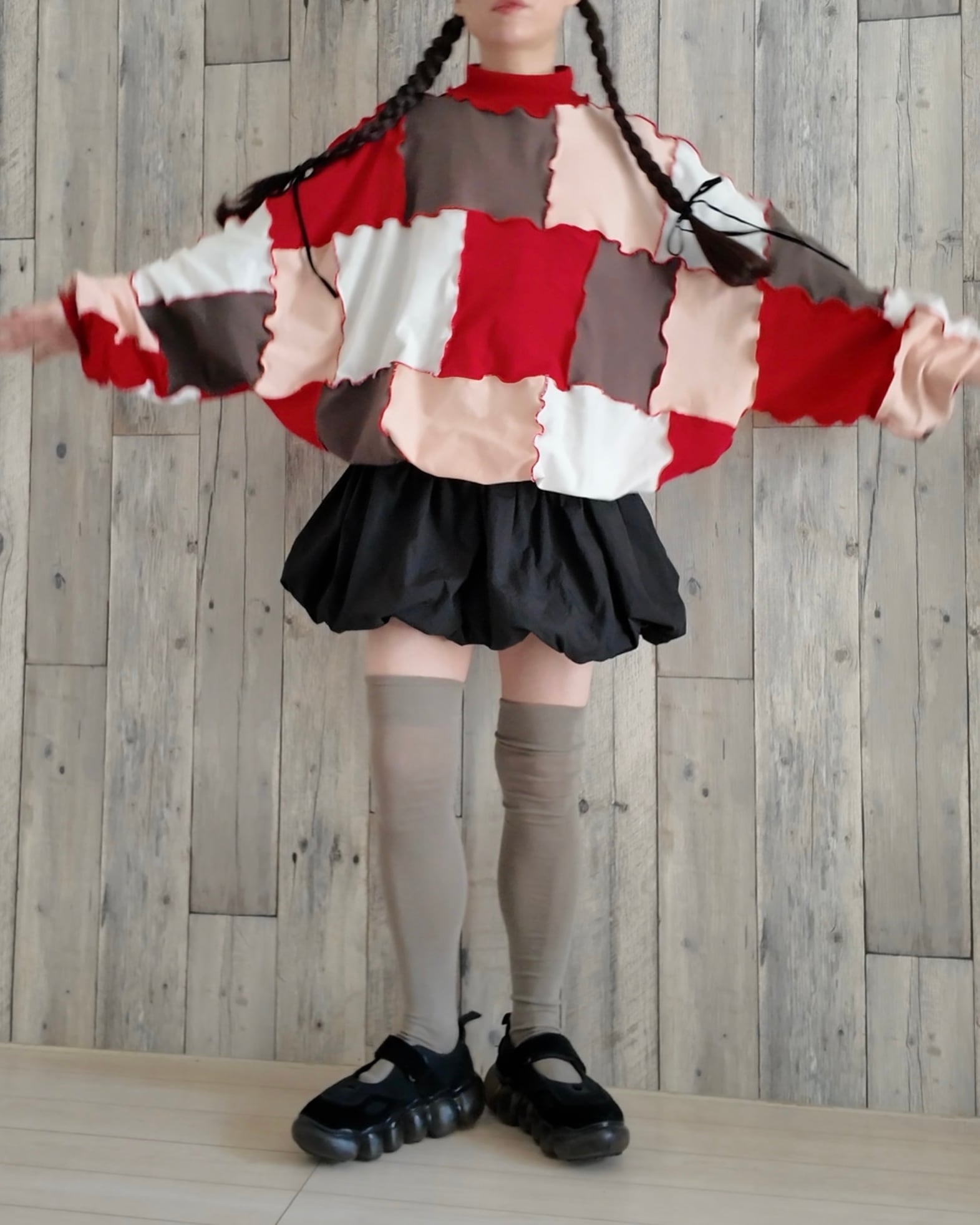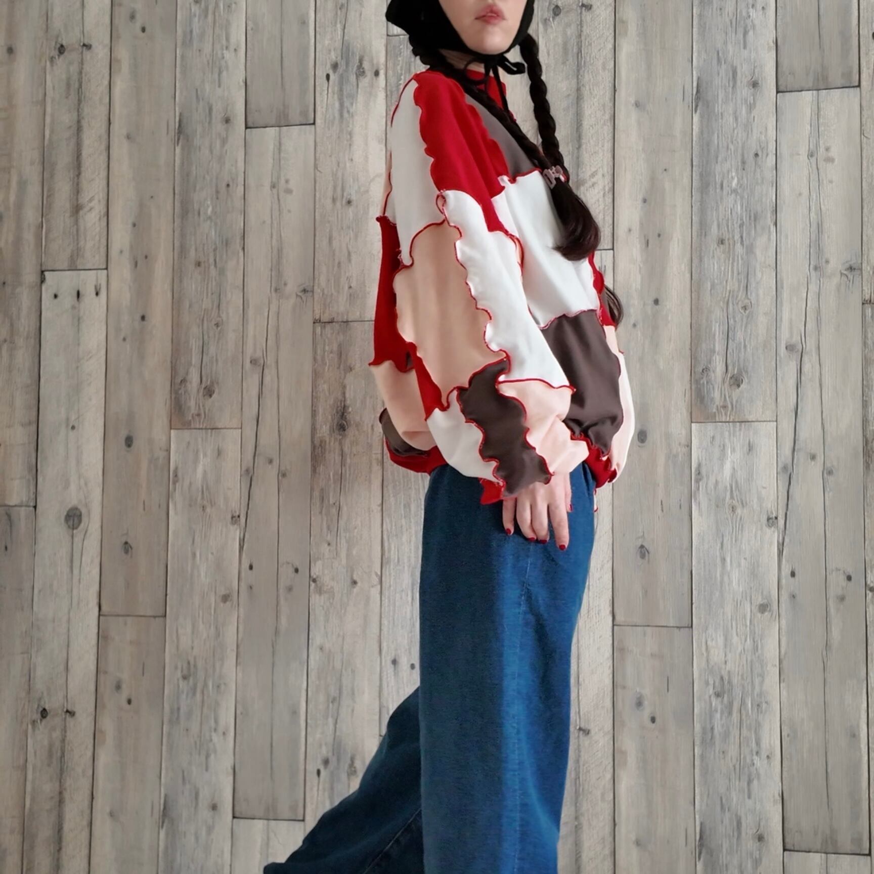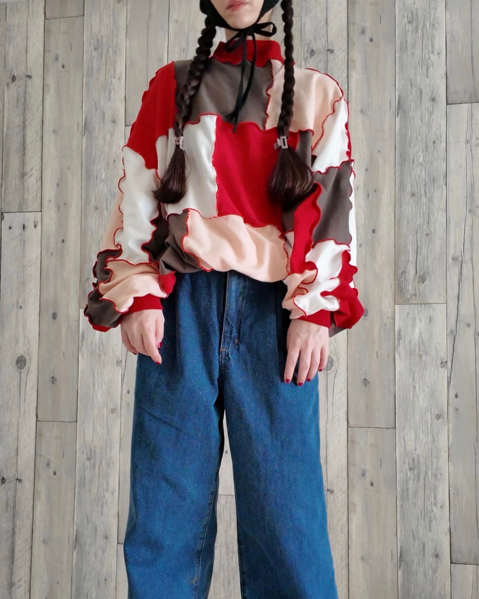 Tシャツのハギレを繋ぎ合わせたリメイクトップス ロンTVer.
