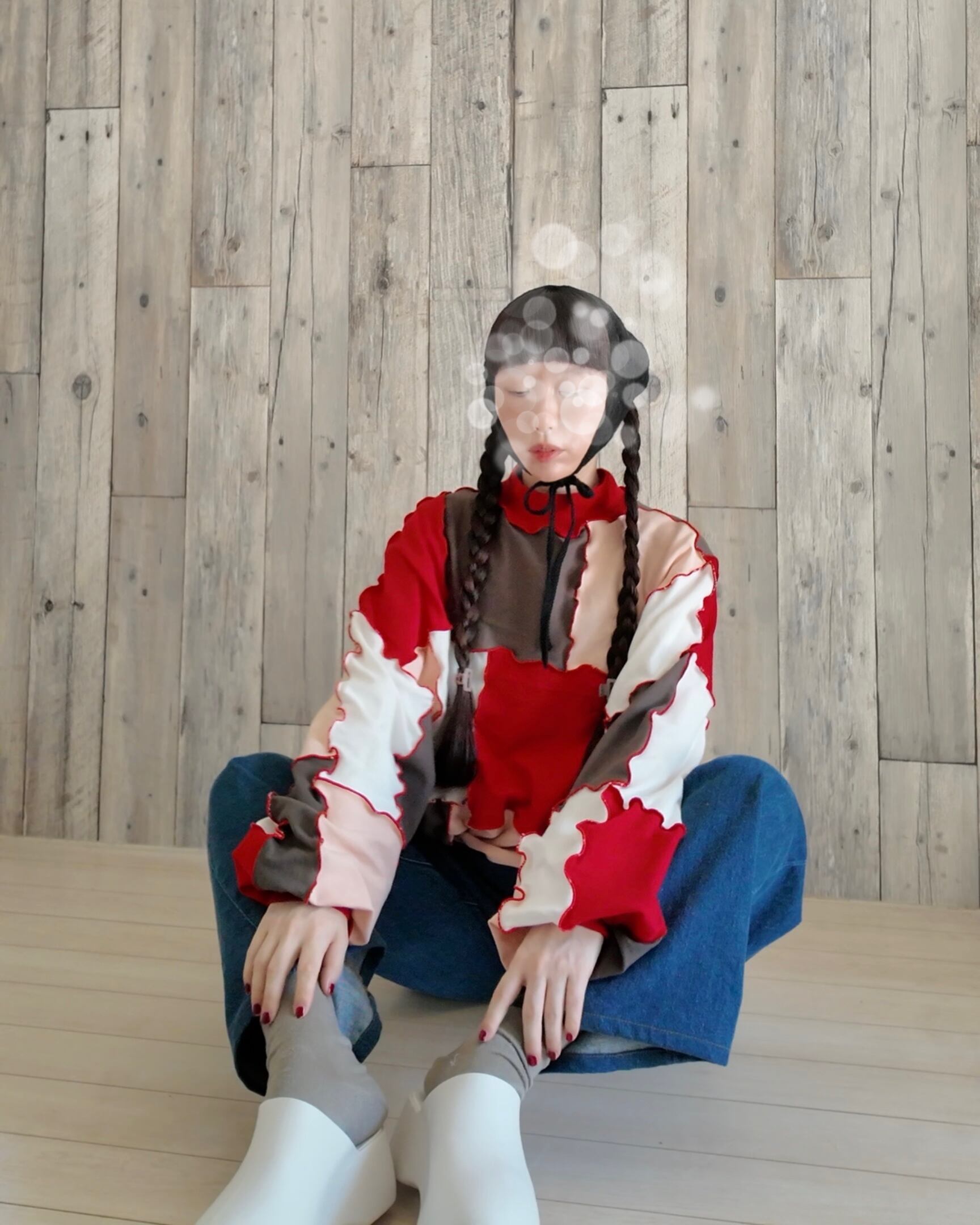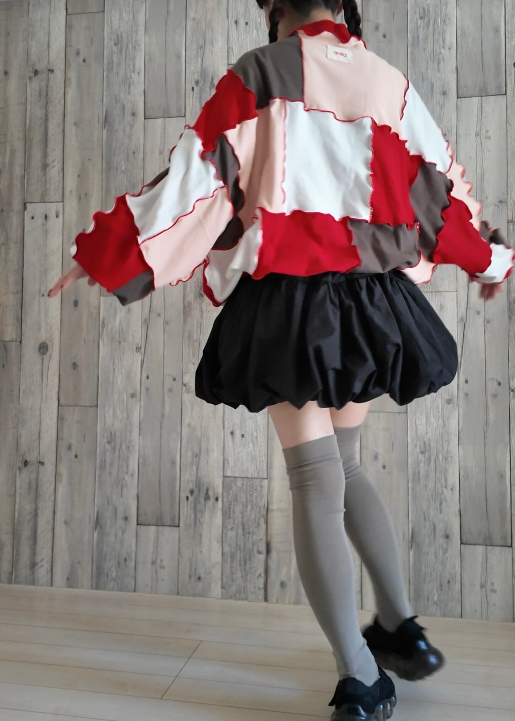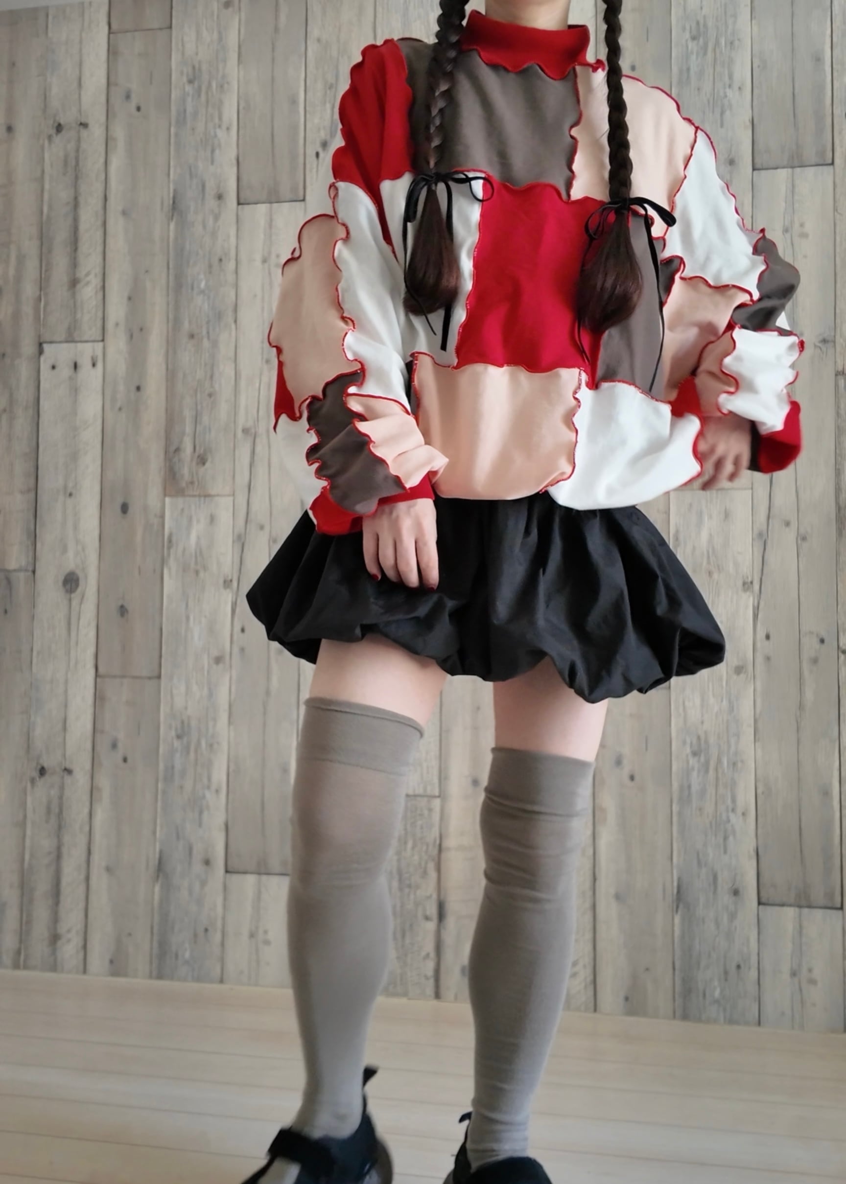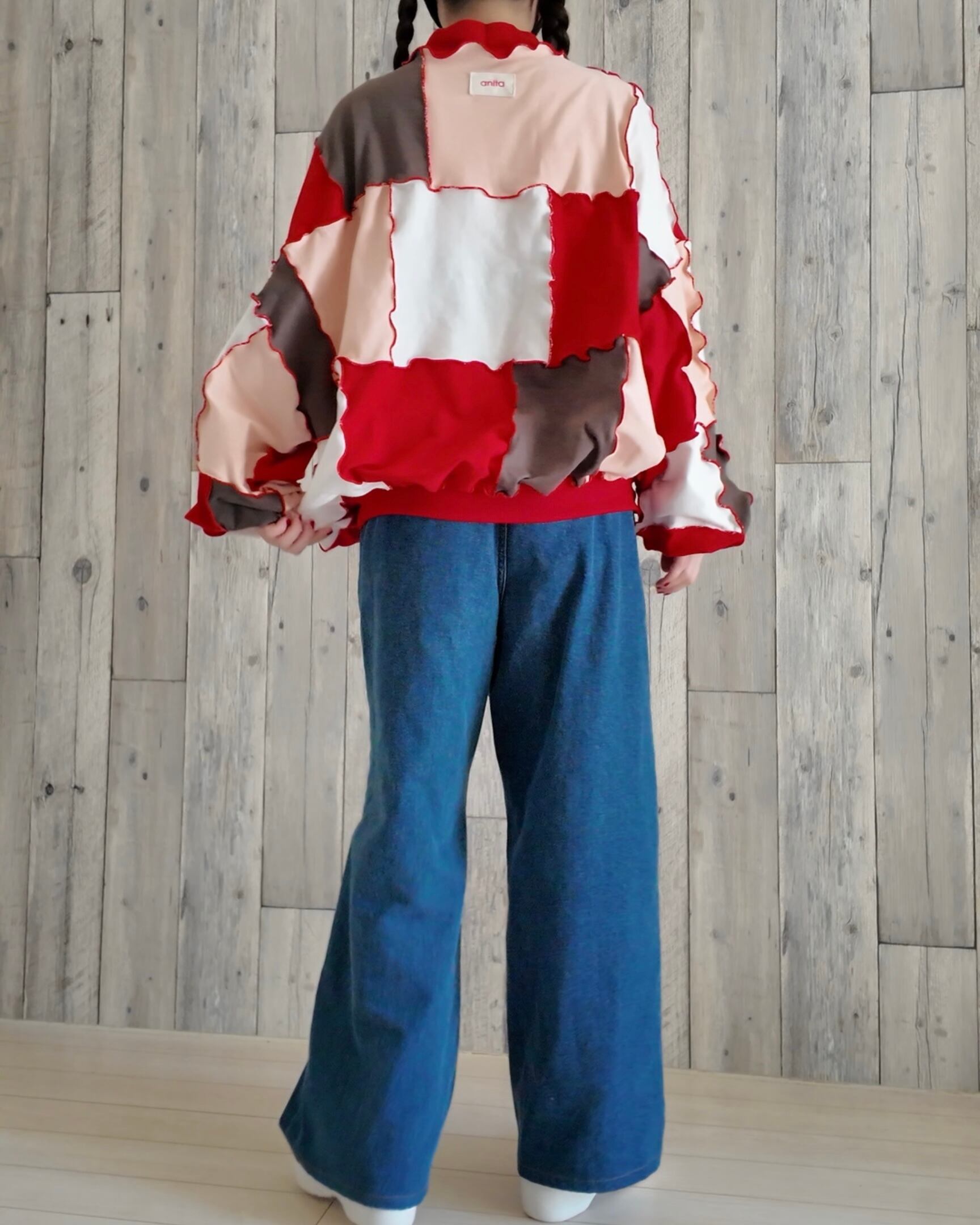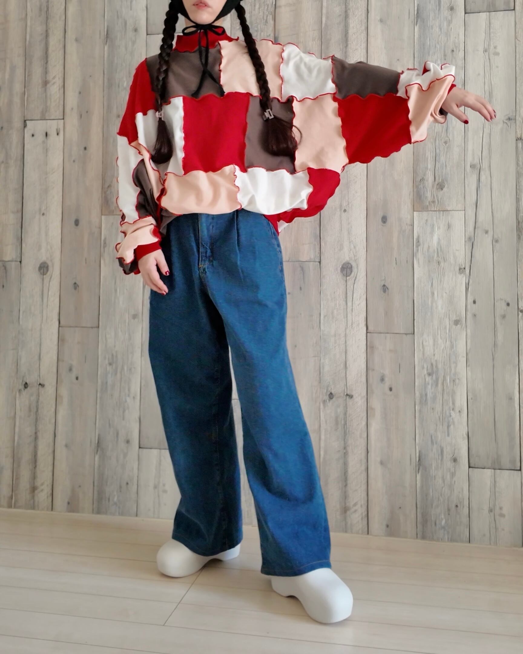 Tシャツのハギレを繋ぎ合わせたリメイクトップス ロンTVer.