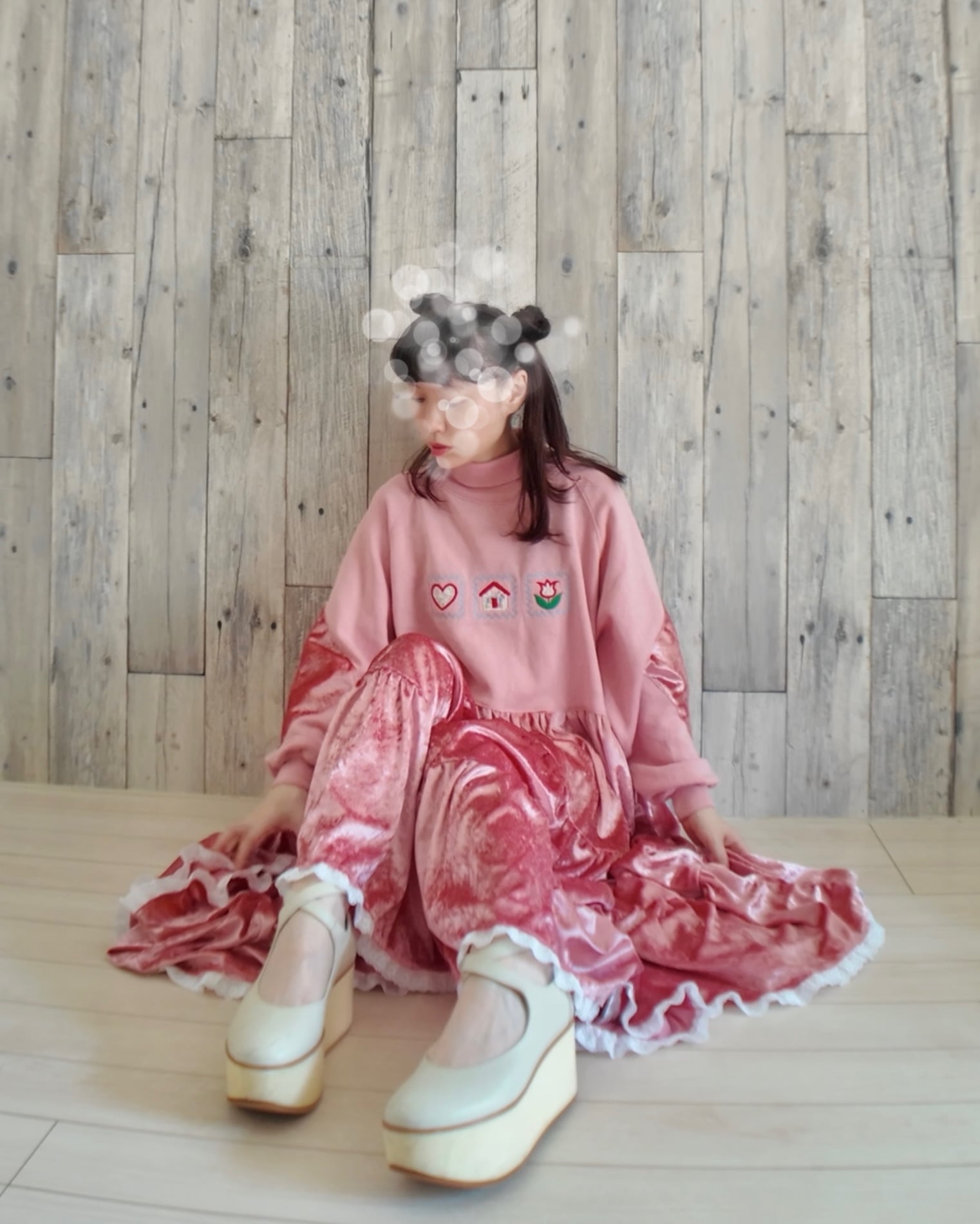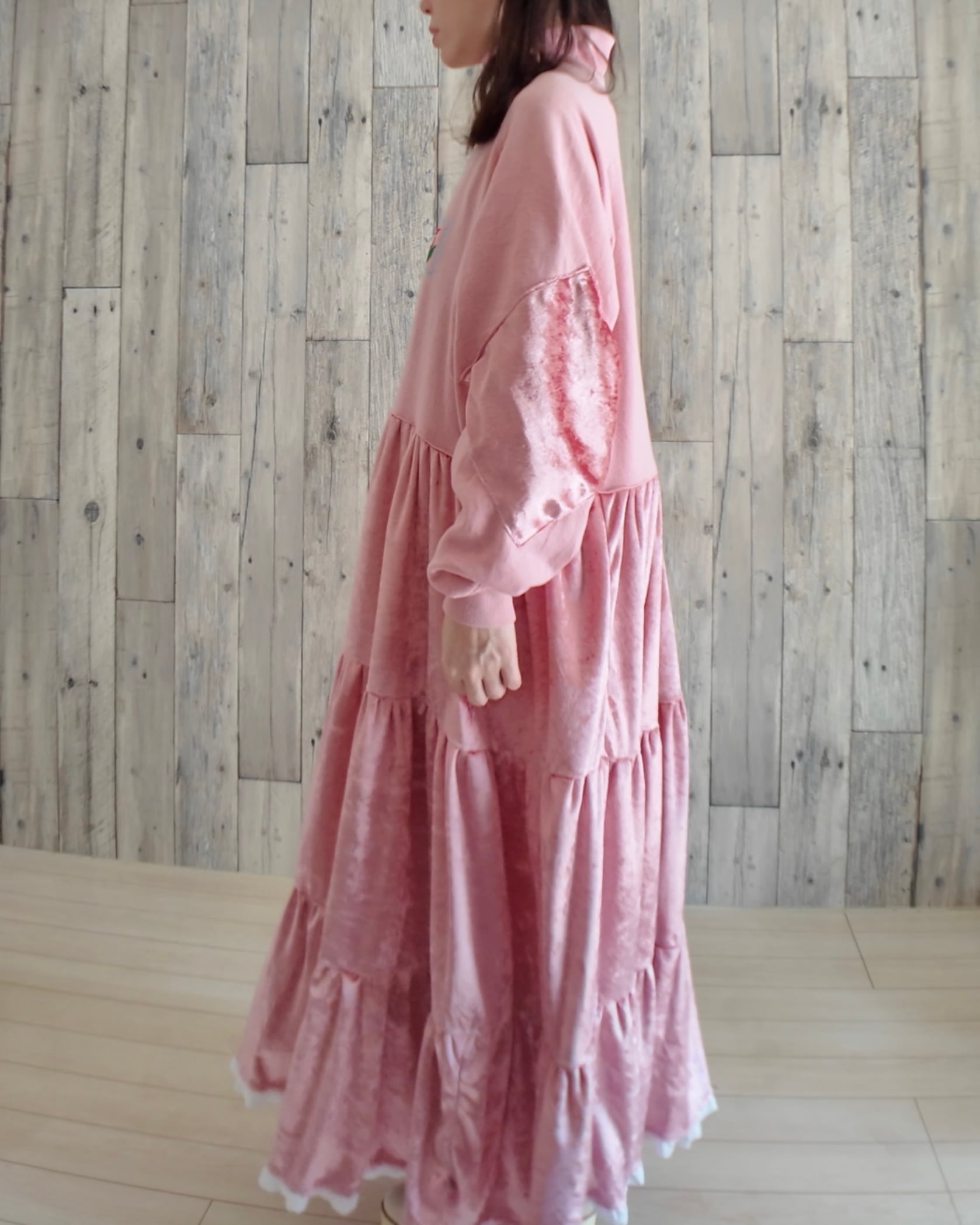 キラキラのベロア生地をたっぷり使用したボリューミーな1着。