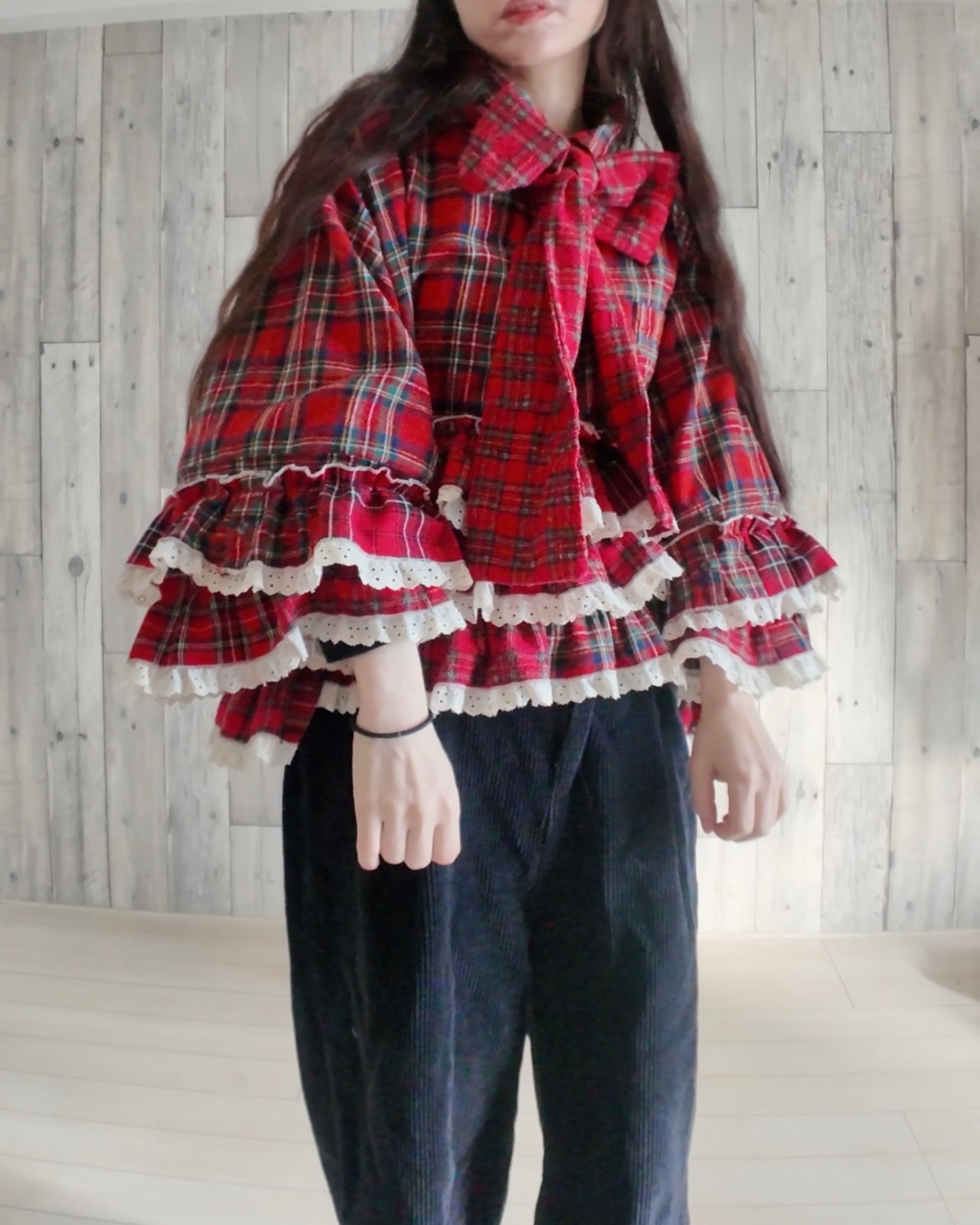 (別の柄になりますが、同種類のブラウスのリボンの巻き方の動画をInstagramにアップしているので参考にしてください)