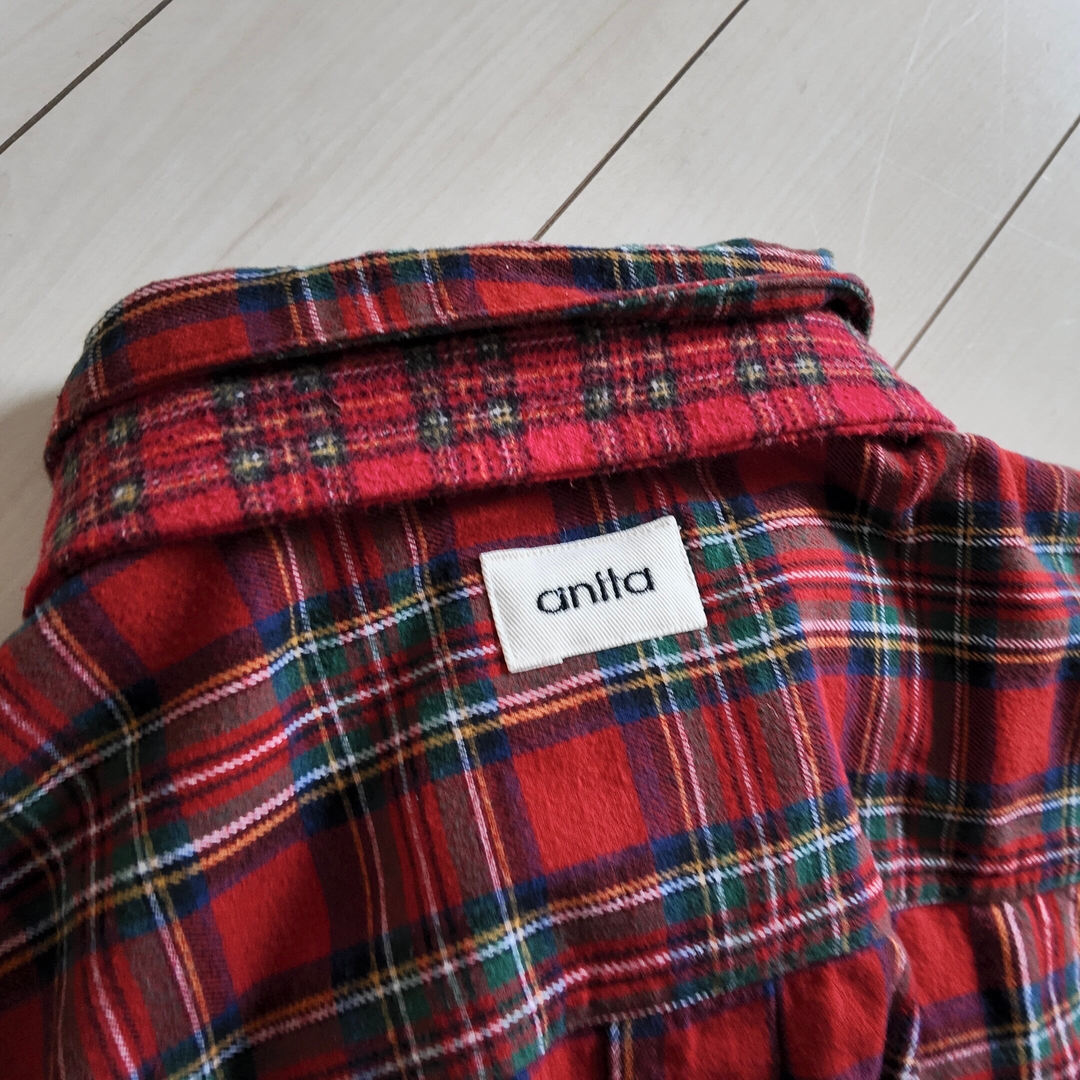 US古着のネルシャツ2枚とハギレをMIXしたブラウス。