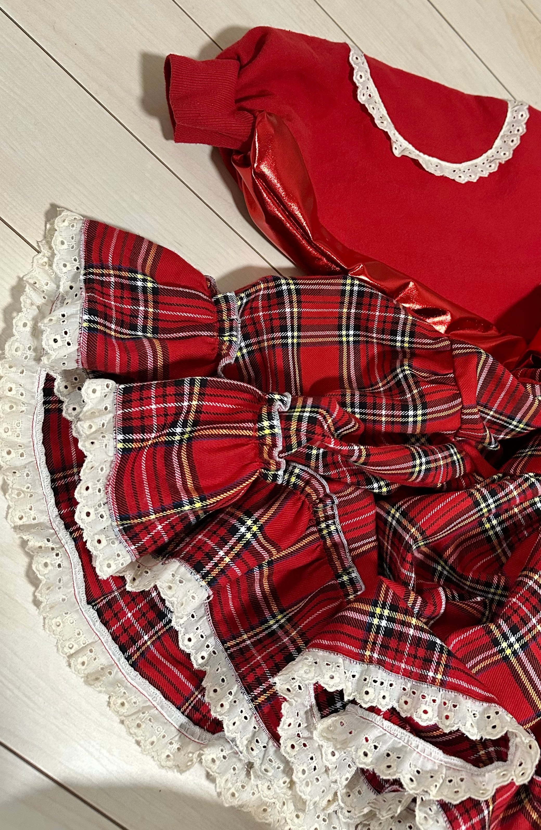 切り替えには収縮性のある真っ赤なメタリック生地を使用しました。