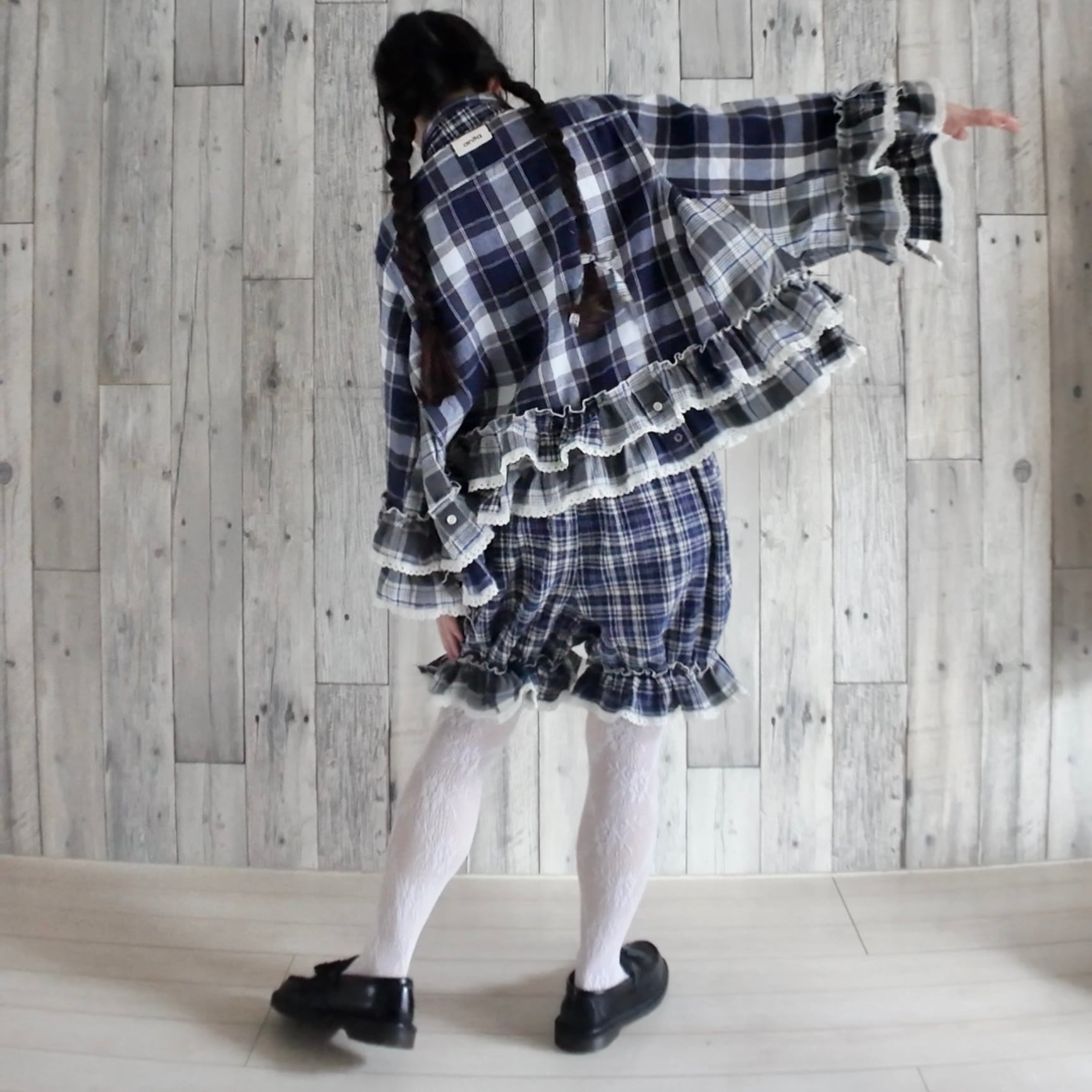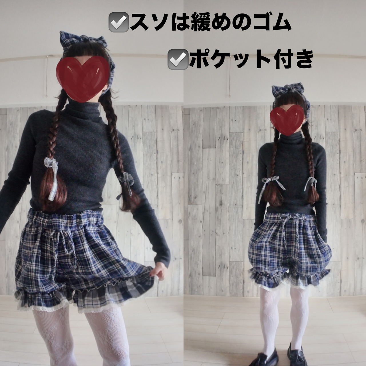 ドロワーズはウエストで1つ折り返して履くと短く、腰で履くと長く履けます。