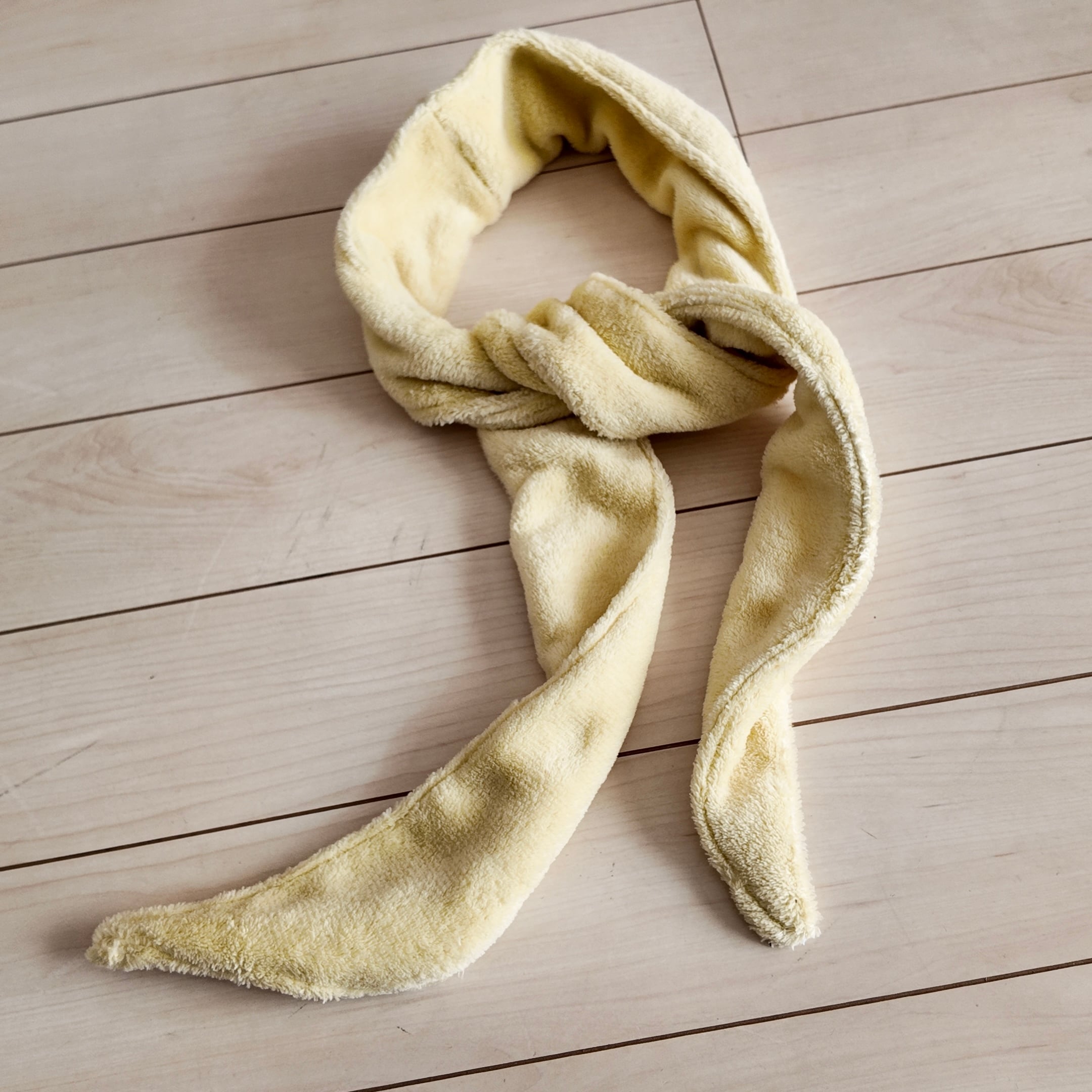 付属のロングタイは、マフラー巻き、1つ結び、ターバンにする、等色んな楽しみ方ができます。