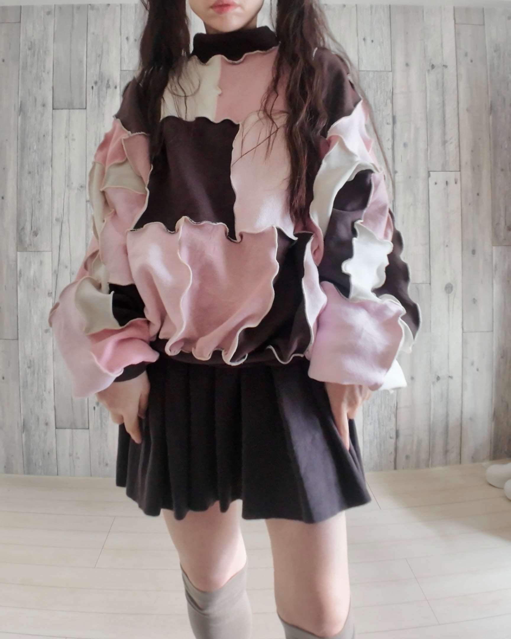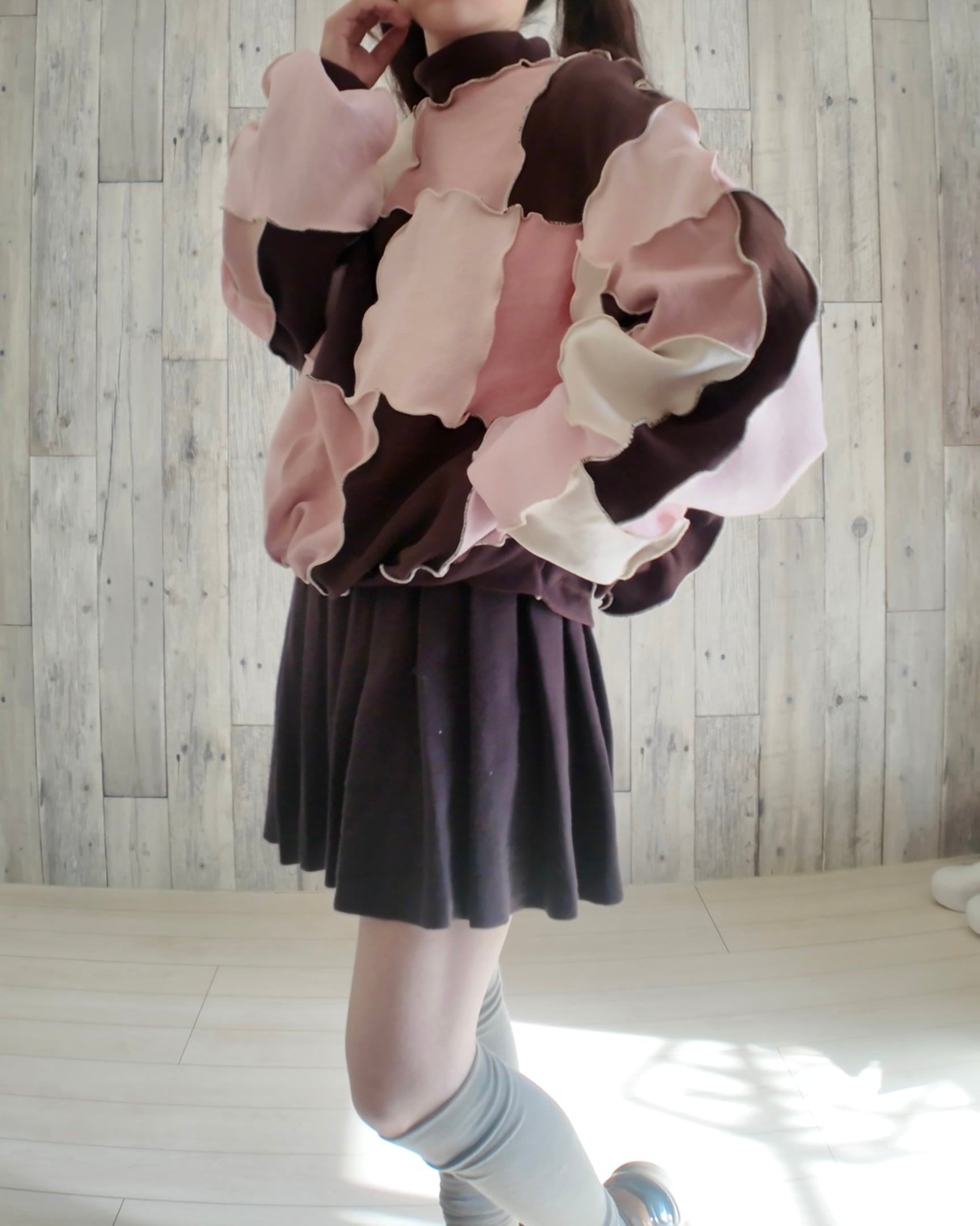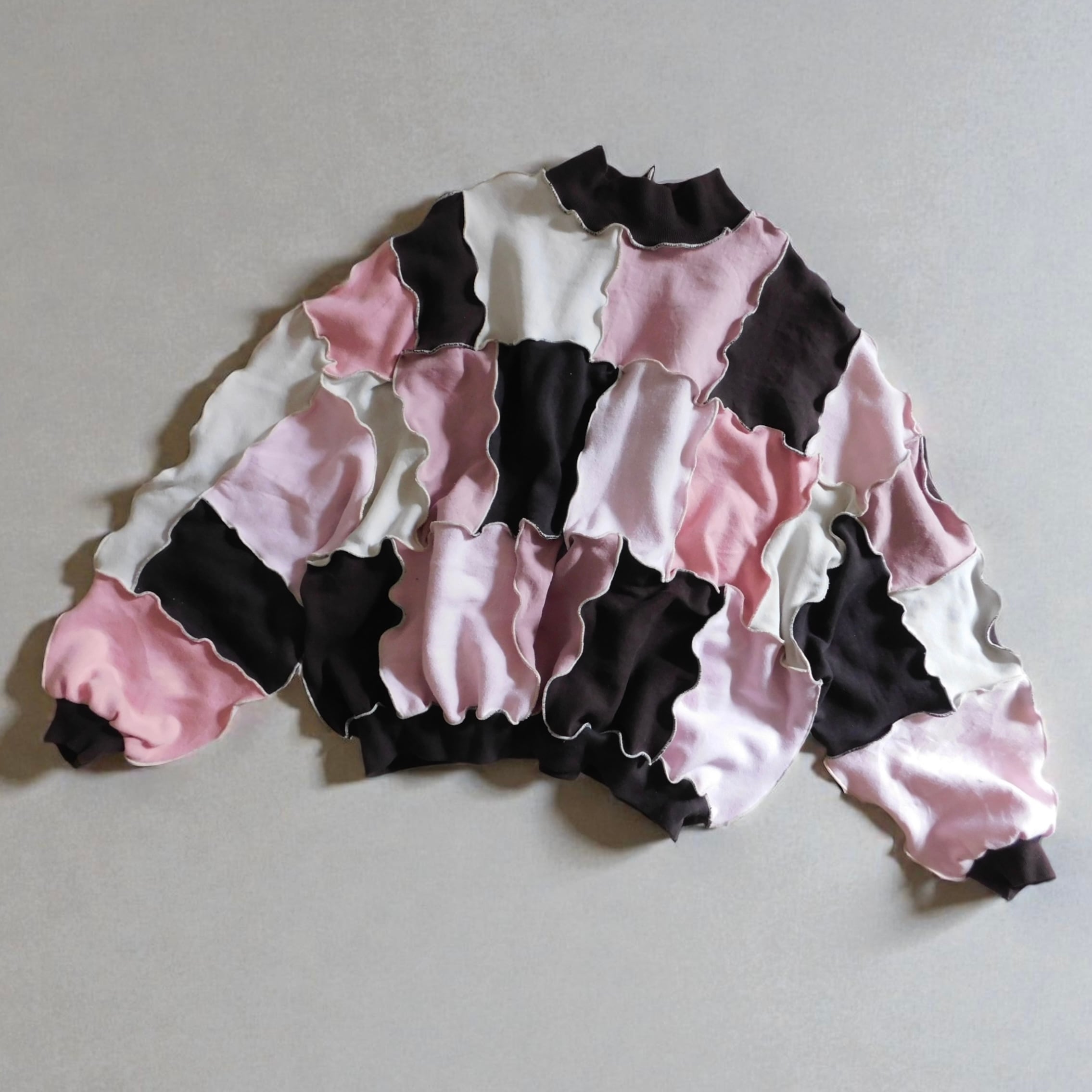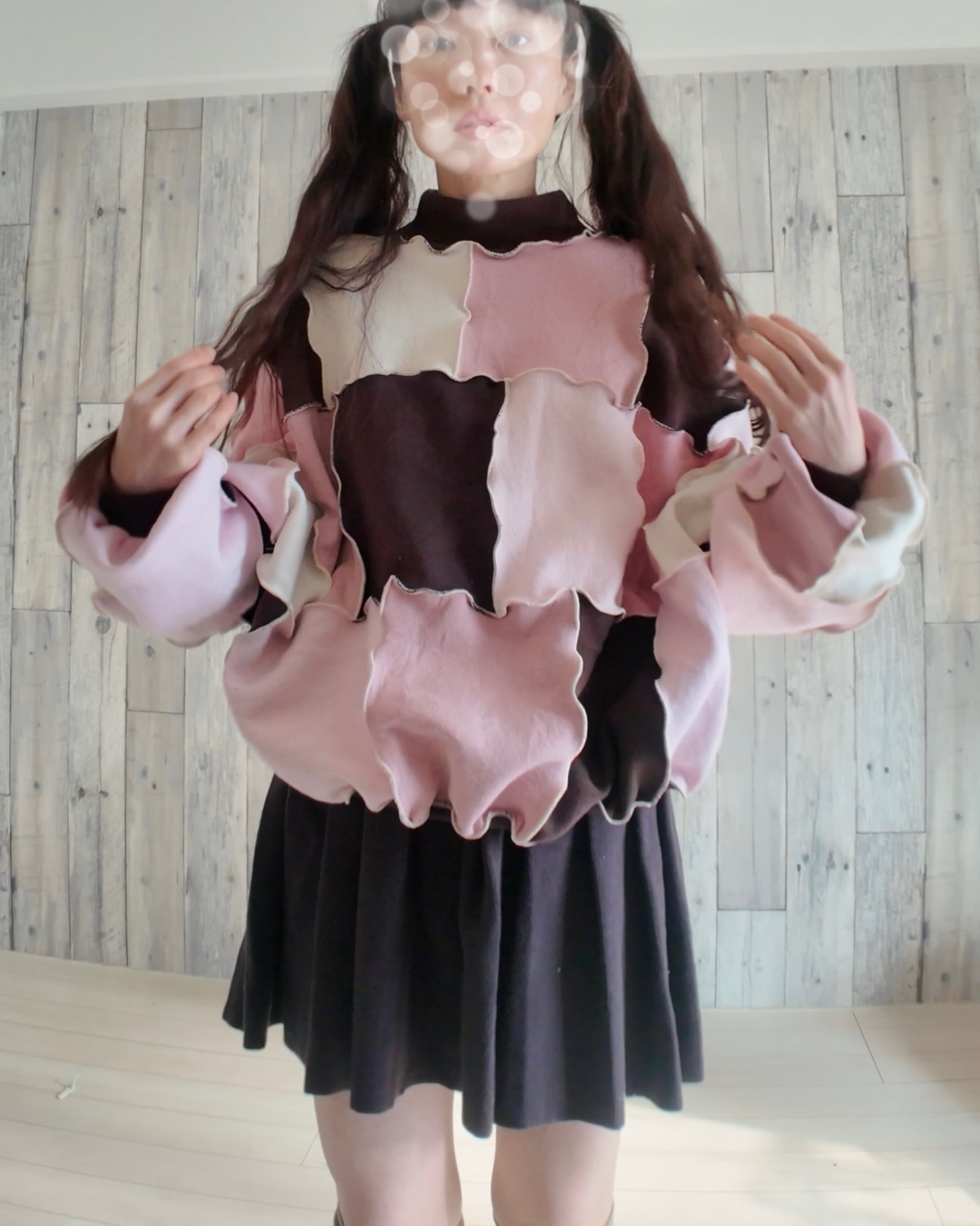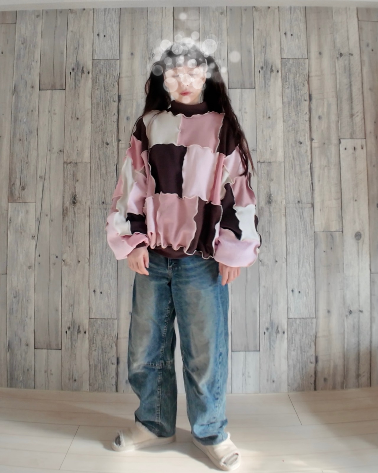 スウェットのハギレを繋ぎ合わせたリメイクトップス。