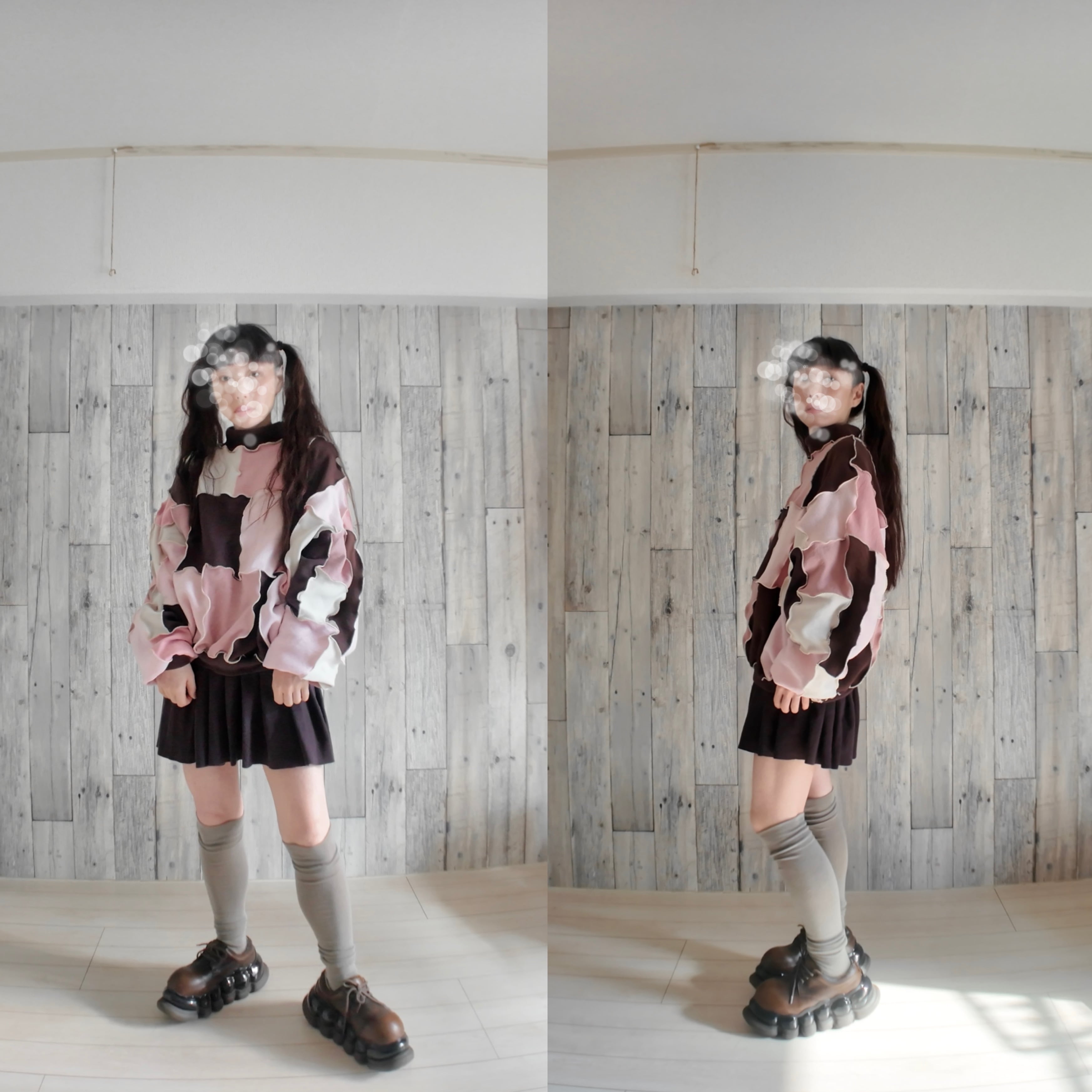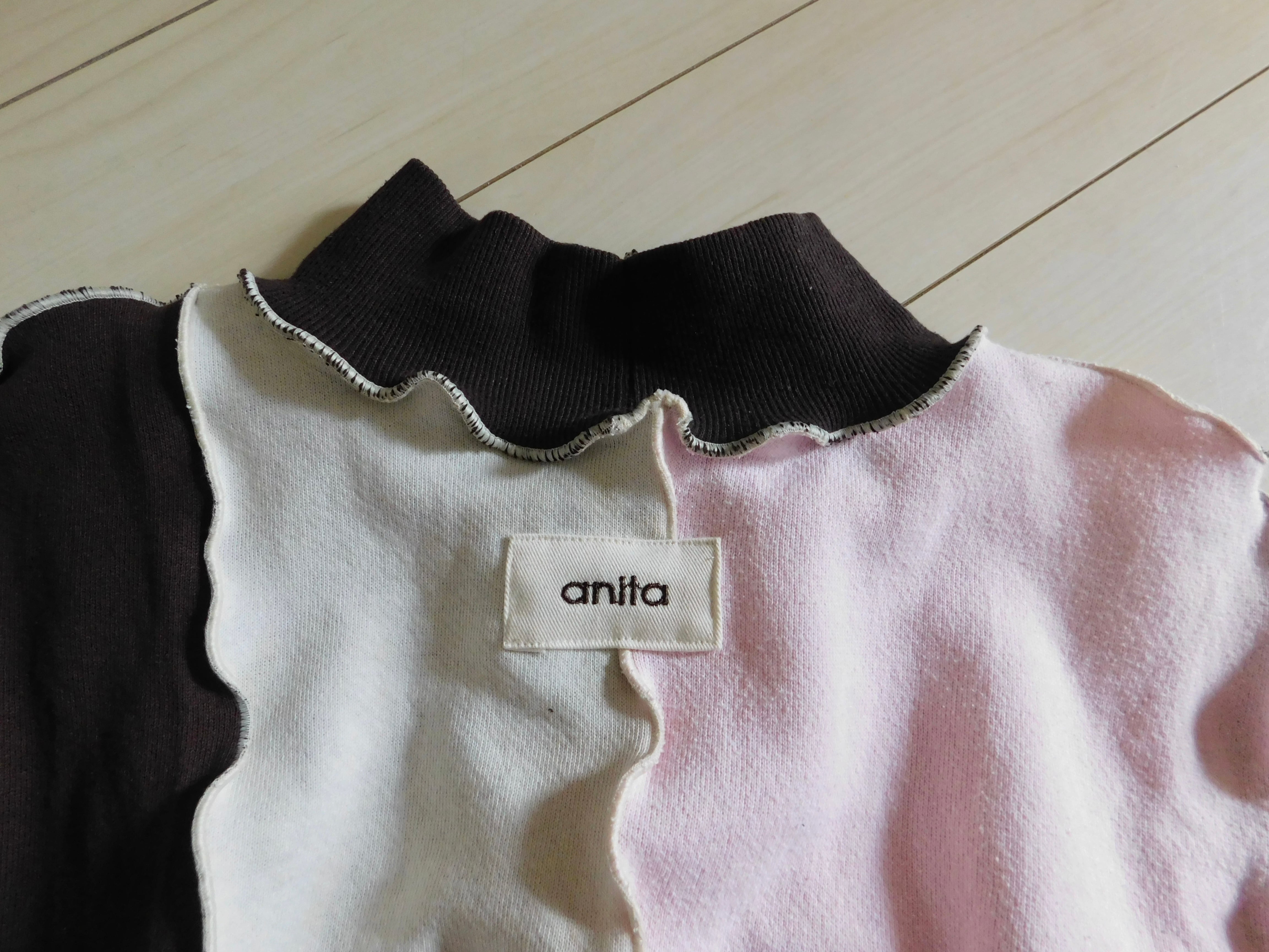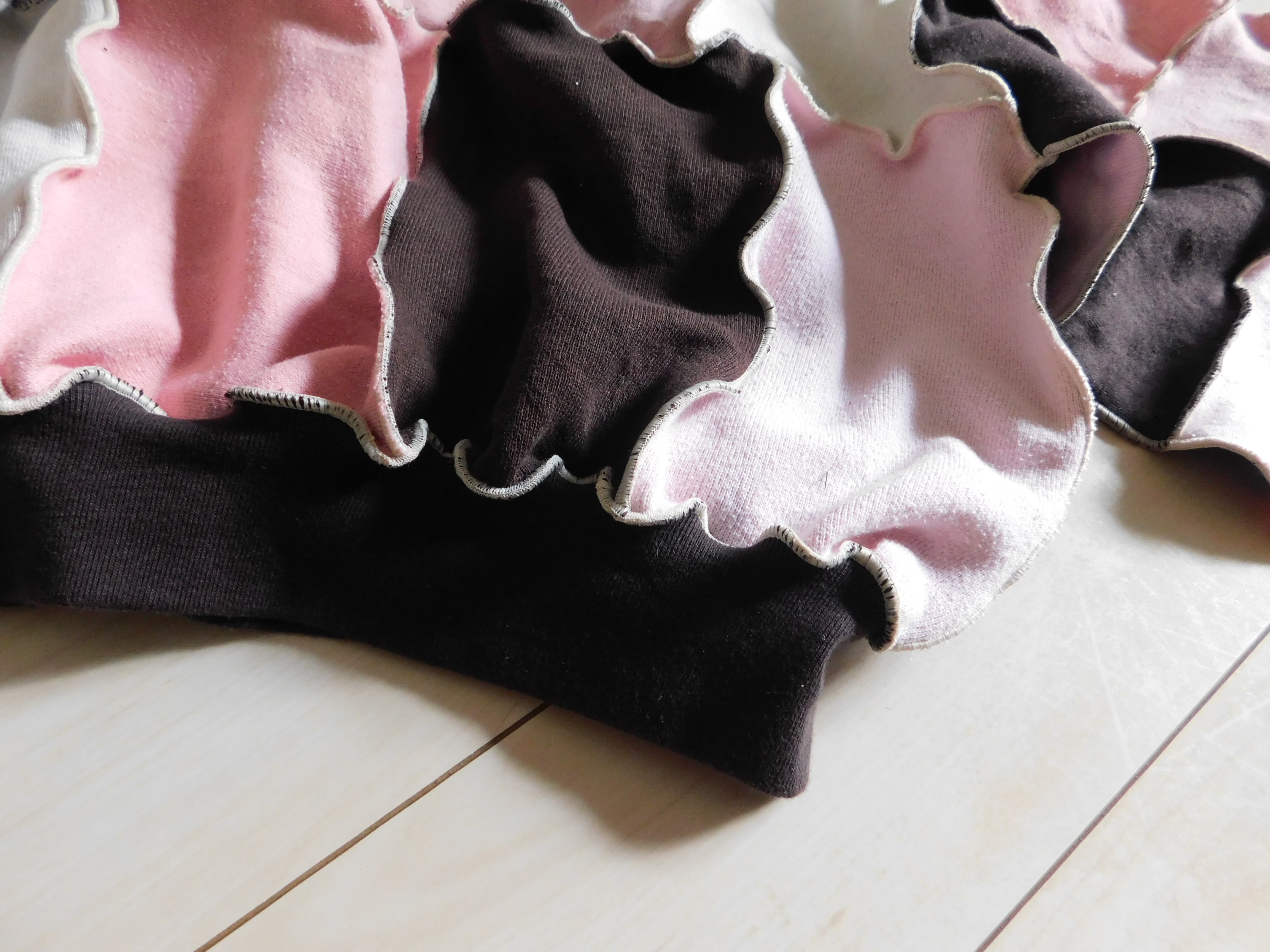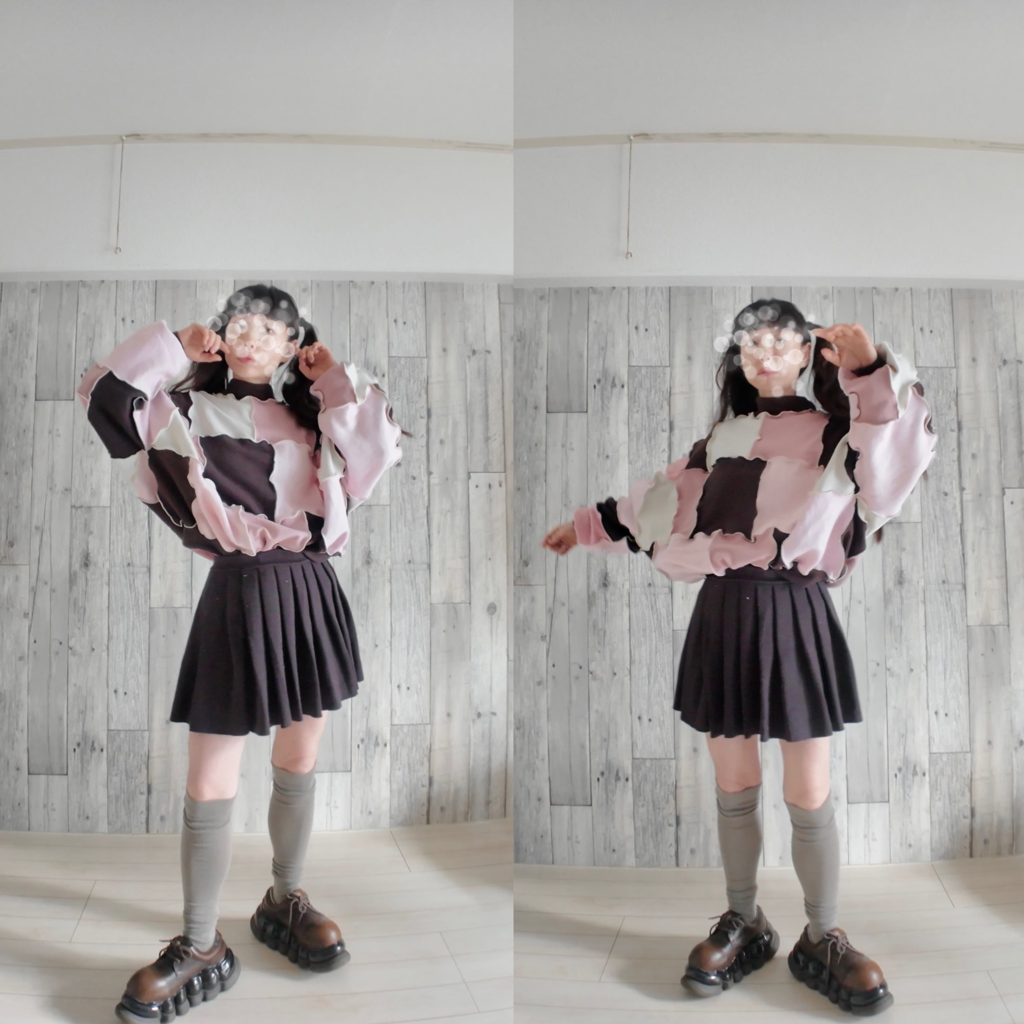 スウェットのハギレを繋ぎ合わせたリメイクトップス。