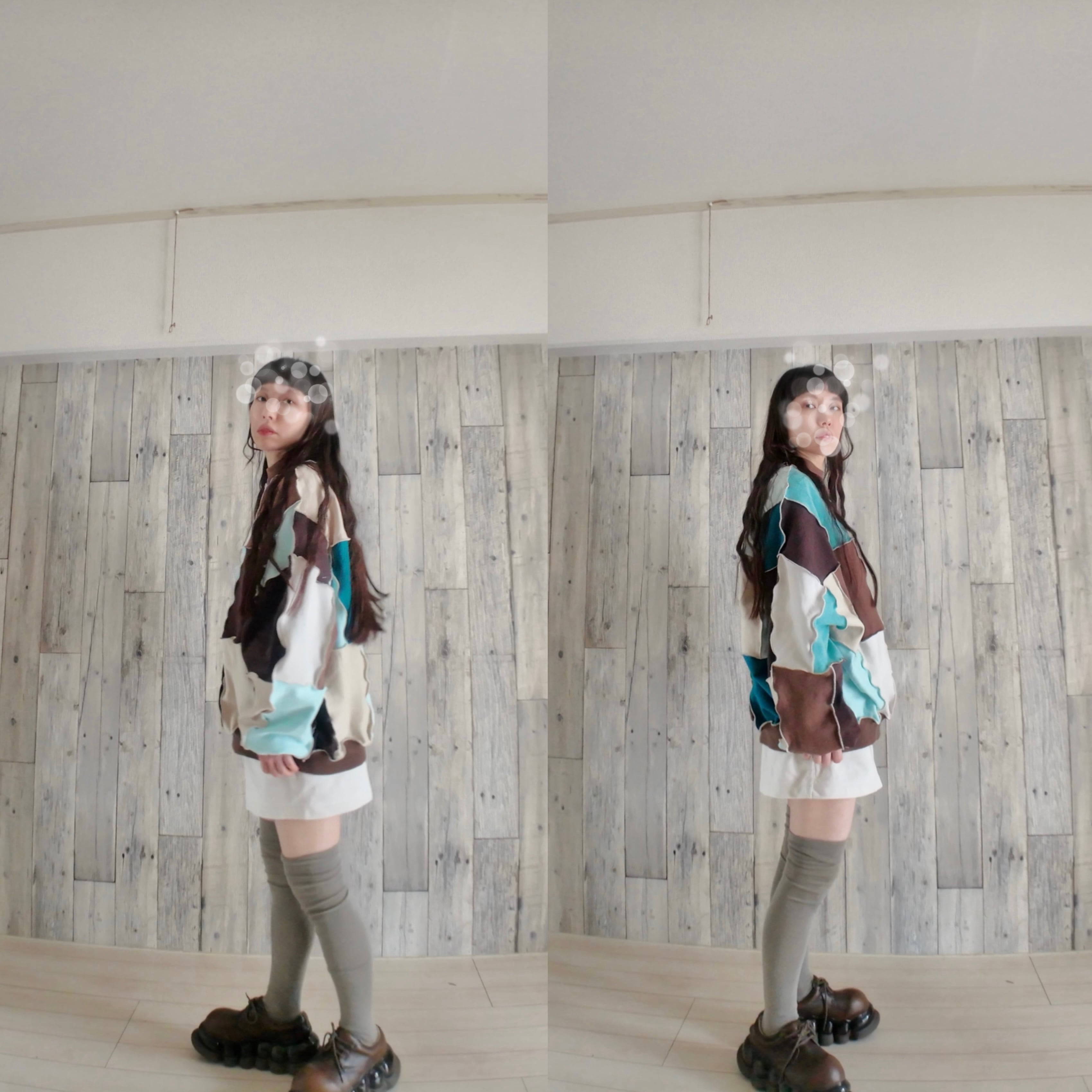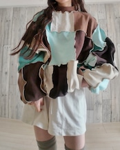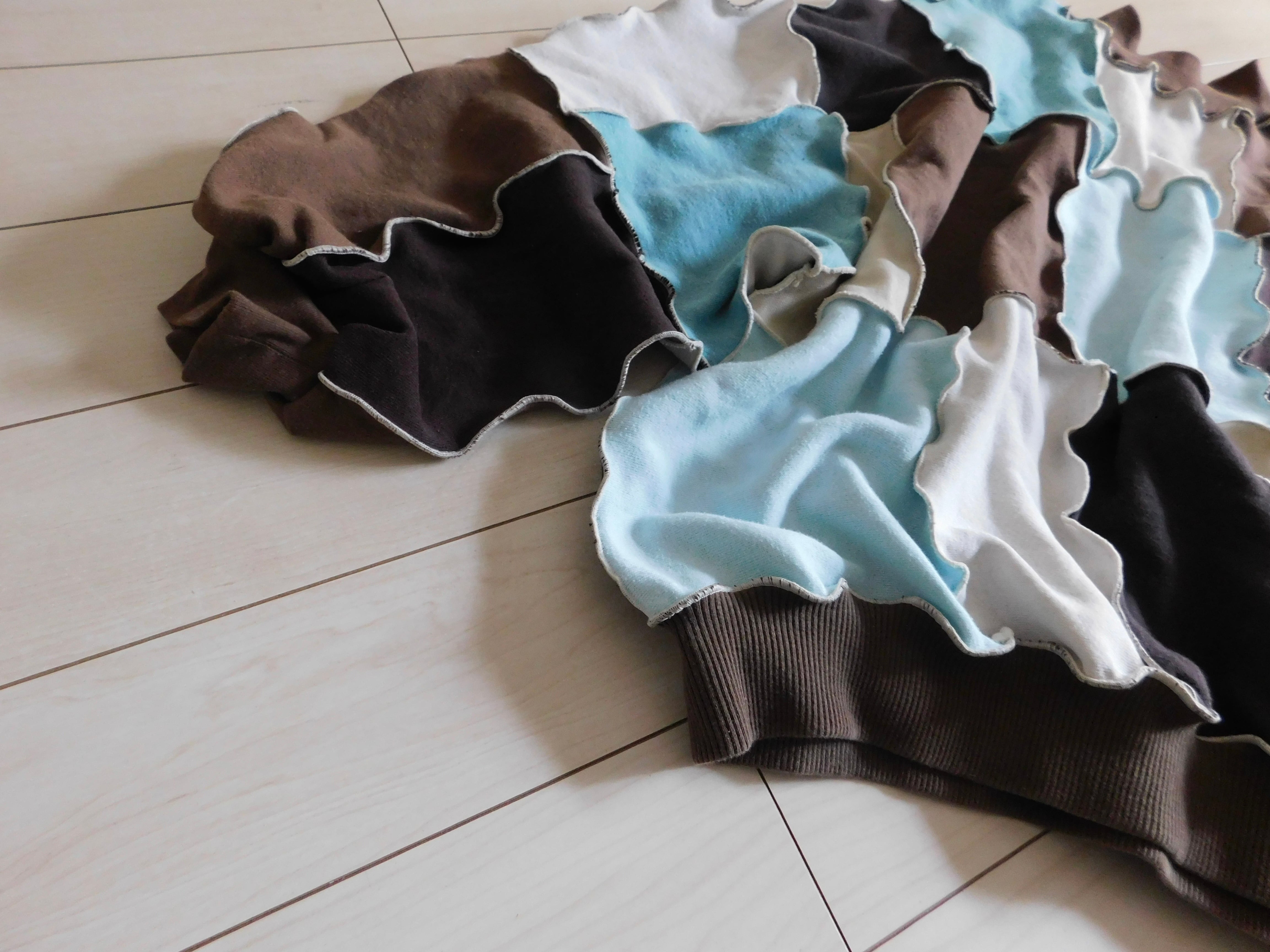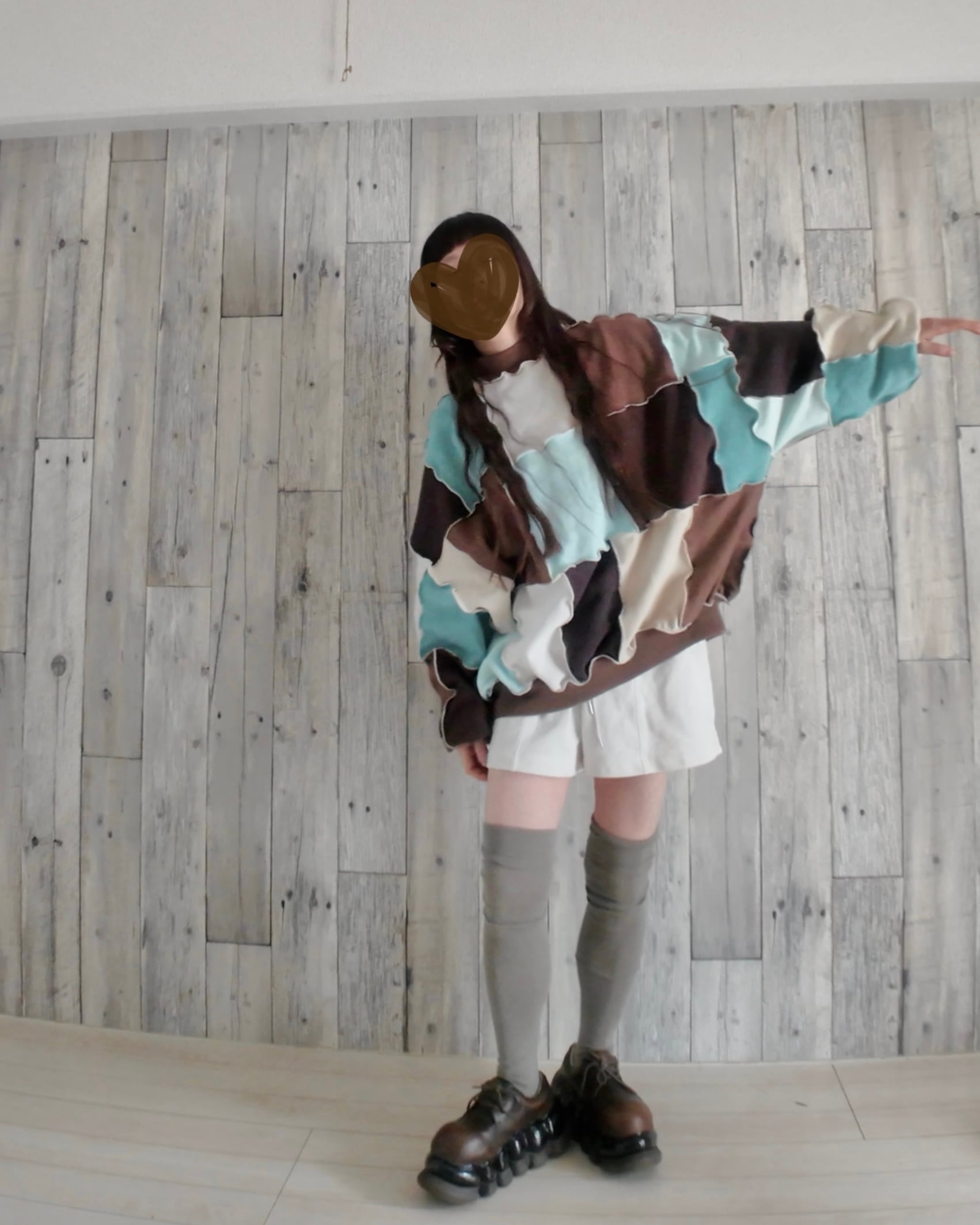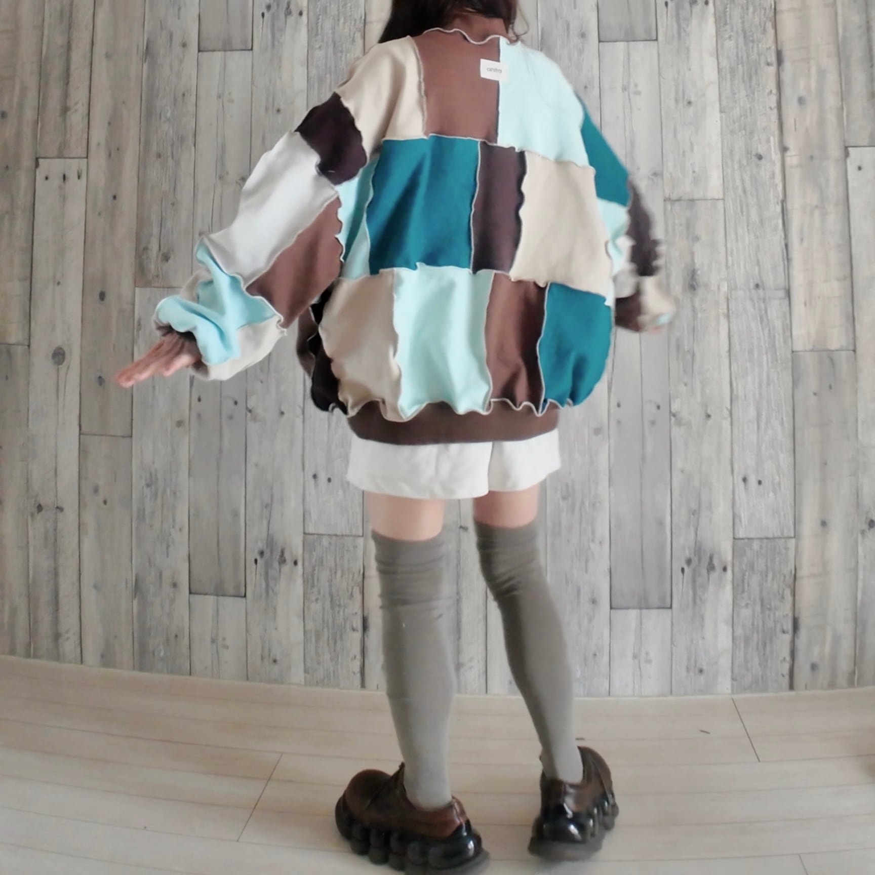 スウェットのハギレを繋ぎ合わせたリメイクトップス。