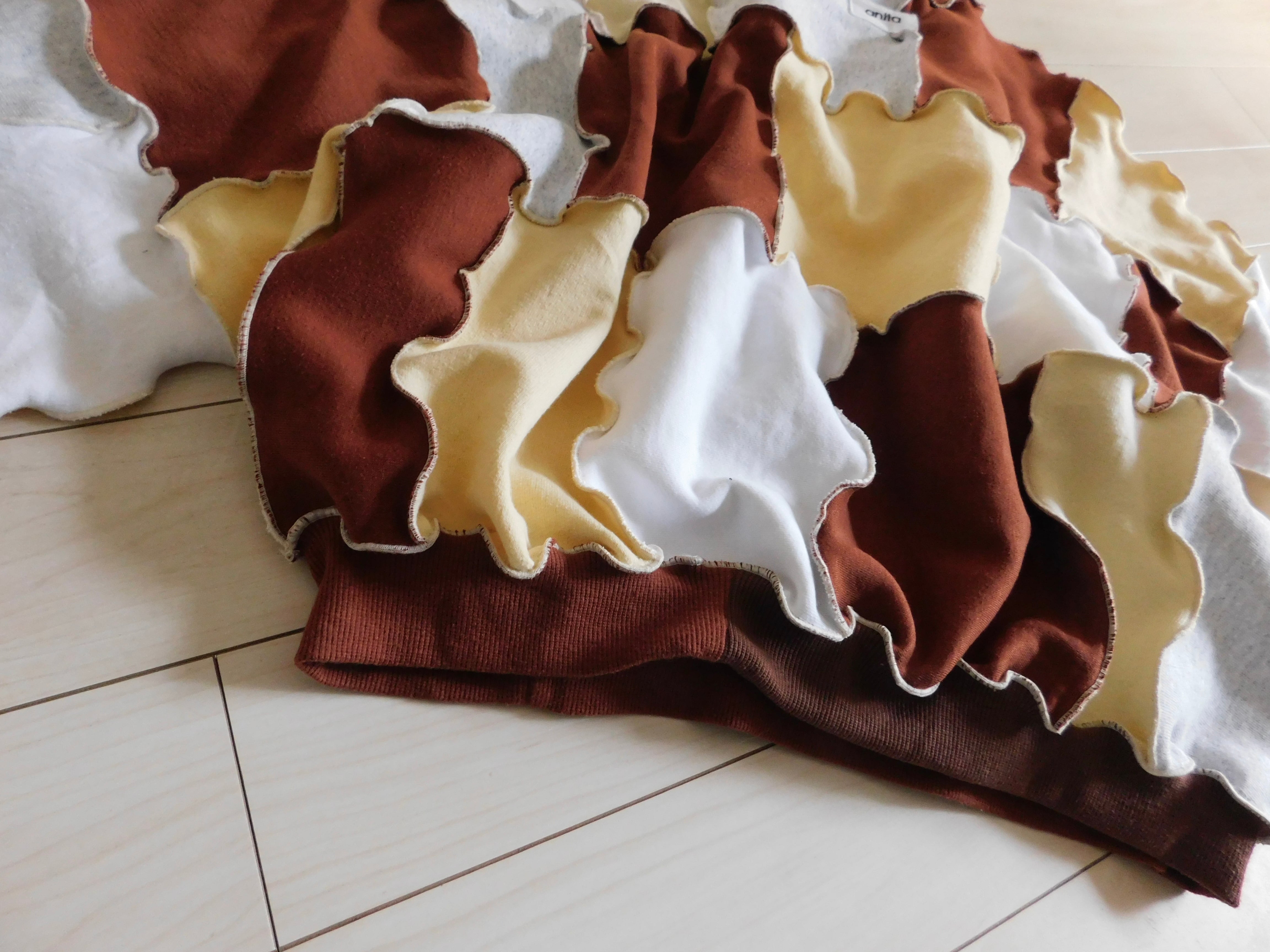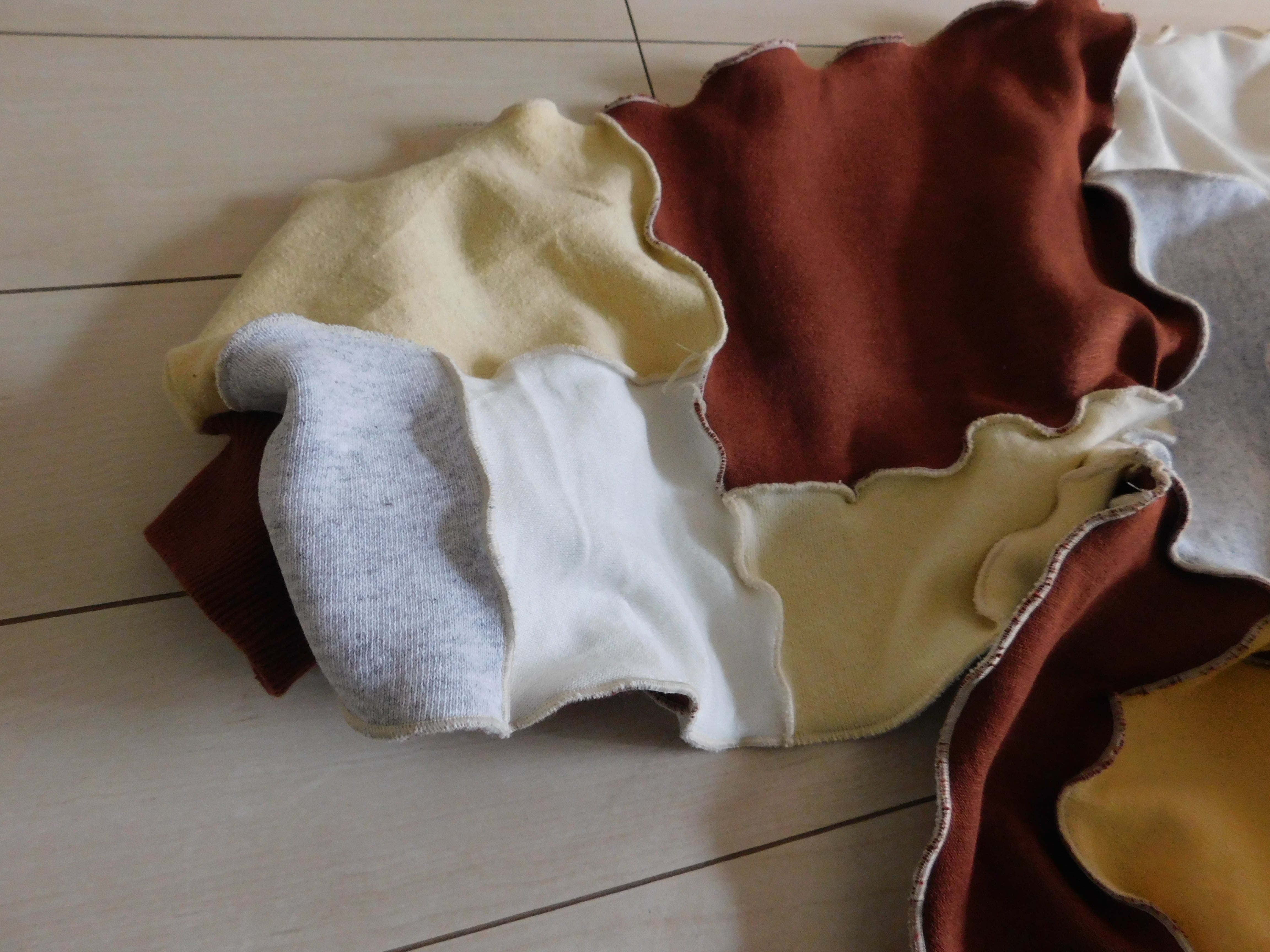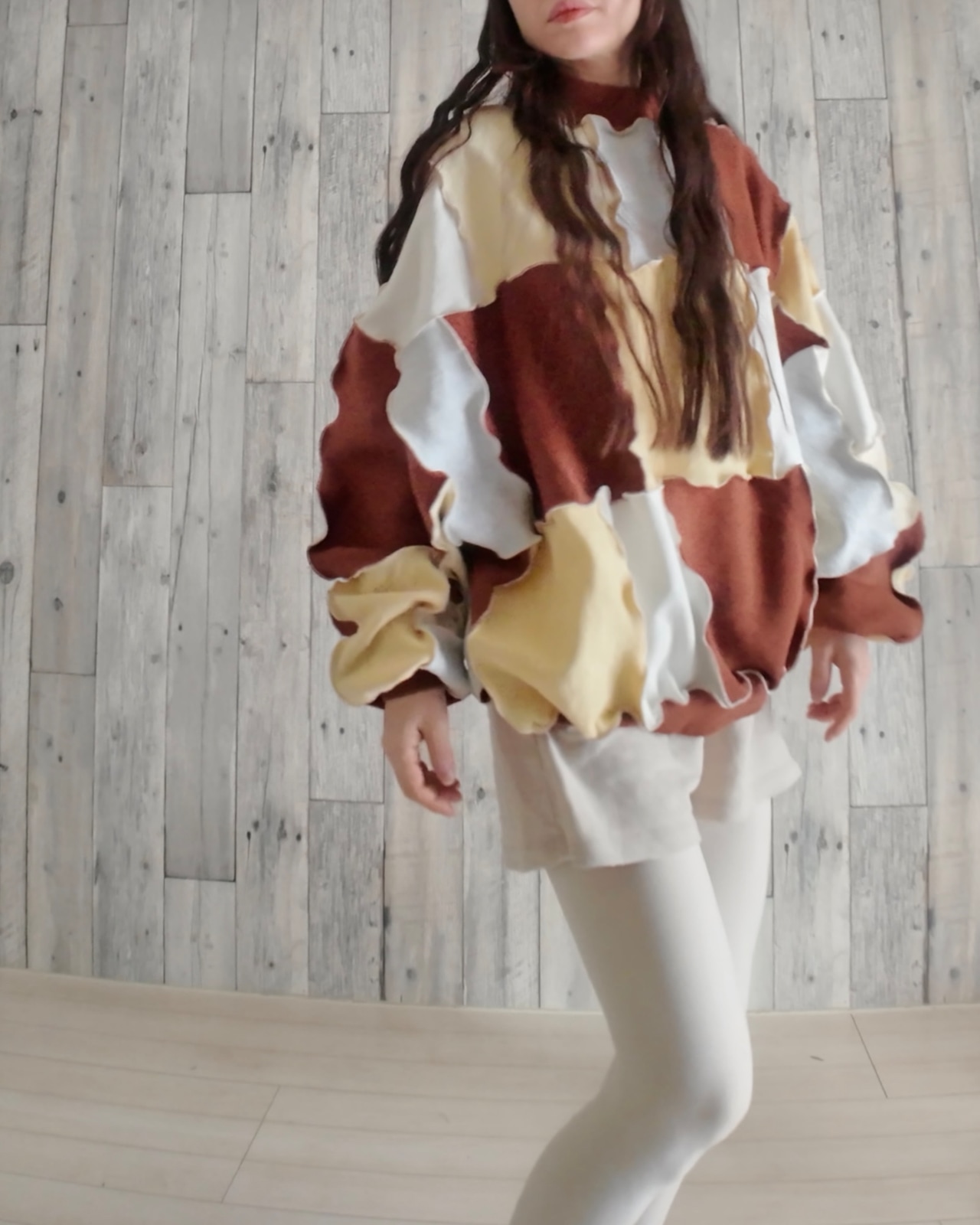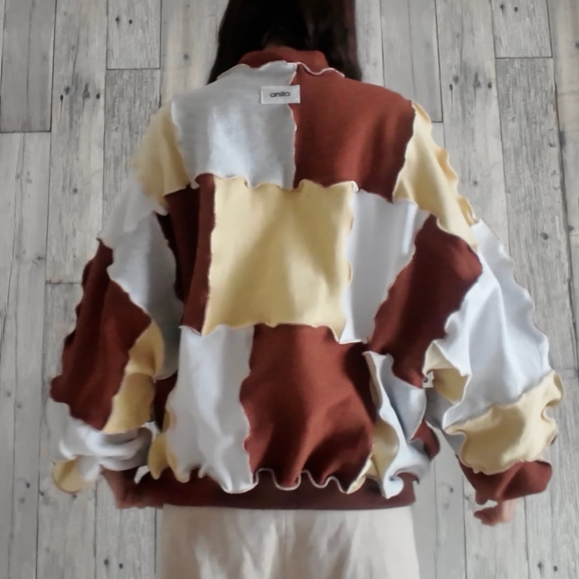 スウェットのハギレを繋ぎ合わせたリメイクトップス。