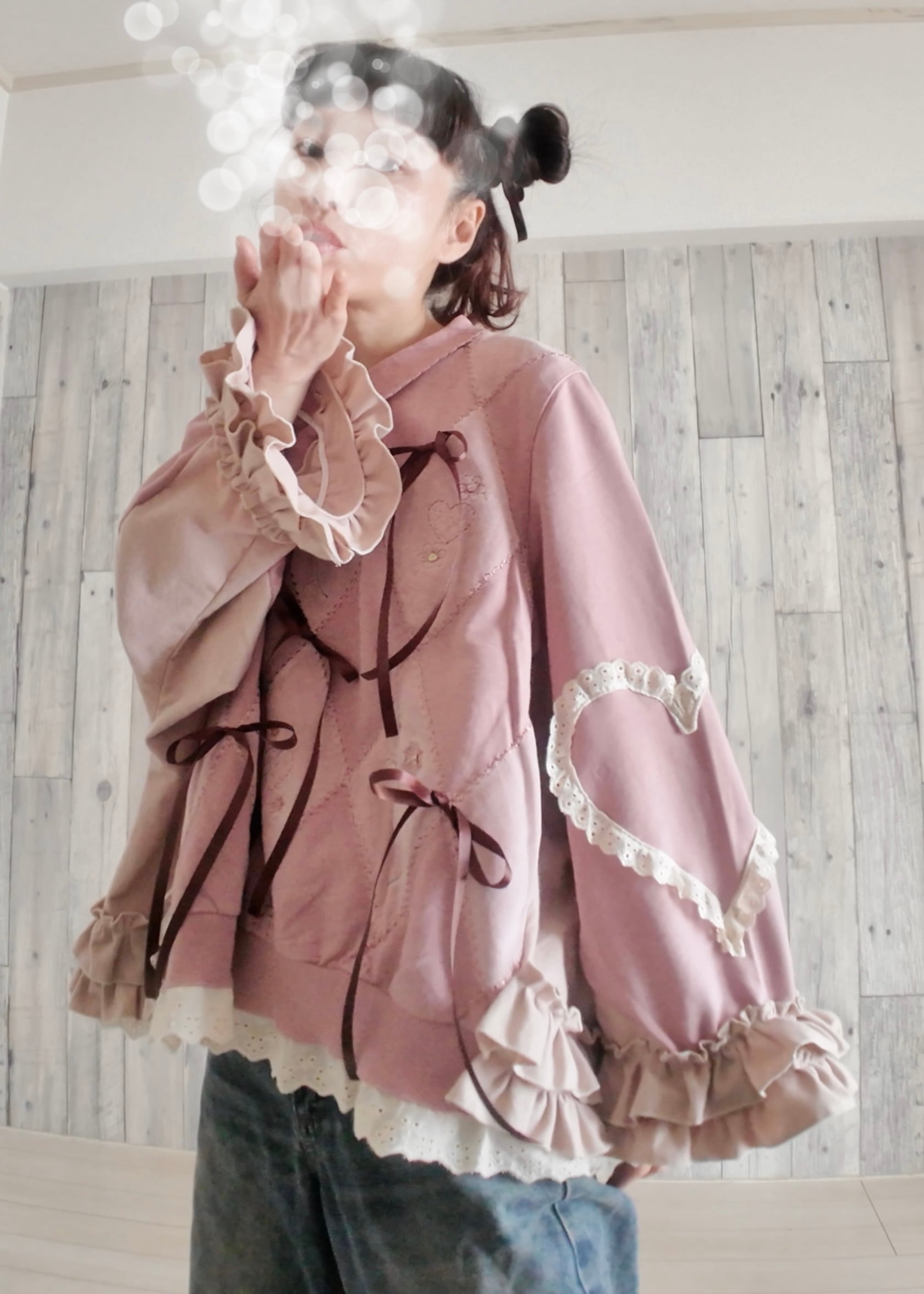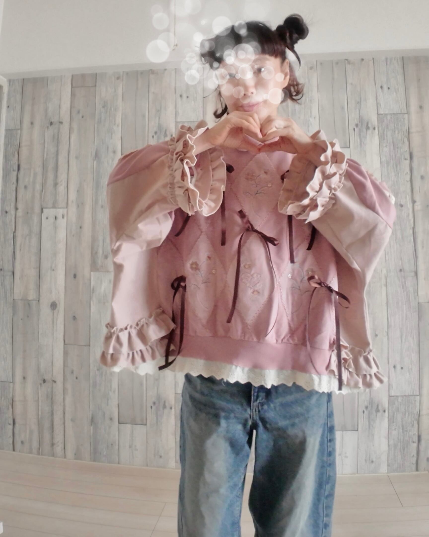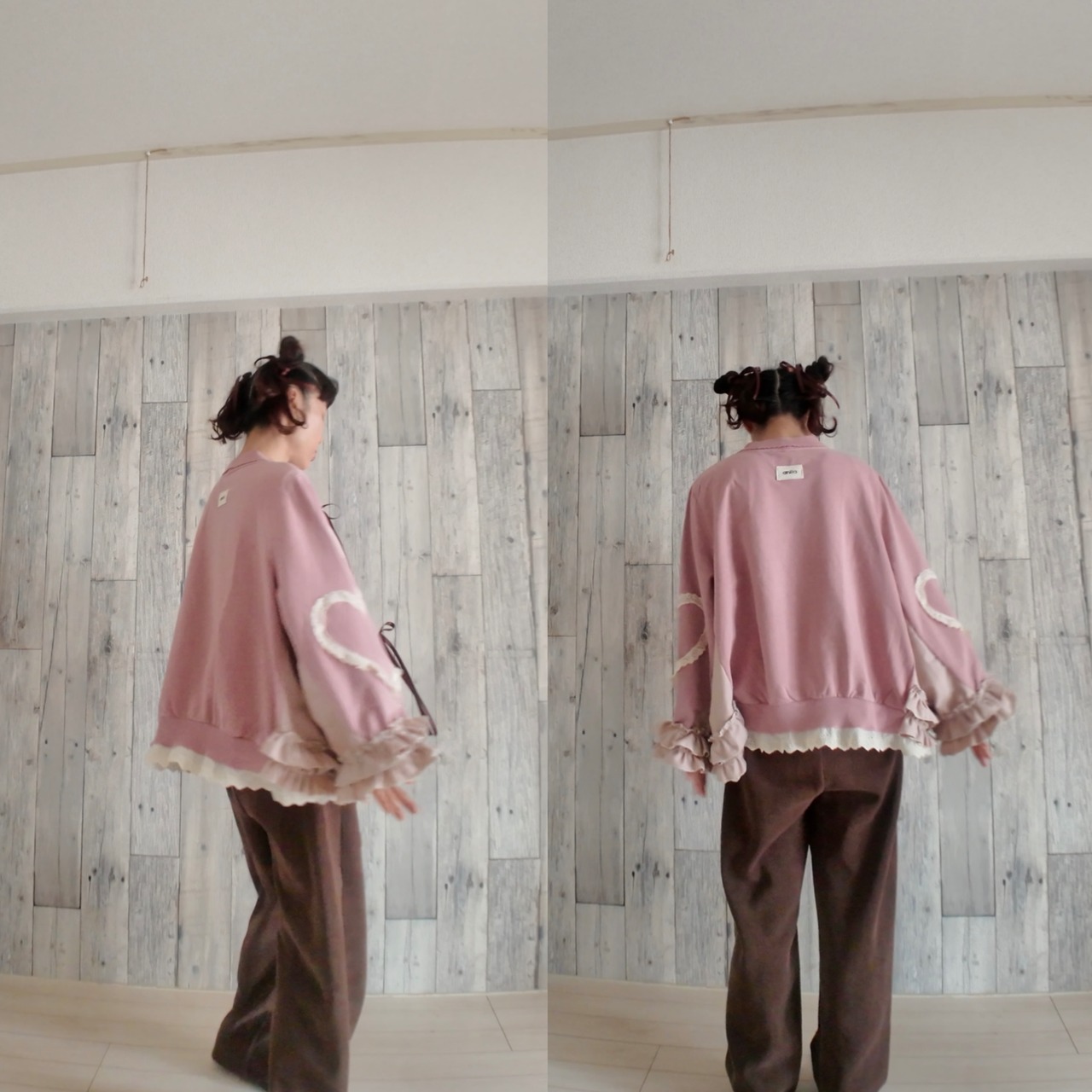 古着のスウェットをリメイクしたバレンタインスペシャル。