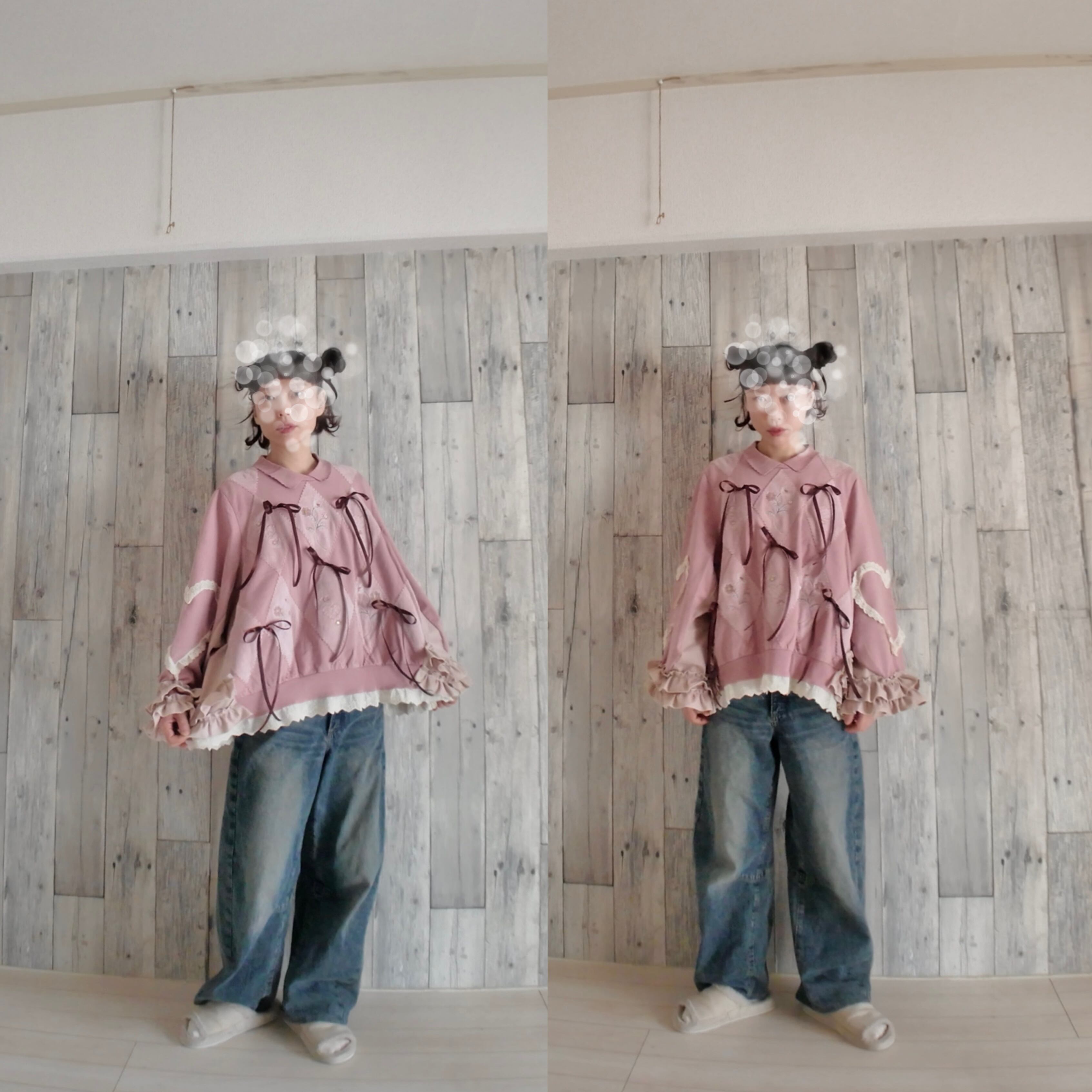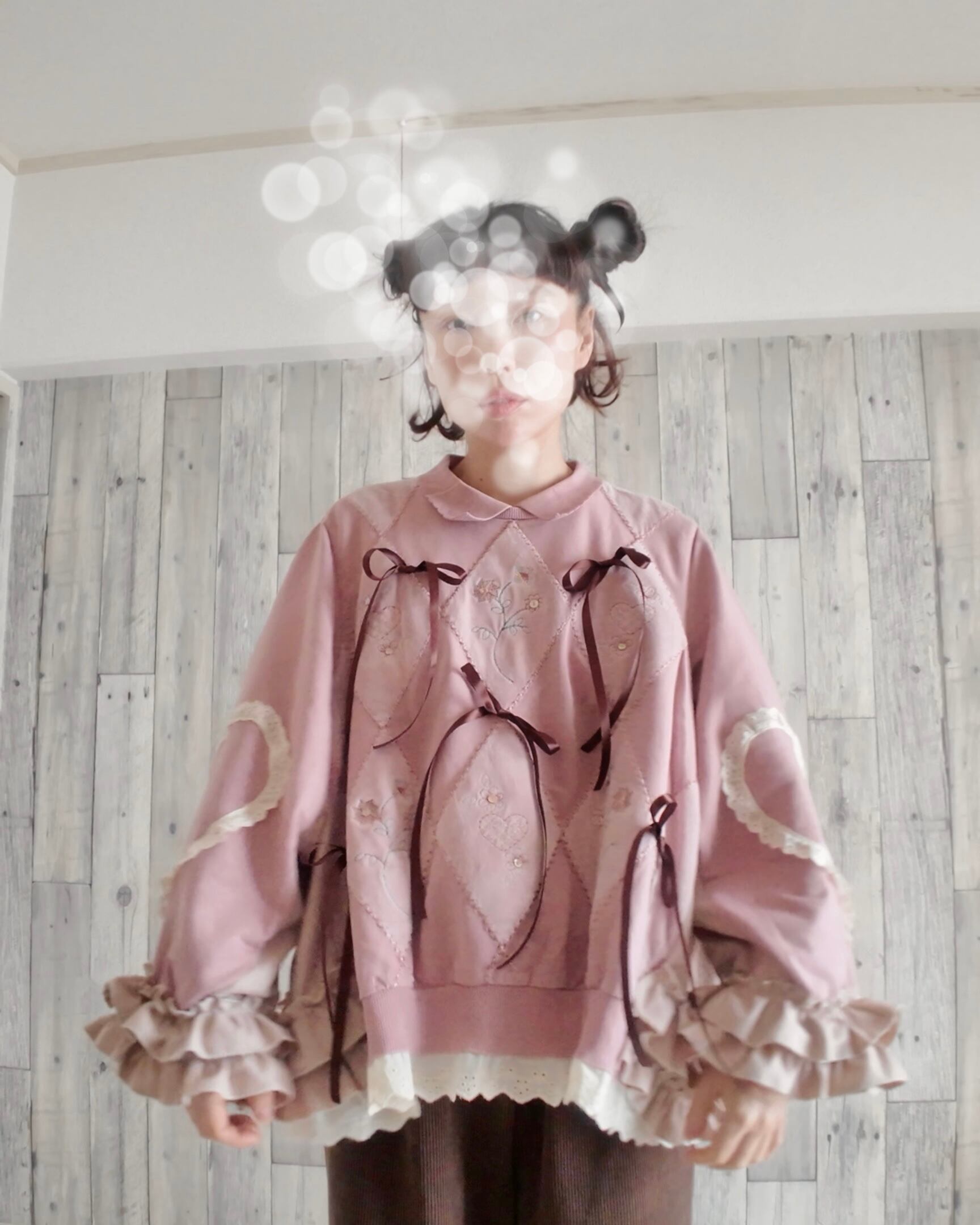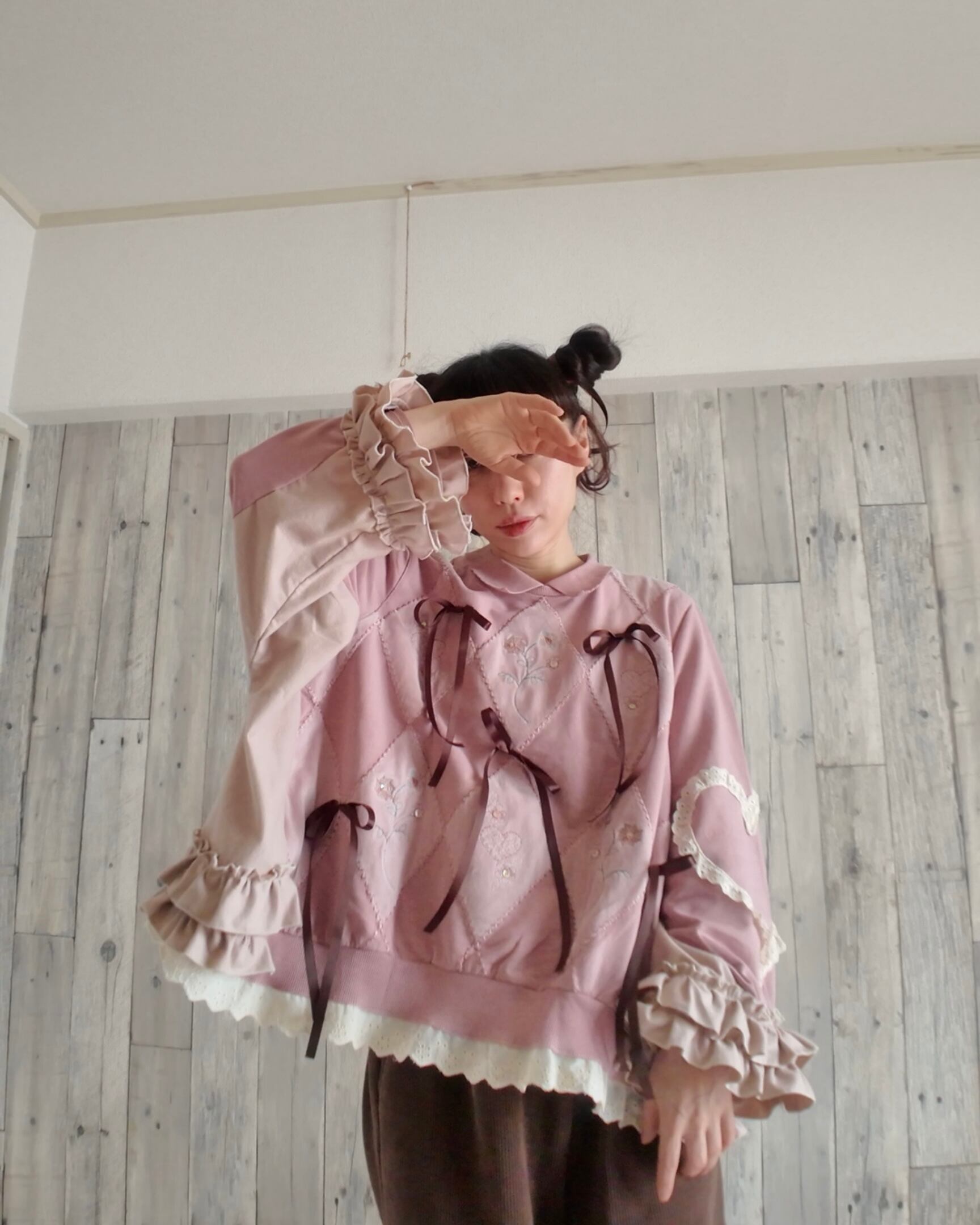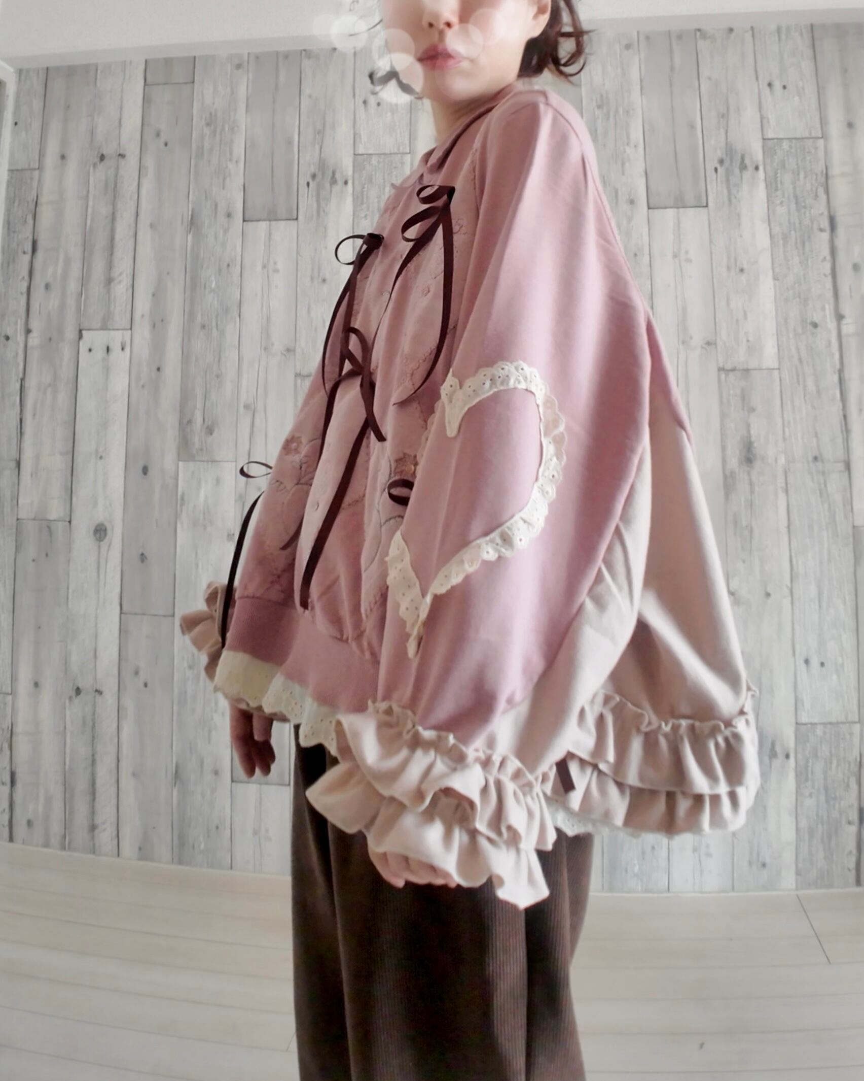 古着のスウェットをリメイクしたバレンタインスペシャル。
