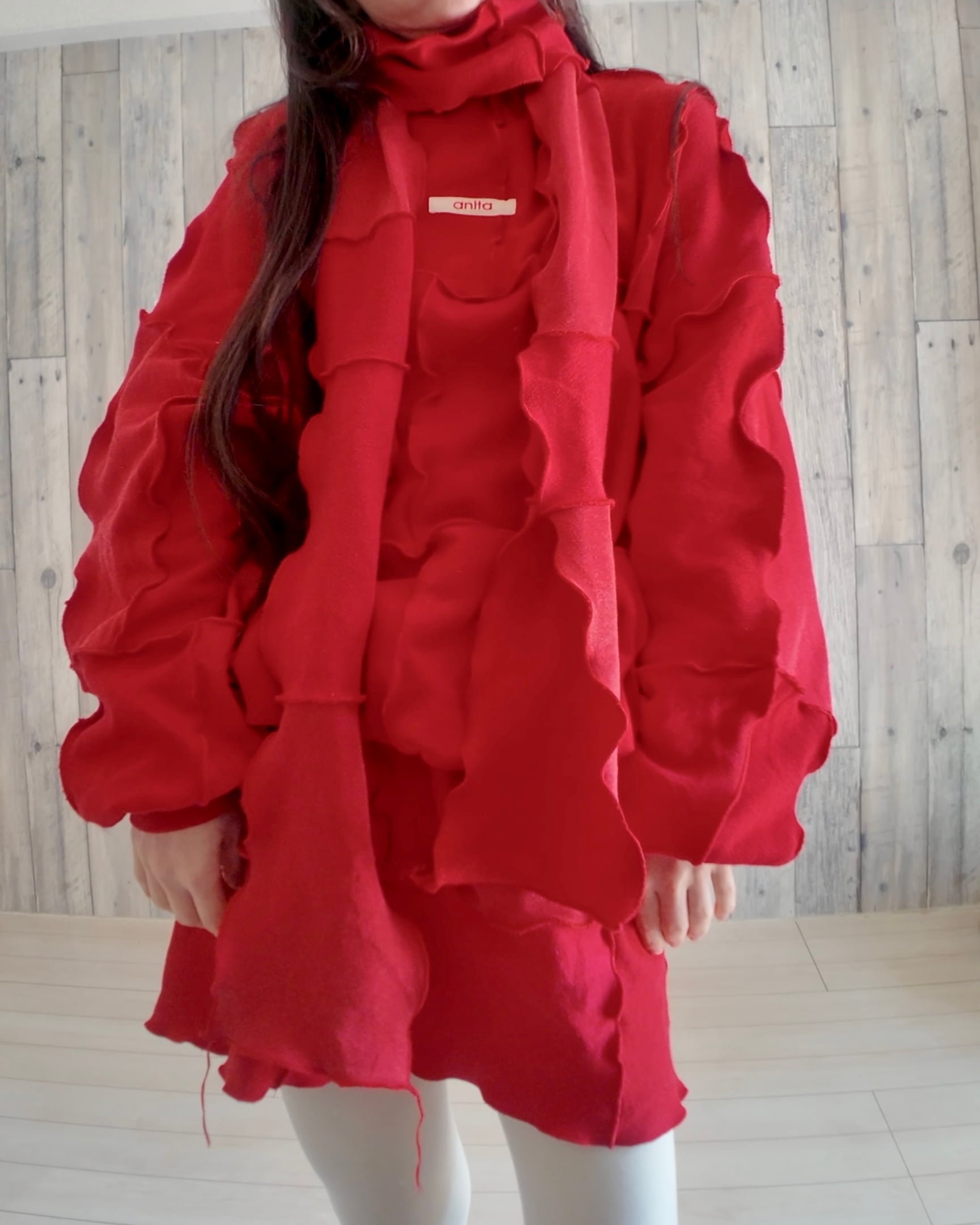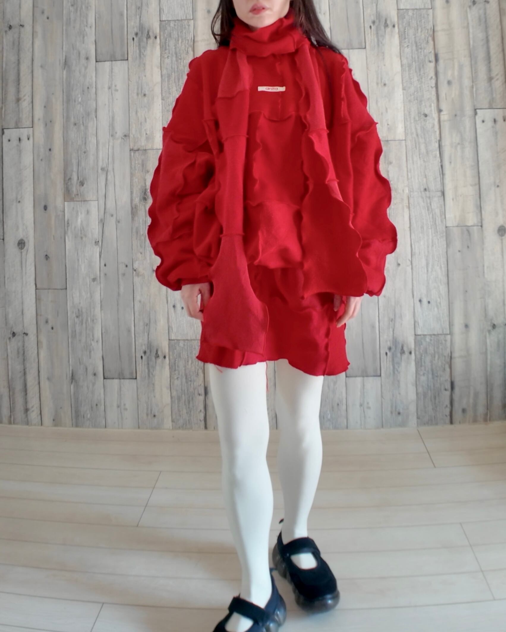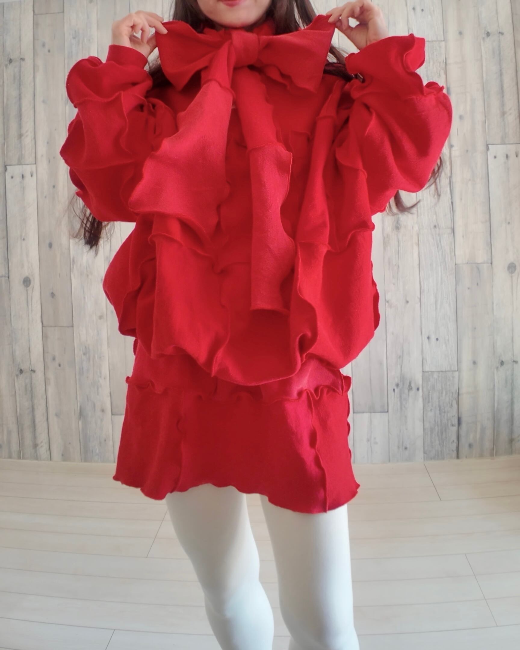 ☑️こちらの実際の質感は着用画像よりも、一枚目の写真や、マフラー(りぼん)のアップの写真に近いです。