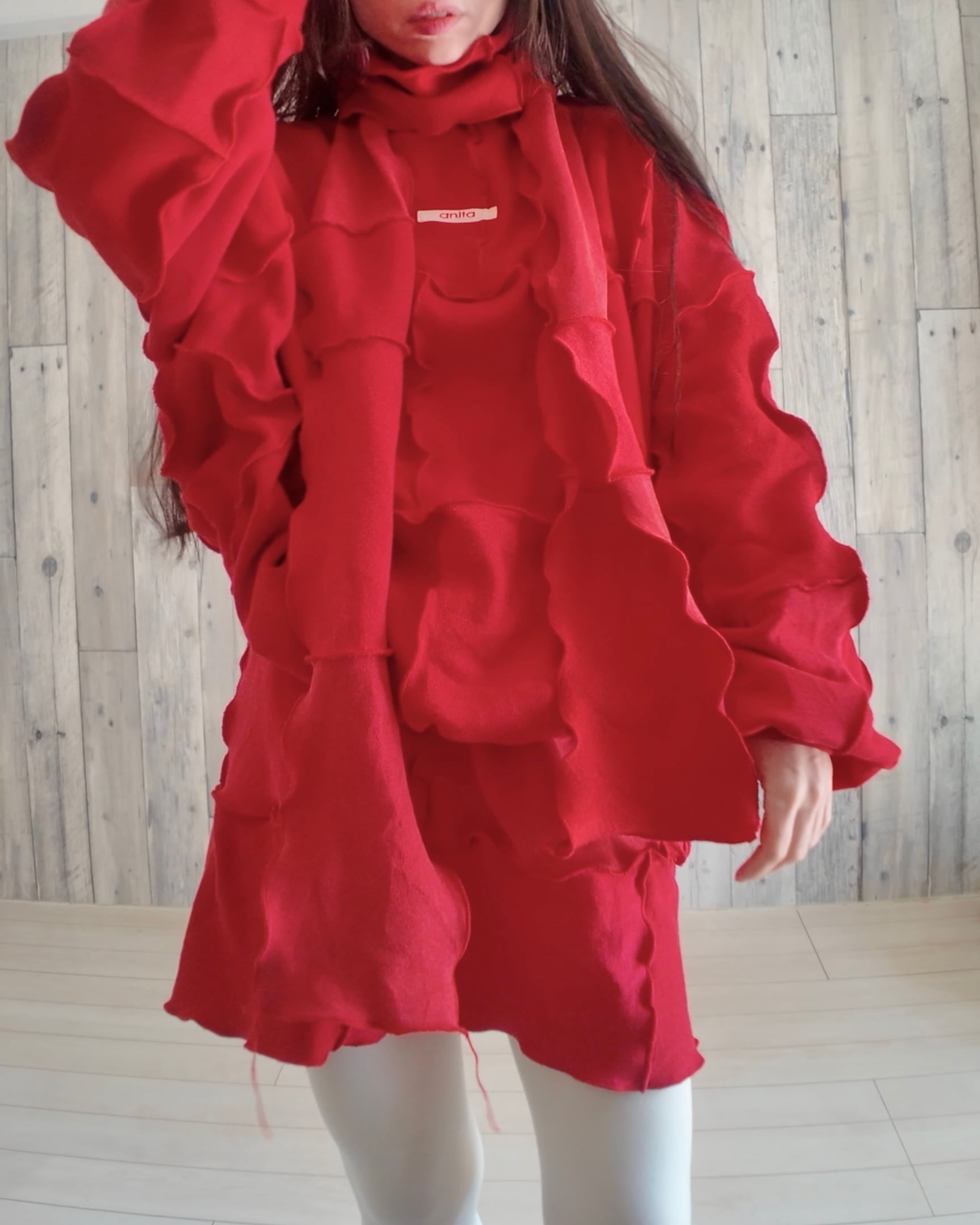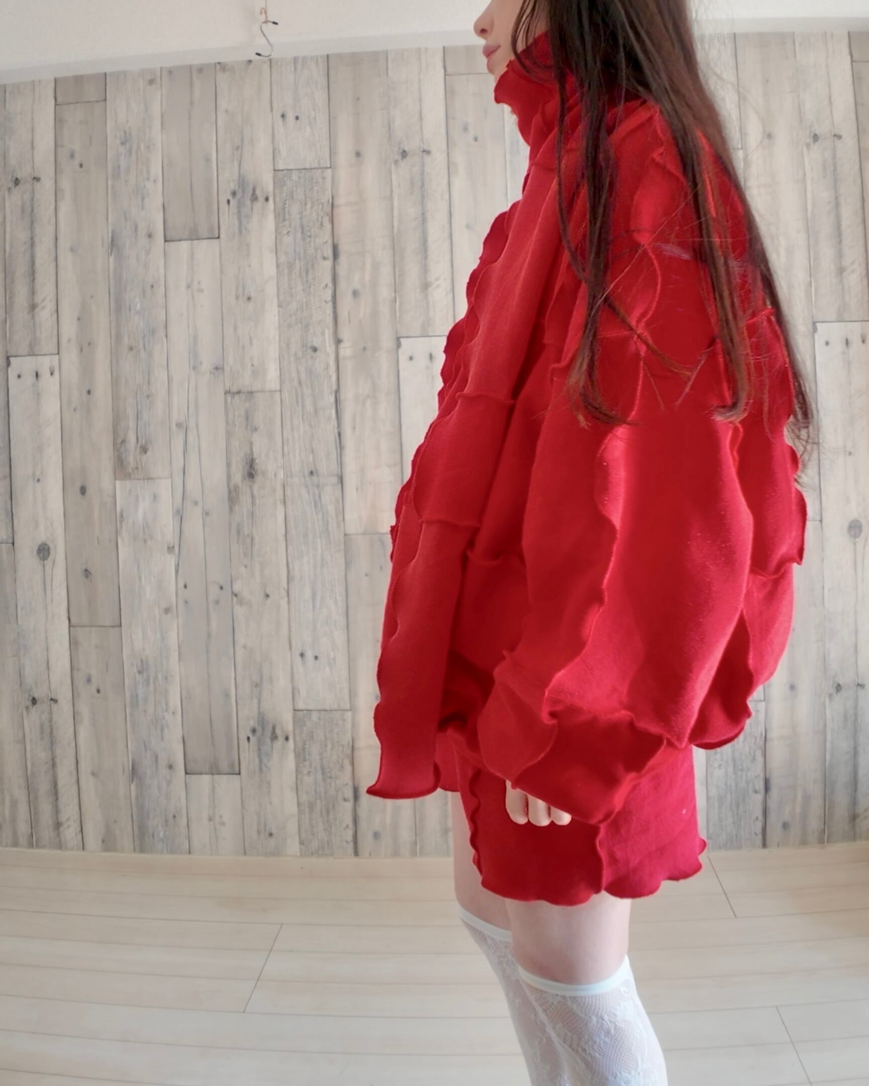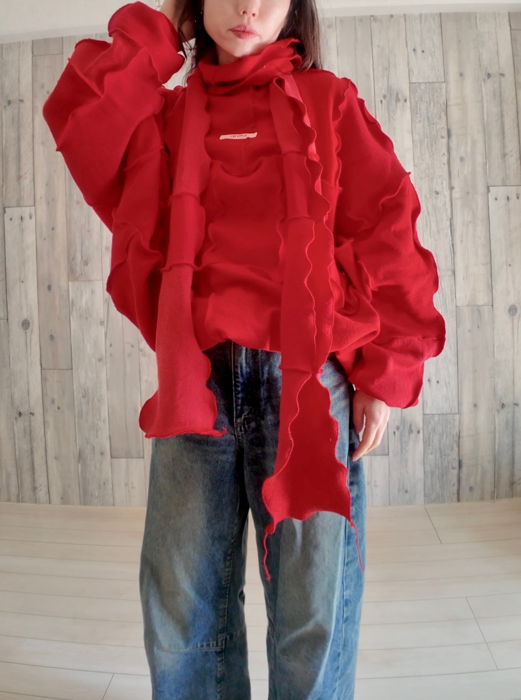 ☑️こちらの実際の質感は着用画像よりも、一枚目の写真や、マフラー(りぼん)のアップの写真に近いです。