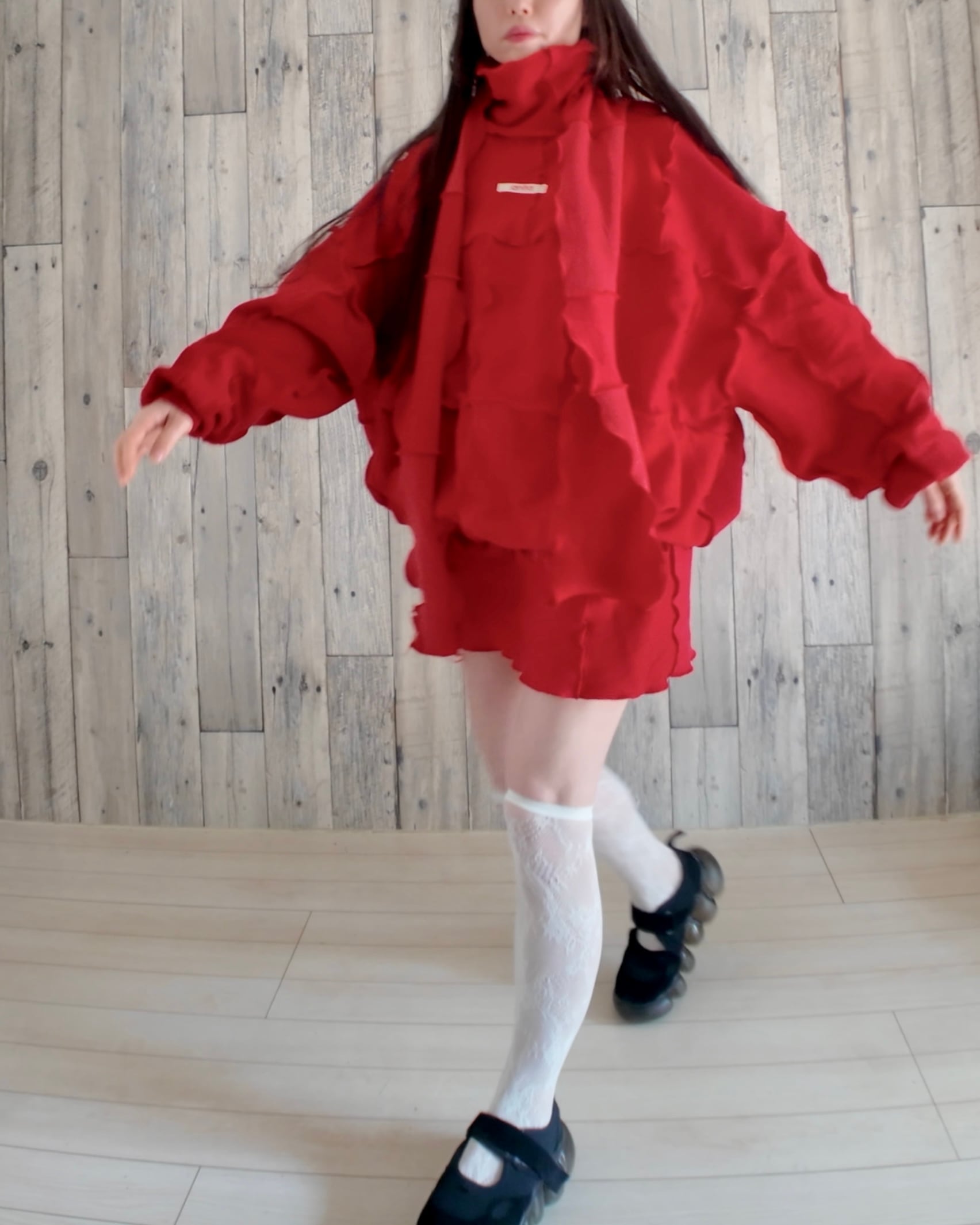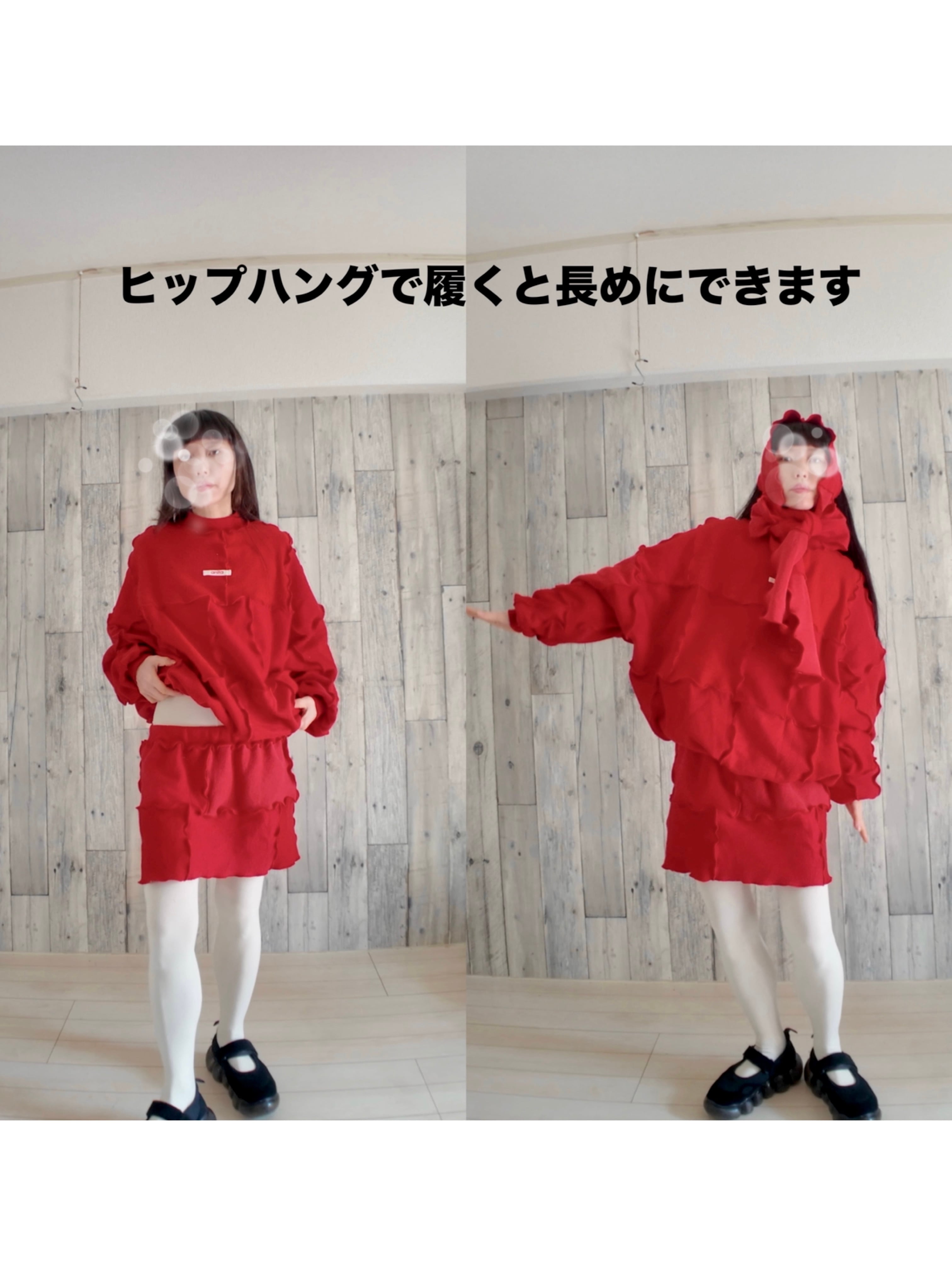 スカートは履く位置で長さを調整してください。