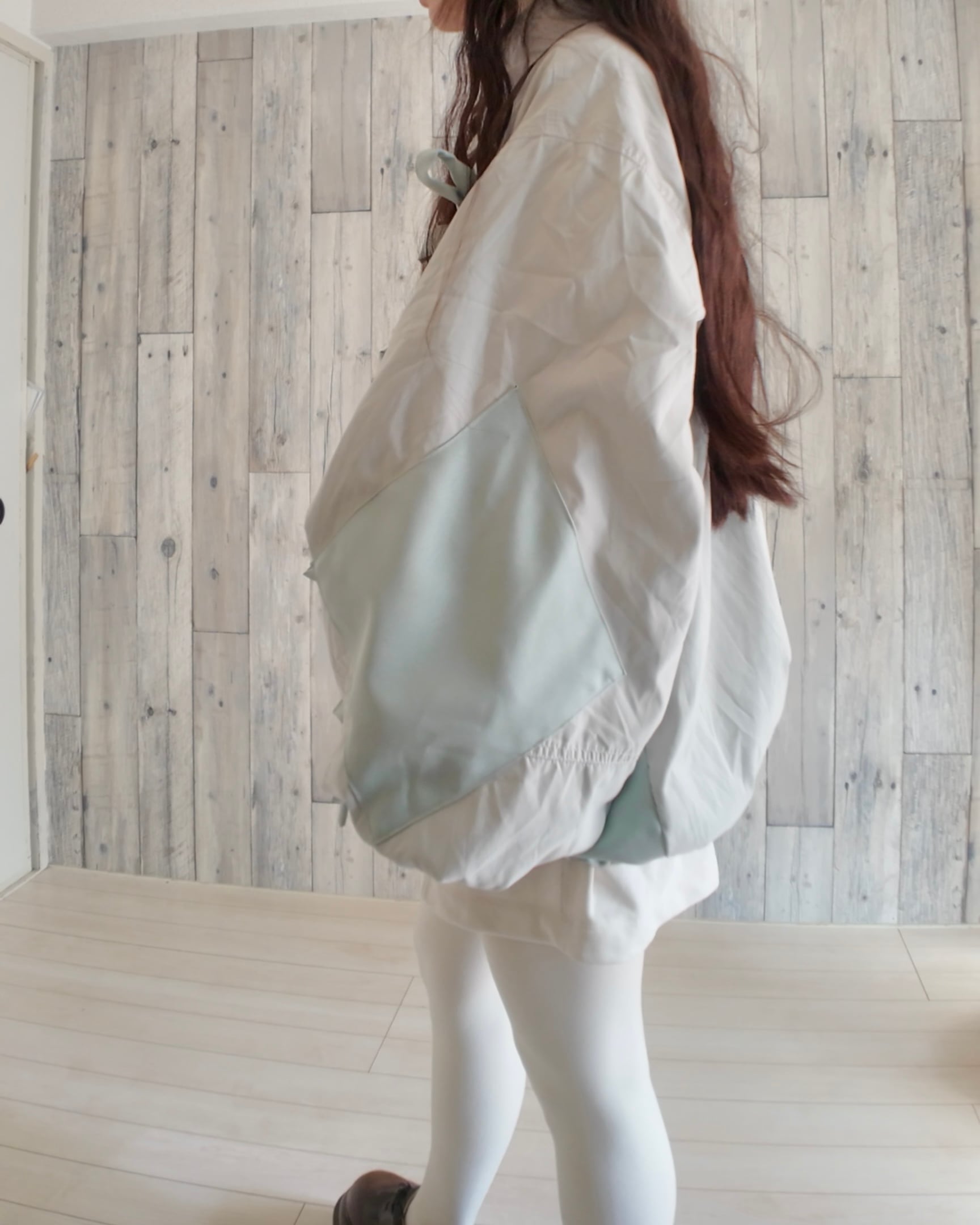 繋ぎ合わせた生地…ポリエステル100%(収縮性はないですが、ジャージのような風合いの生地)