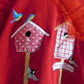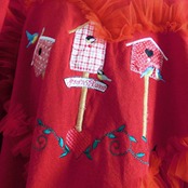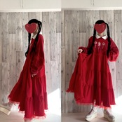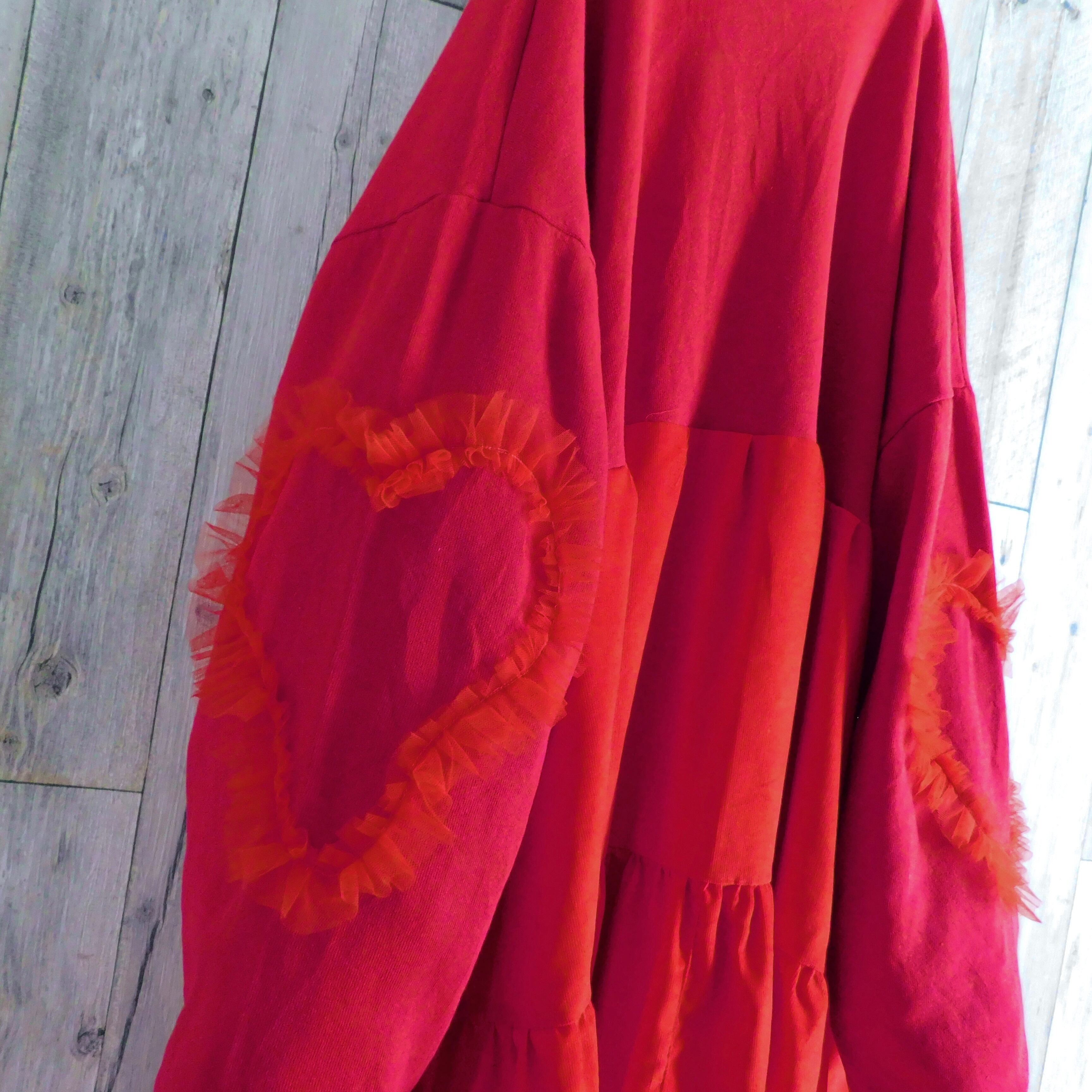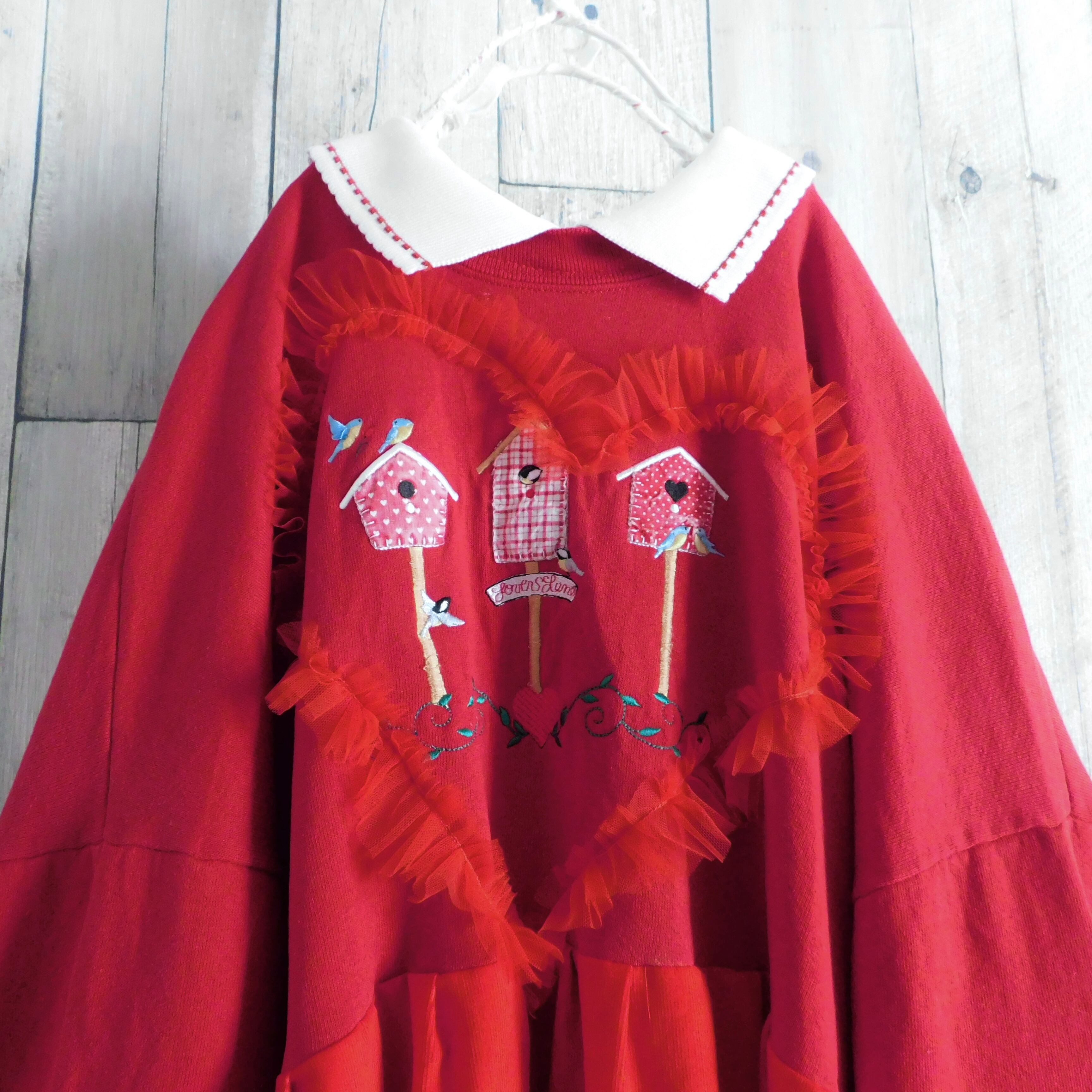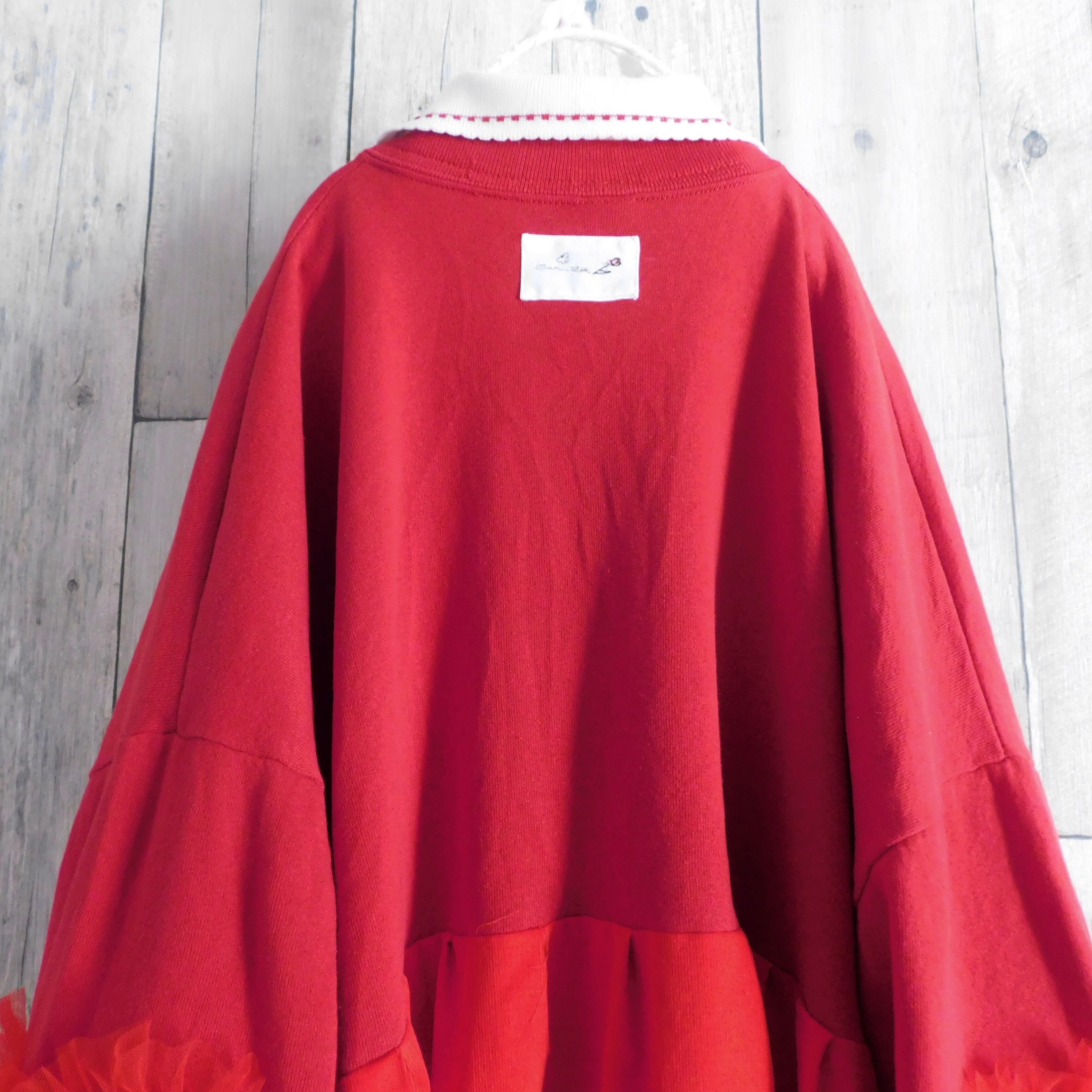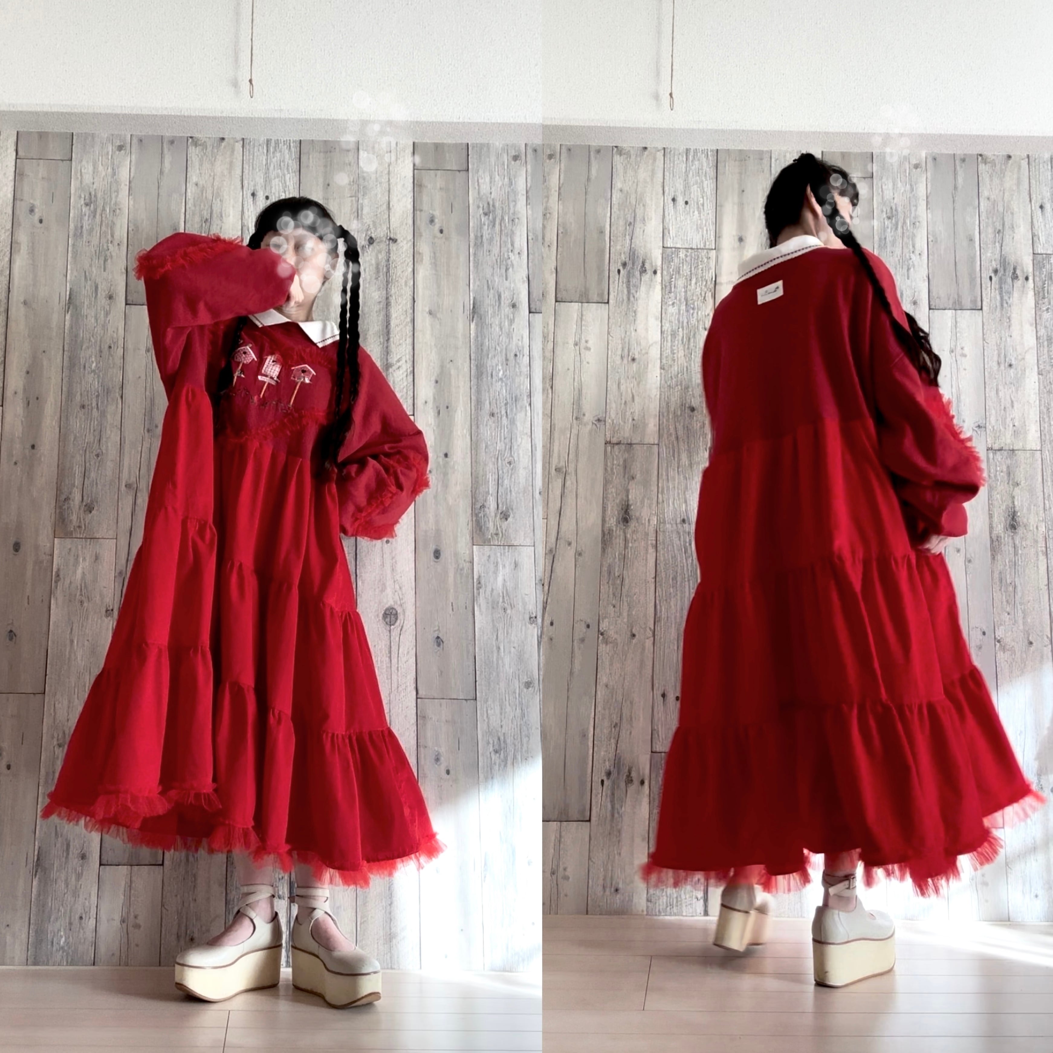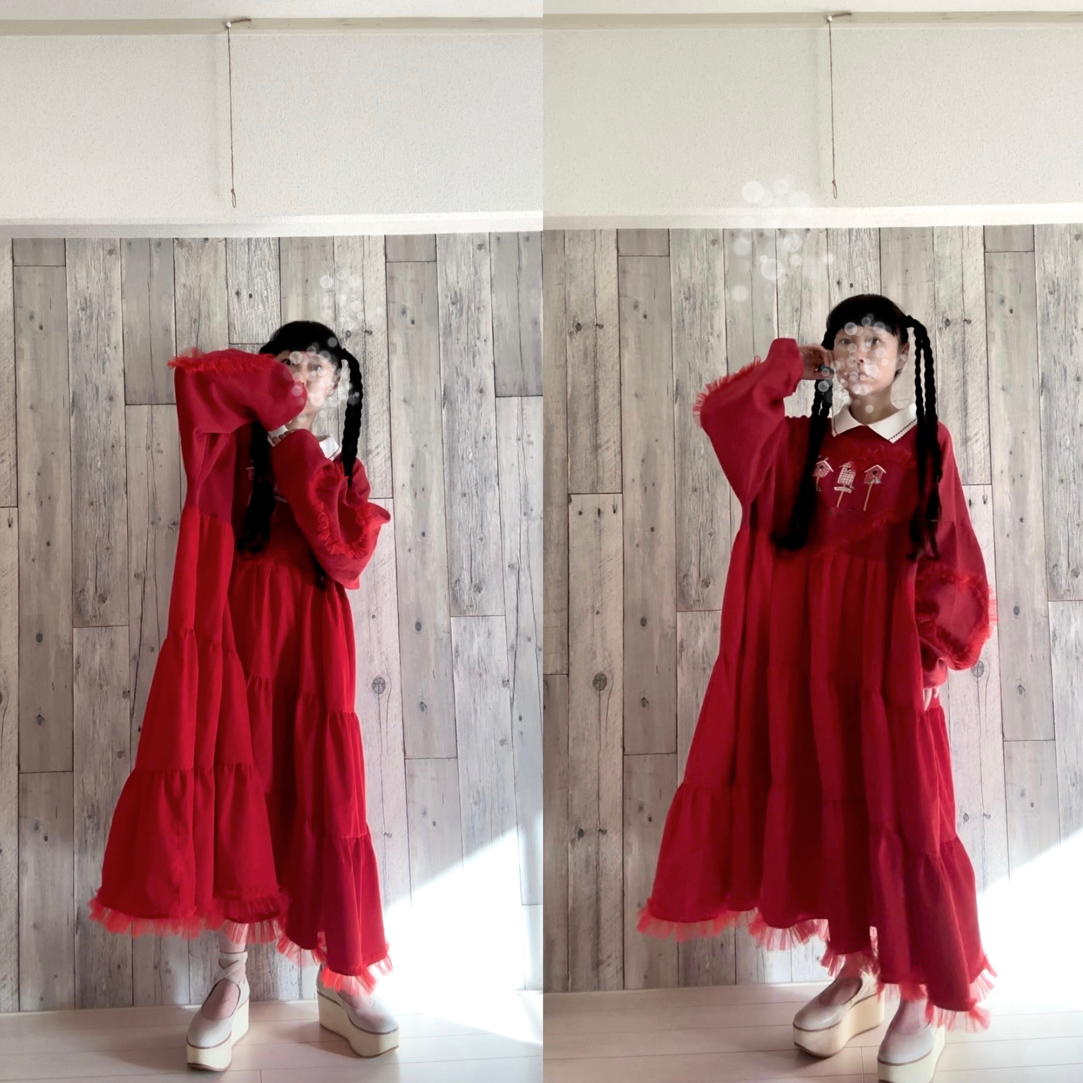 真紅のボディー×真っ赤なコーデュロイ、チュールレースで作った赤いフリルをたっぷり装飾した情熱的なデザイン。