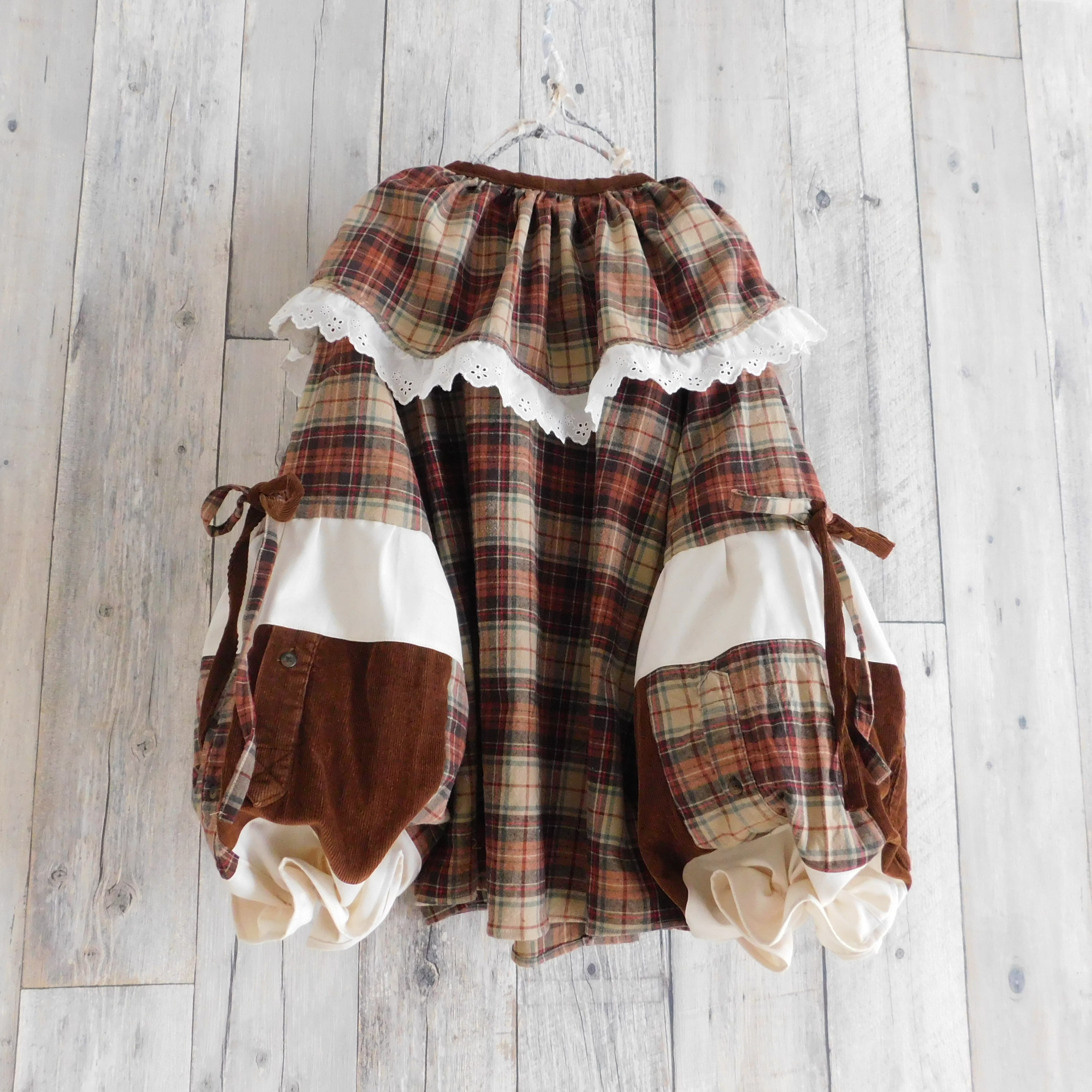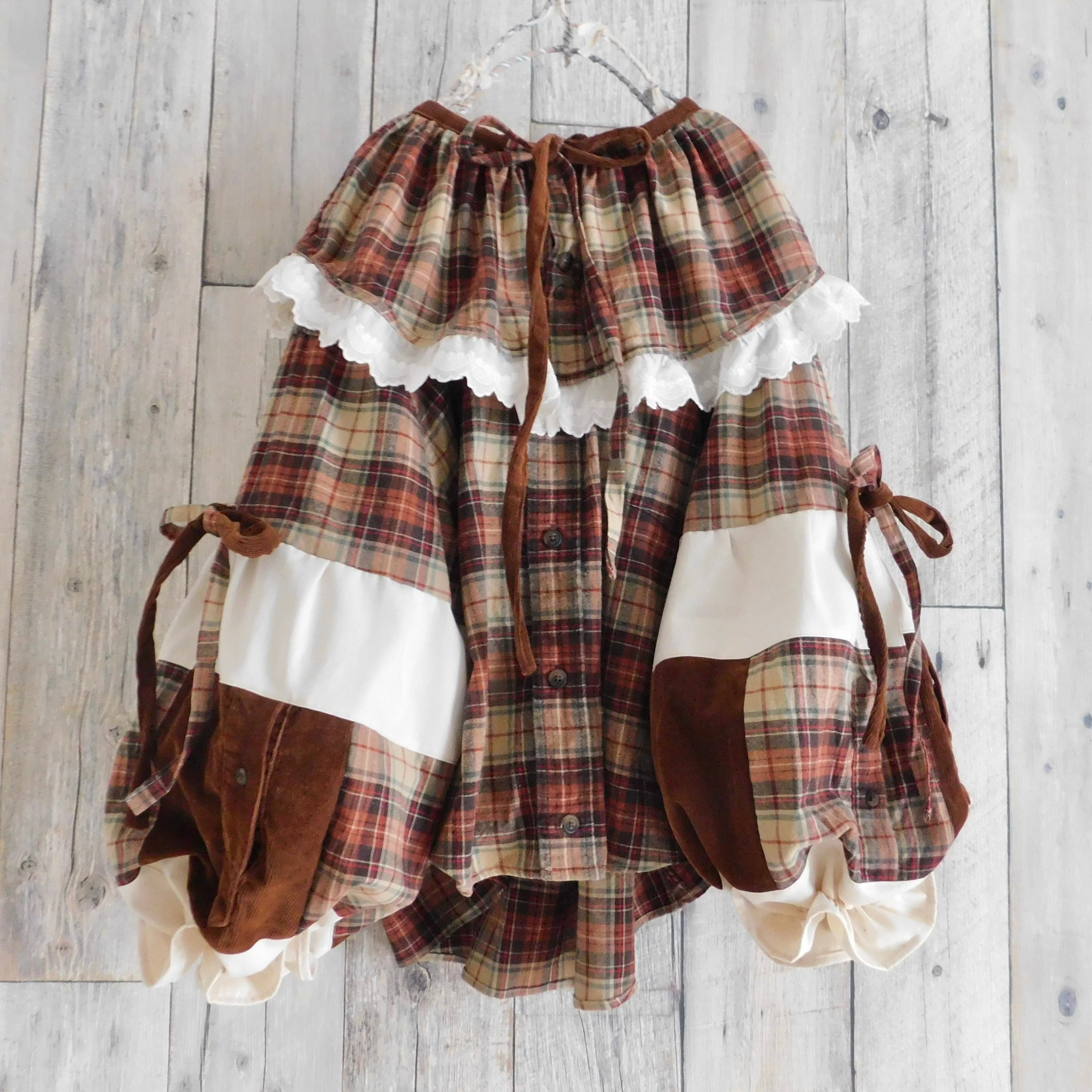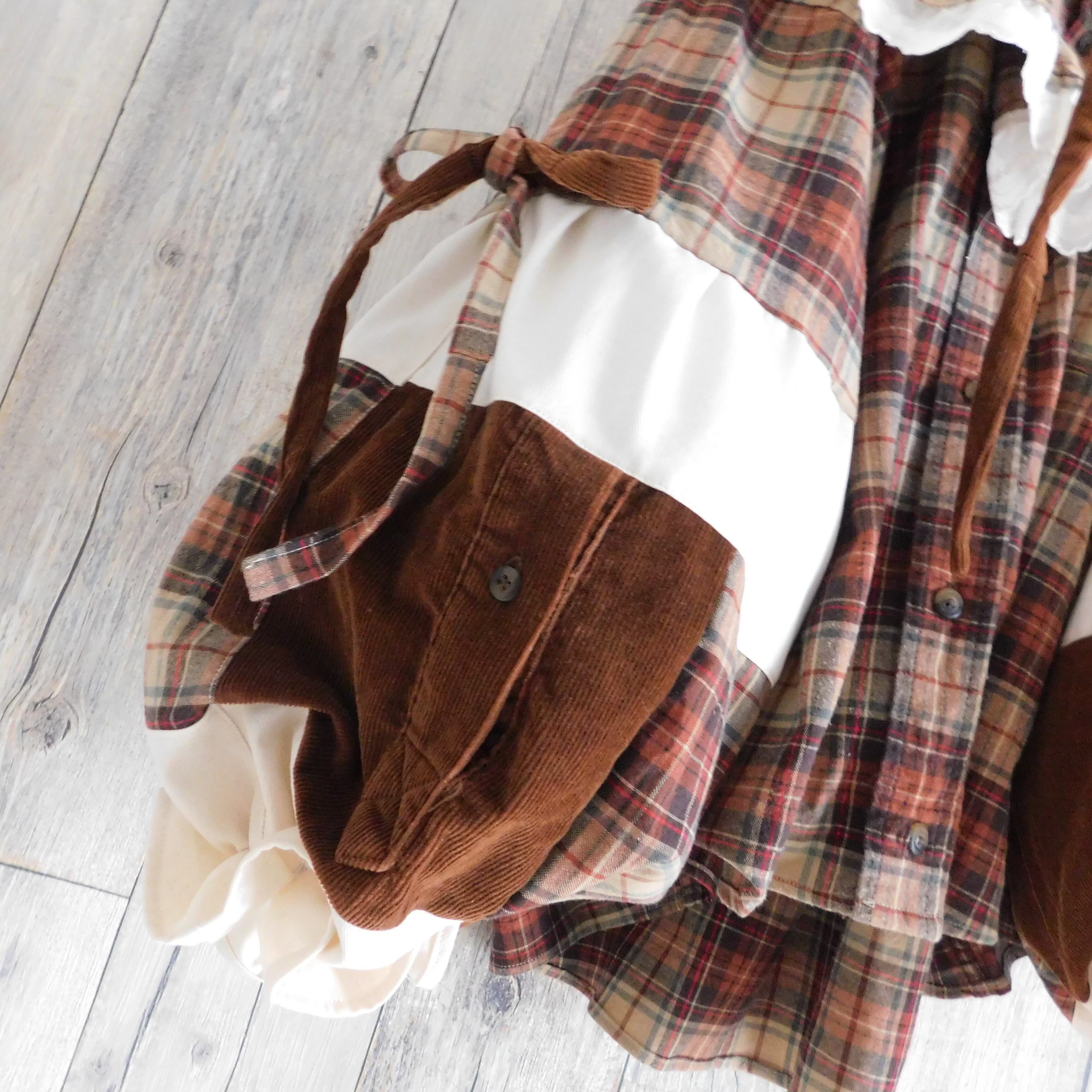 秋にぴったりなブラウン系チェックとコーデュロイシャツのハギレで制作。