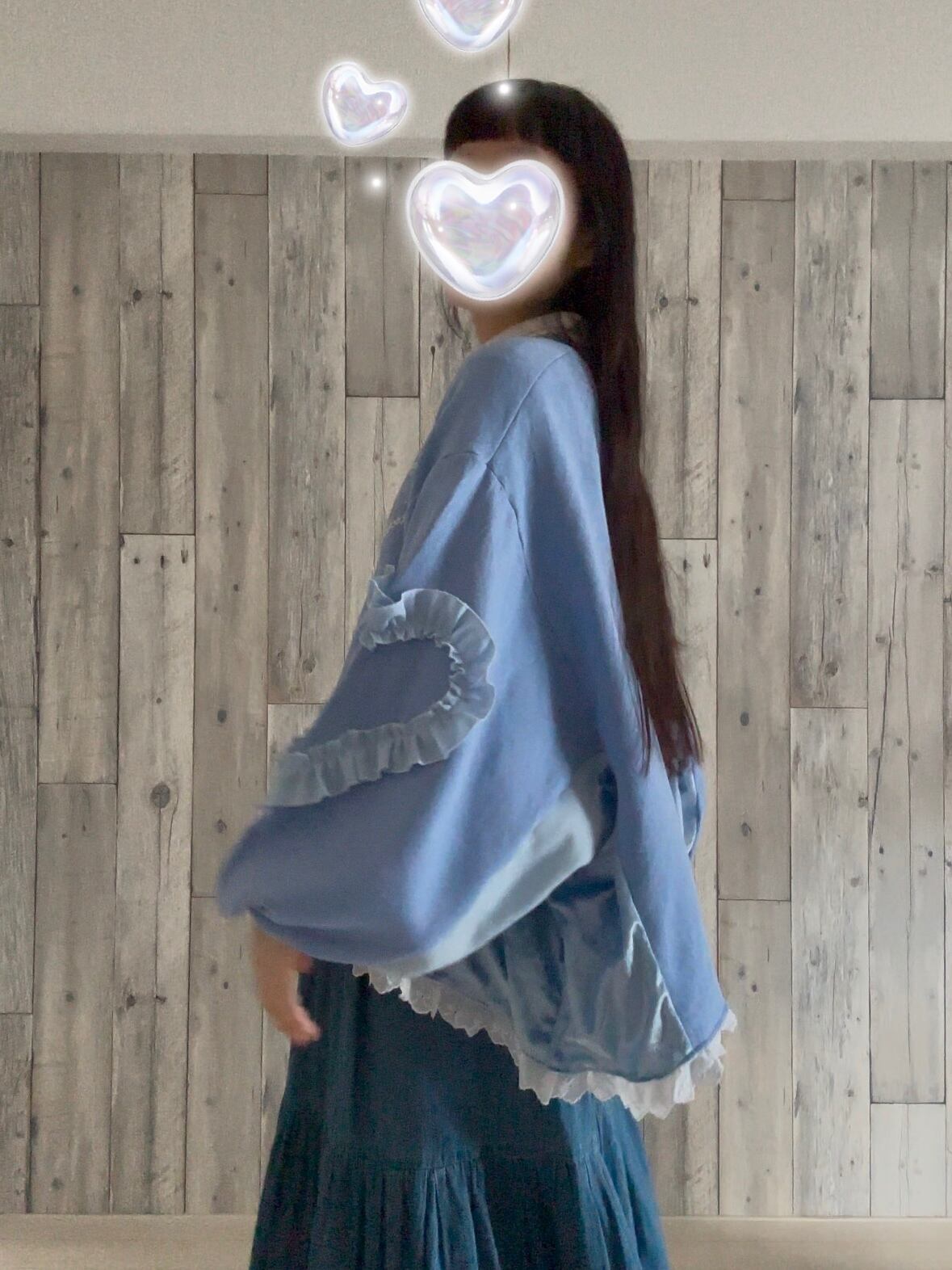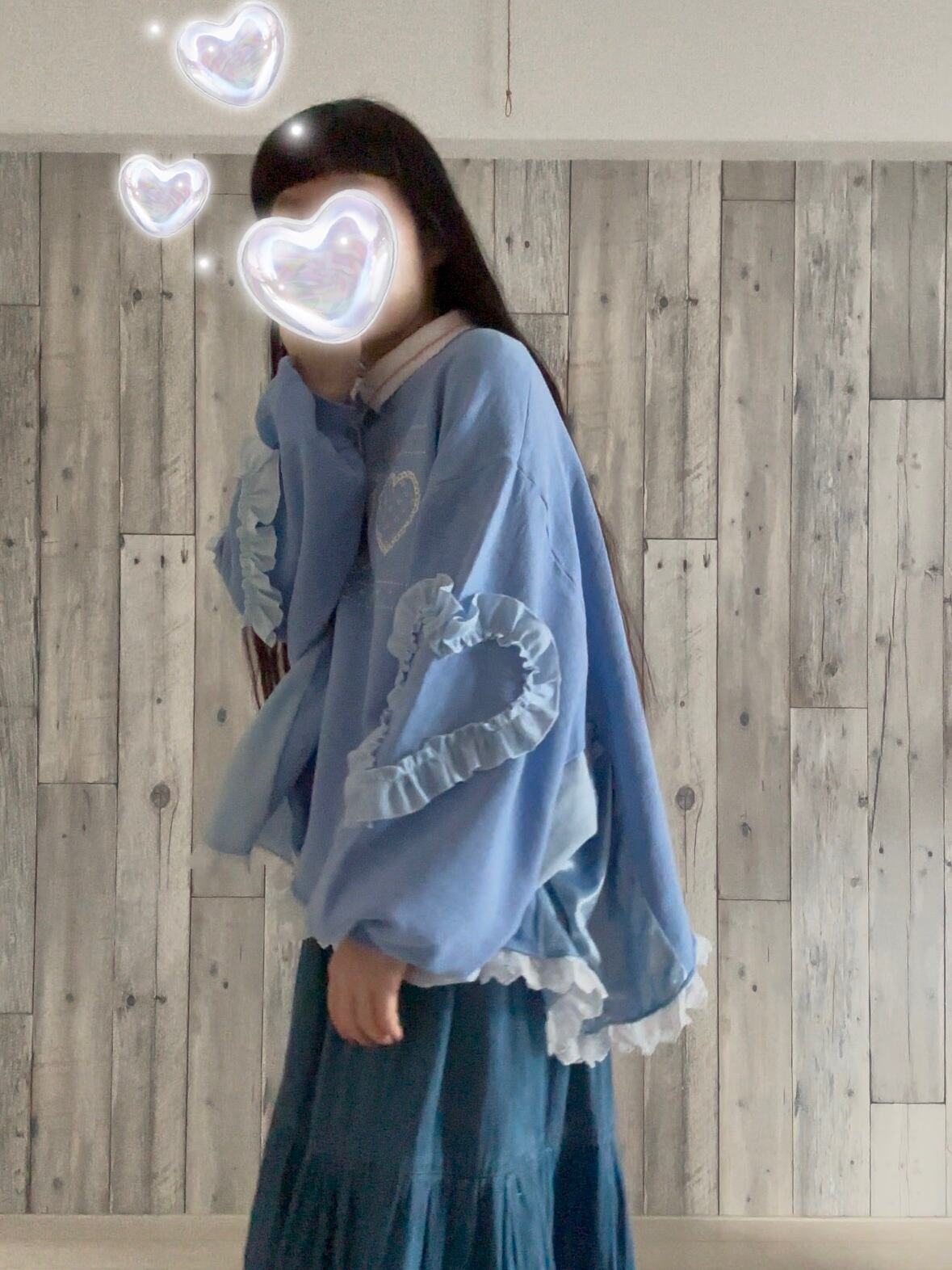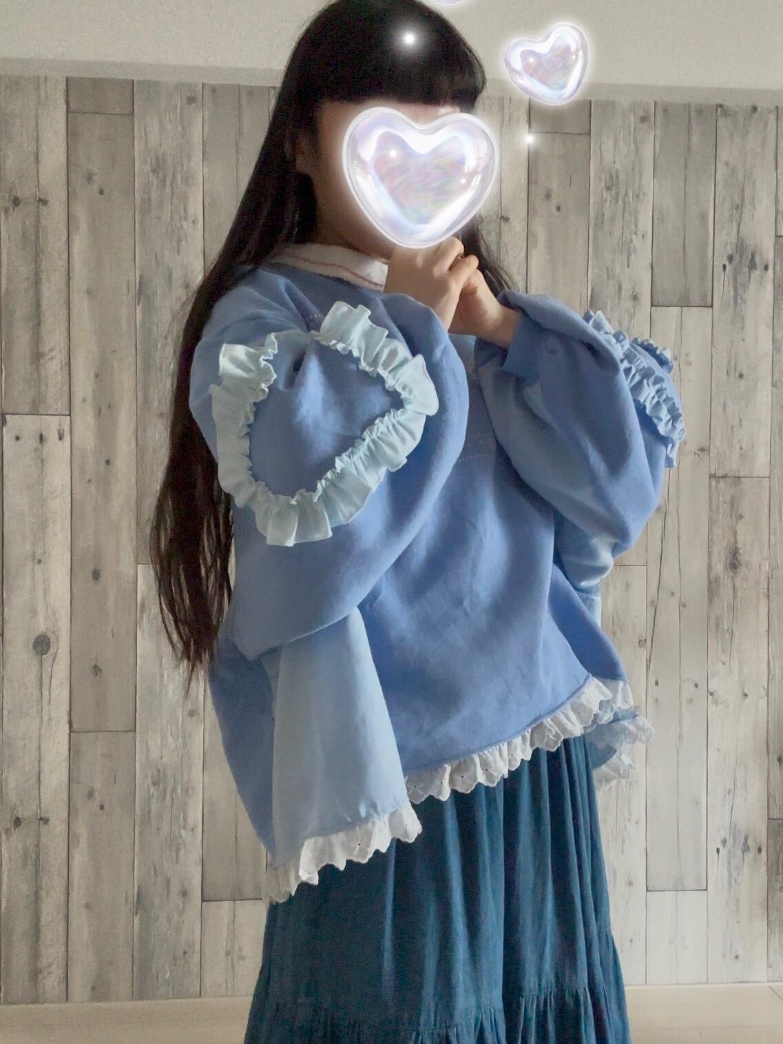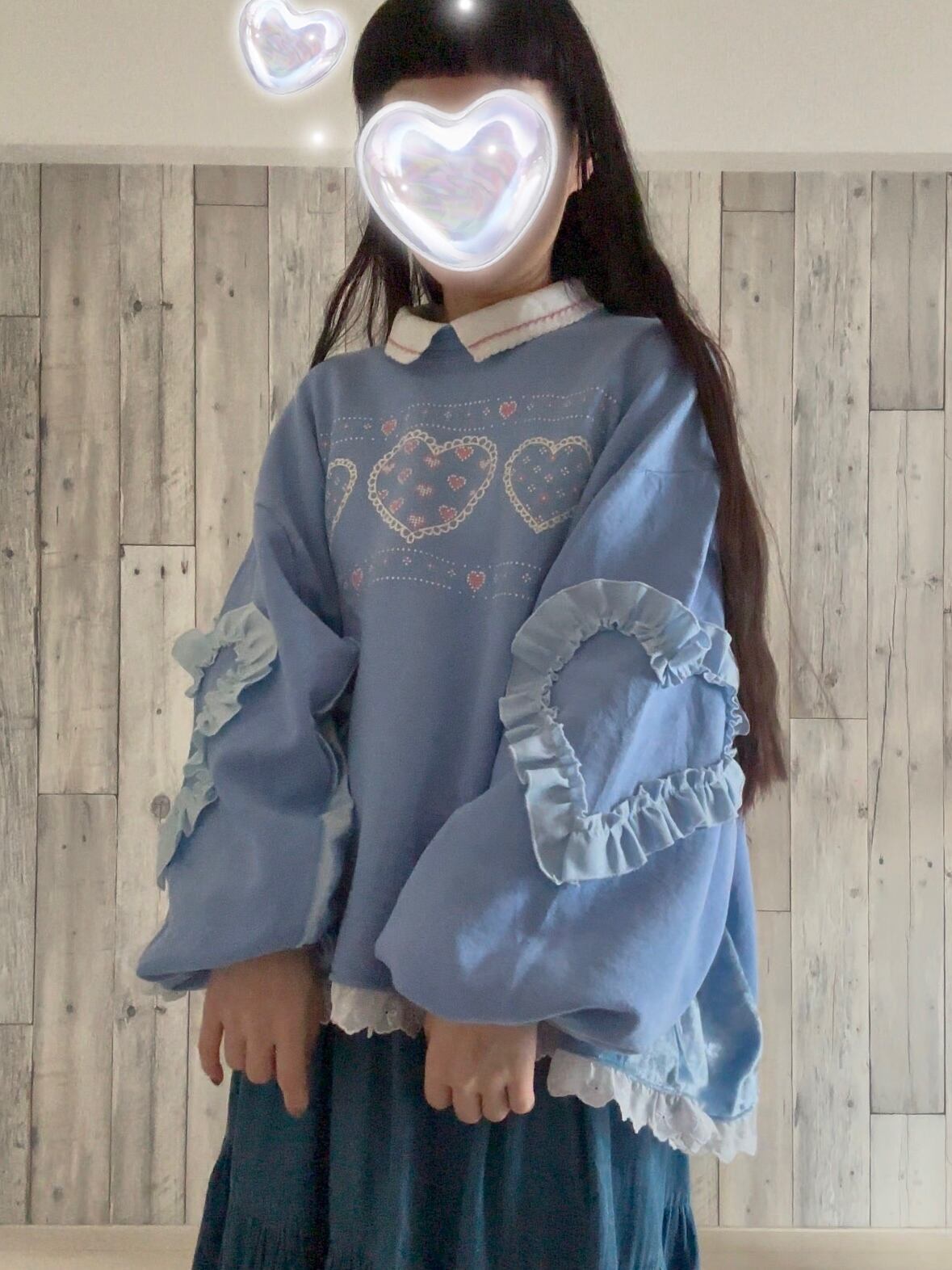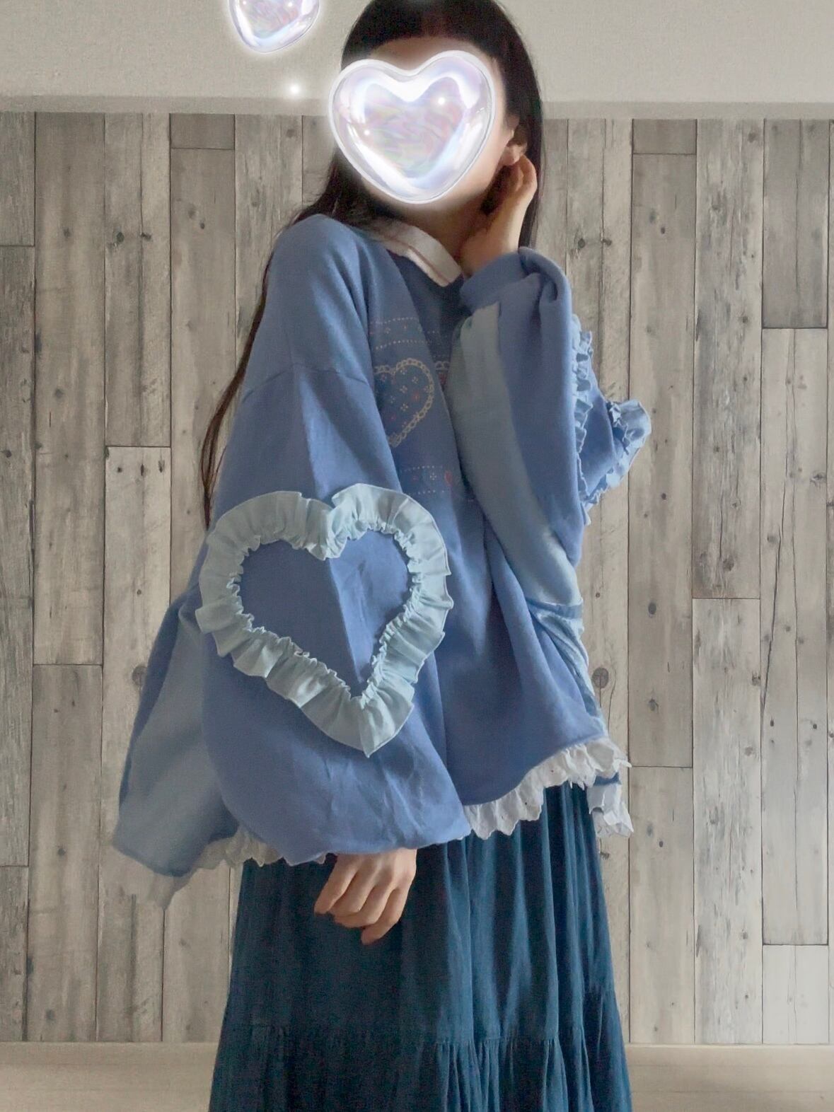 ハートのプリントに合わせて袖にもハートの飾りを付けました。